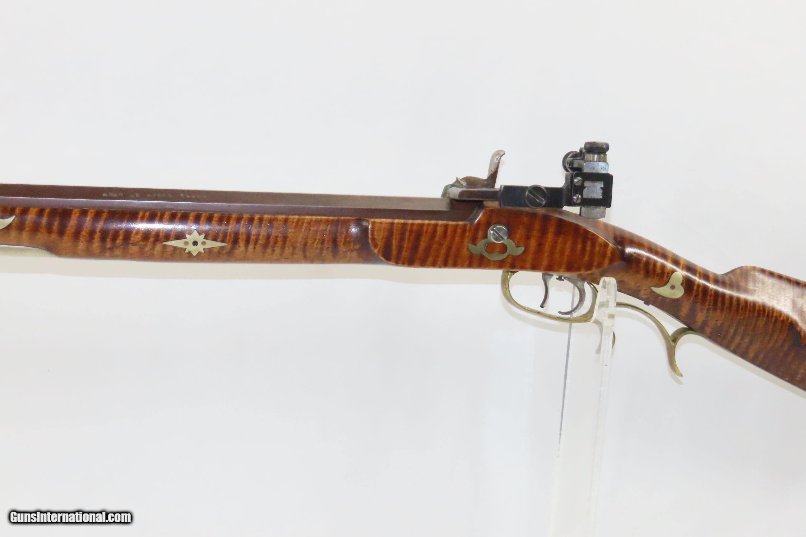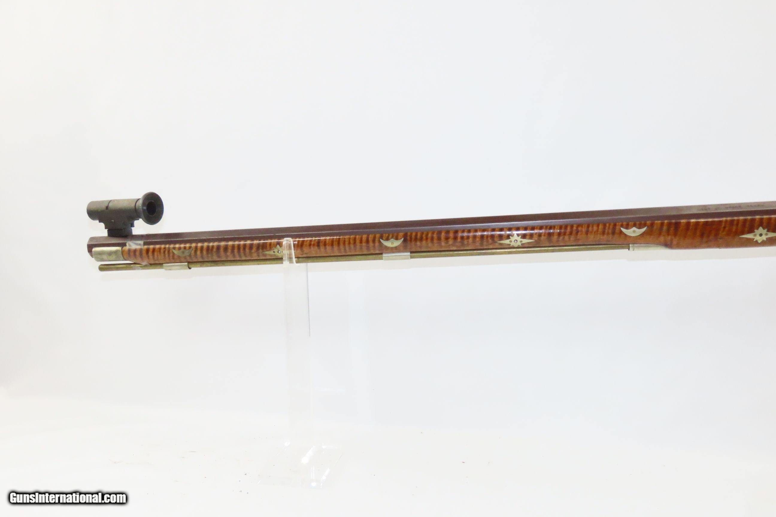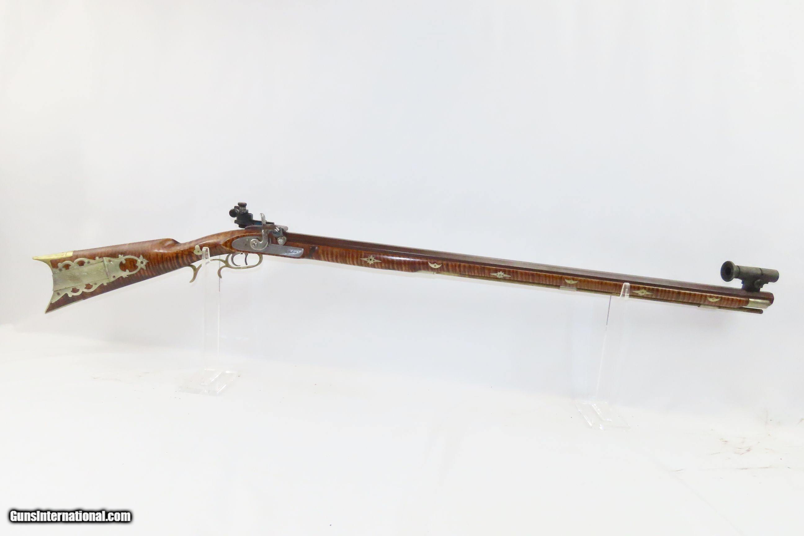 HARRLY SLOAN Full-Stock LONG RIFLE .40 Cal with Golcher Lock, TARGET SIGHTS Striped Maple Full-Length Stock with German Silver Patchbox