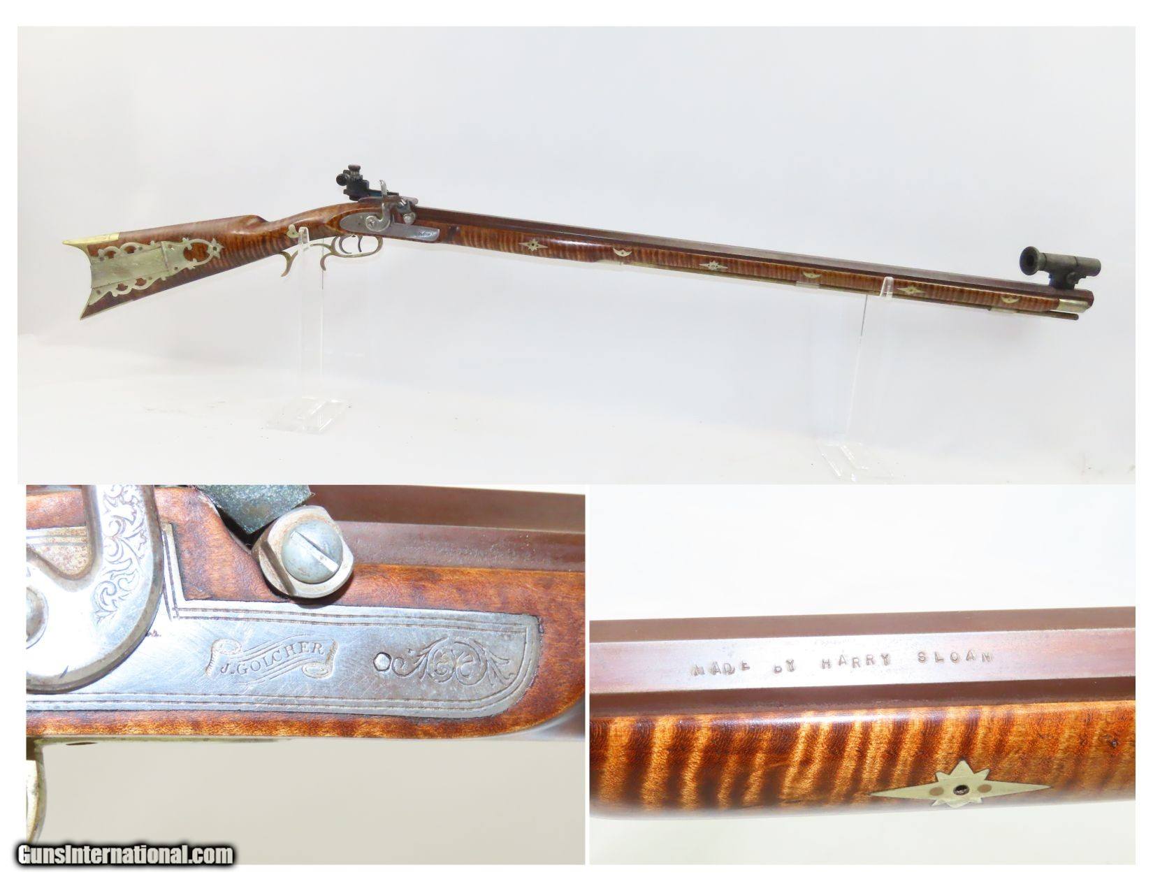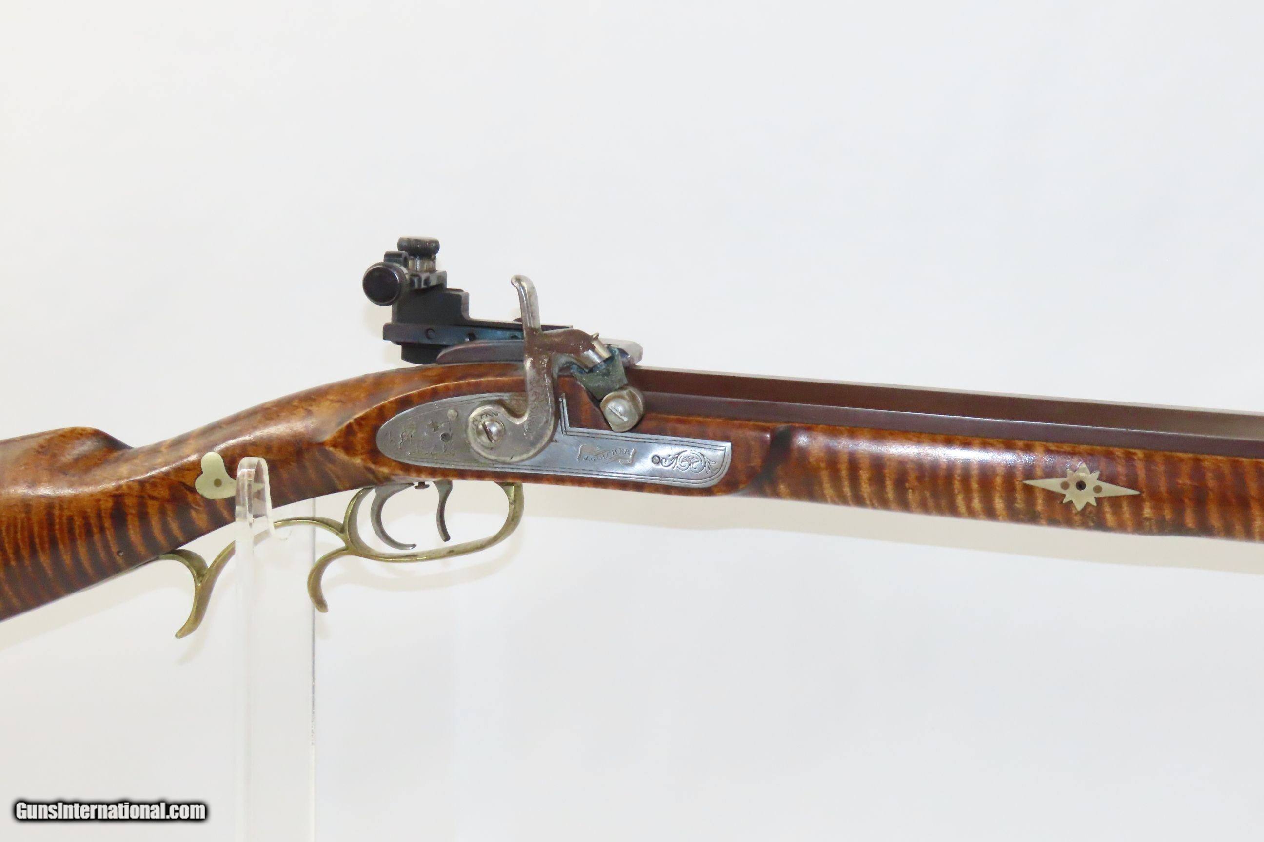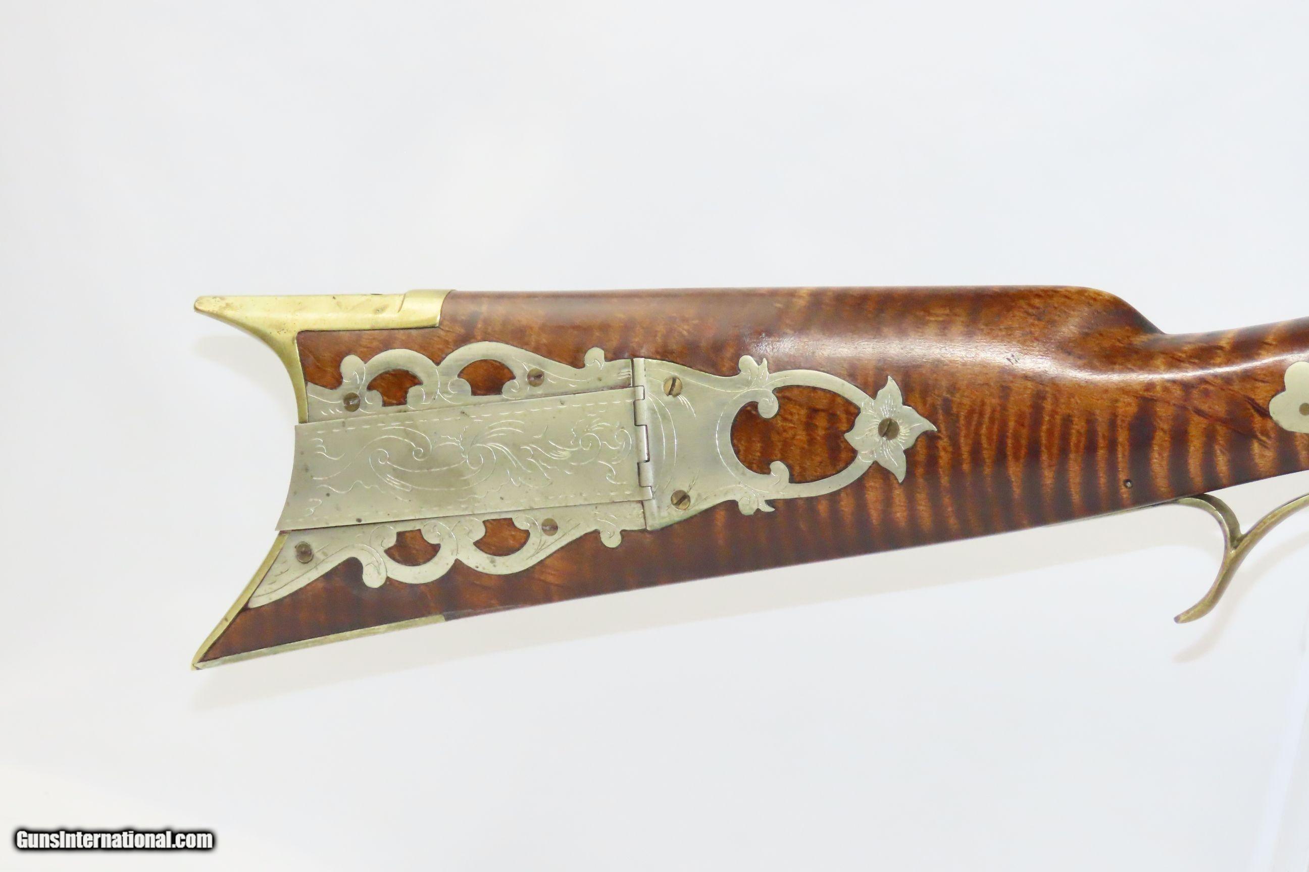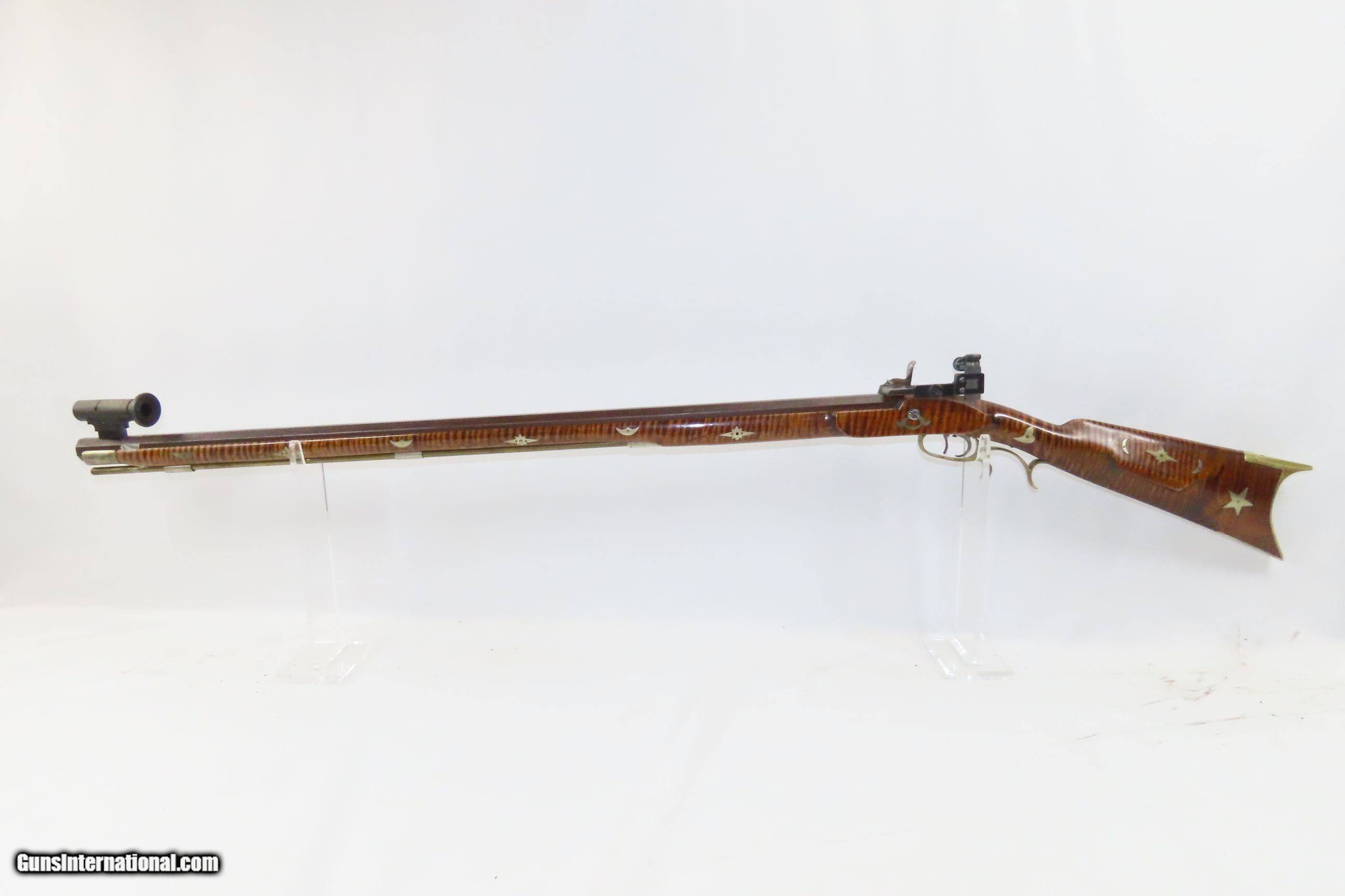 HARRLY SLOAN Full-Stock LONG RIFLE .40 Cal with Golcher Lock, TARGET SIGHTS Striped Maple Full-Length Stock with German Silver Patchbox