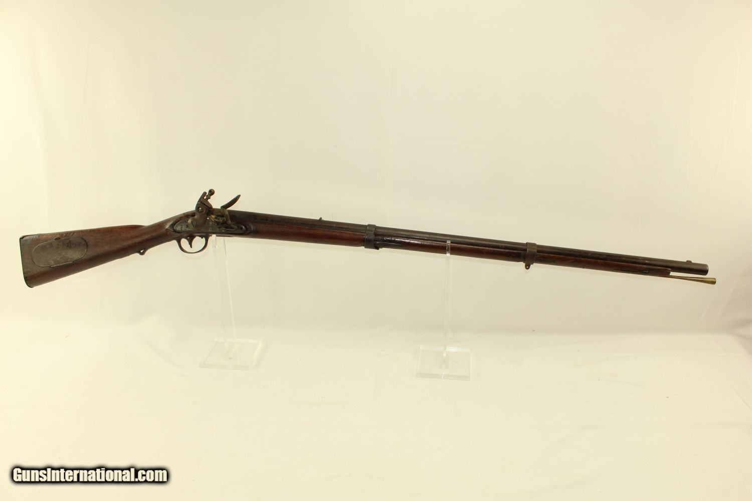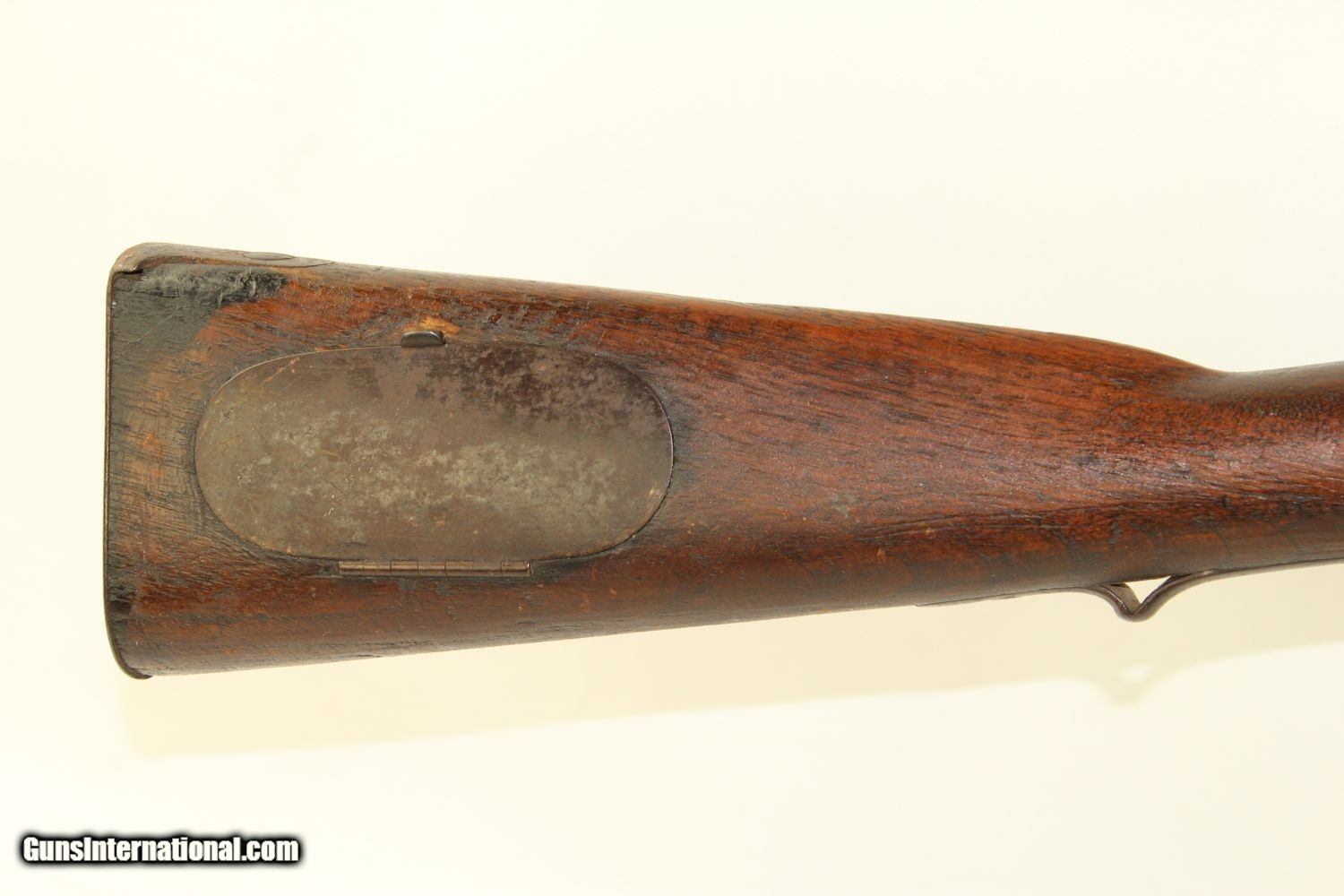 Description: HENRY DERINGER Contract U.S. Model 1817 Flintlock “COMMON RIFLE” Made 1829 1 of 13,000 Contracted by Henry Deringer Here we present an antique U.S. Model 1817 “Common Rifle” from the Henry Deringer Contract, made in 1829 in Philadelphia, Pennsylvania. The M1817 common rifle (also known as the Deringer M1817 rifle) was issued due to the Dept. of Ordnance's order of 1814, produced and used from the 1820s to 1840s at the American frontier. The 36-inch barrel was originally rifled for .54 caliber. This longarm has been bored out to be a .60 caliber smoothbore to accept larger projectiles and perhaps be used with a combination load of buck n’ ball. Like the Model 1814, it had a large oval patchbox in the buttstock. Many of these were used during the American Civil War, especially in the early days of the conflict when military weapons were hard to come by and guns such as these were in local arsenals. After producing the Model 1814 common rifle through contractors, the military decided to do the same with the Model 1817. The Harper's Ferry Arsenal produced a pattern weapon, which was then taken to gunsmiths to be copied. The rifle was built by Henry Deringer of Philadelphia (13,000 made), Nathan Starr & Co. of Middleton, Conn. (10,200 made), Simeon North of Middleton, Conn. (7,200 made), R. Johnson of Middleton, Conn. (5,000 made), R. & J. D. Johnson of Middleton, Conn. (3,000 made). Over time, these rifles became obsolete, but they still saw service during the Civil War. While these were originally flintlocks, most were updated to percussion cap for their firing mechanism. The overall condition is rough. The bore is dark. The lock is not mounted properly and does not stay in place without assistance. One barrel band is loose and the other is a bit too small. A very interesting rifle that has seen better days and has many stories to tell. Own the original! This is a legitimate antique and not a reproduction. Barrel is 36 inches. Caliber: .60 Overall condition as seen in photos. Very Fast. Very Safe. FREE SHIPPING WORLDWIDE. Delivered directly to your door by express mail! Guaranteed AUTHENTIC & Includes CERTIFICATE OF AUTHENTICITY. ancestryguns $1350 #190862 SOLD Antique: Yes |