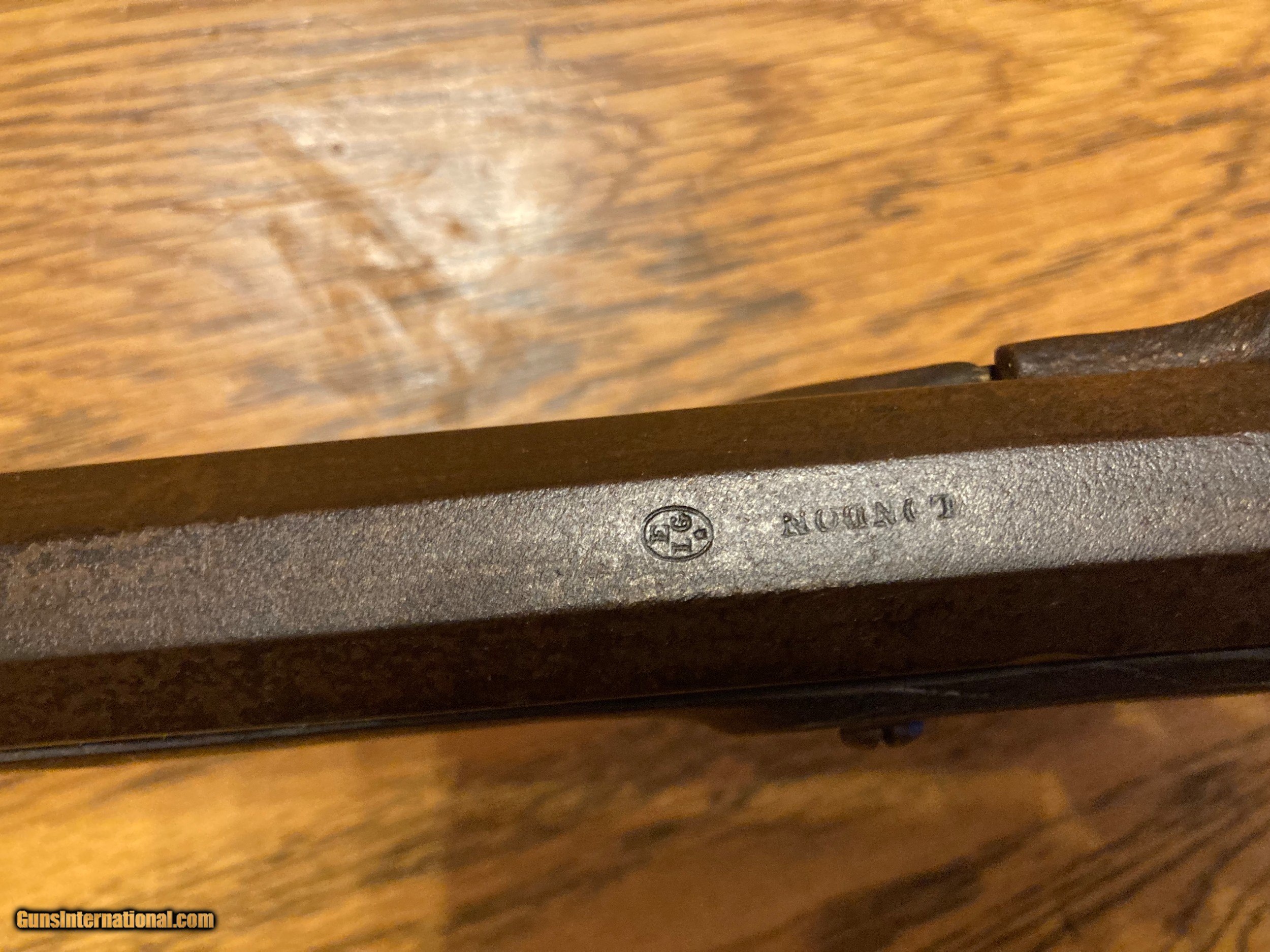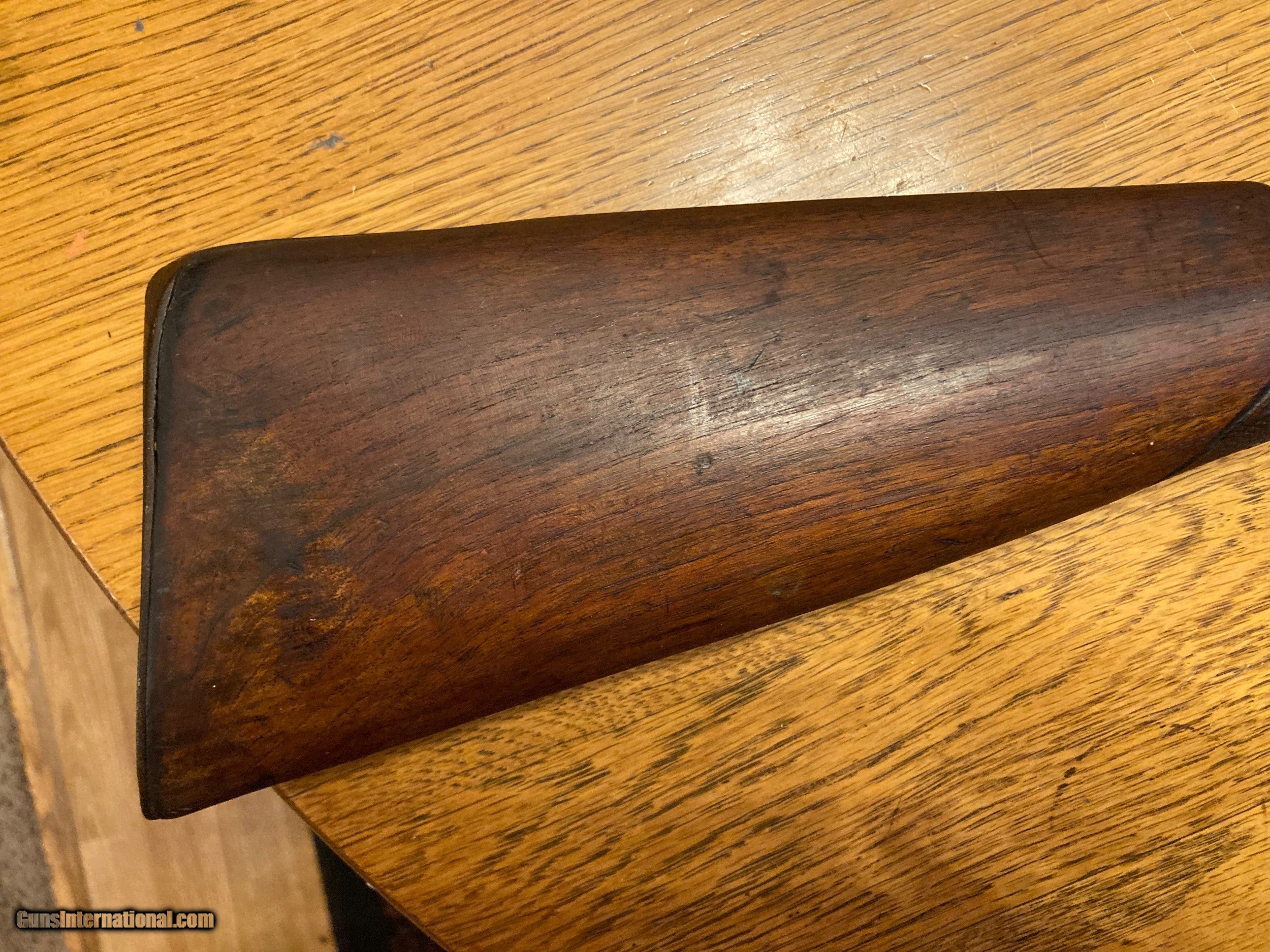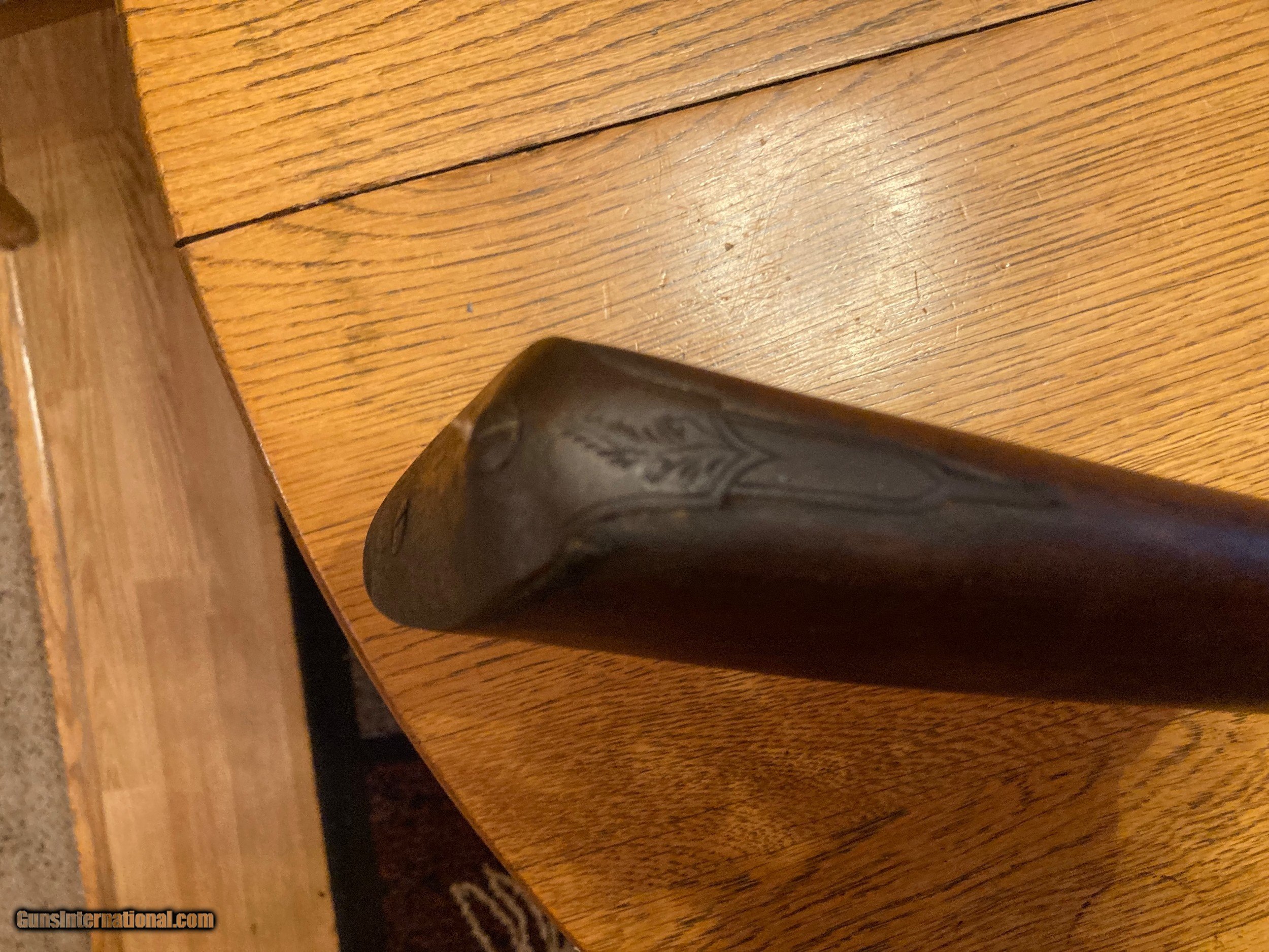 Description: Ketland & Co. Smooth Bore percussion Fowler approximately 69 Caliber. The walnut stock has a good color and is in good condition showing some use. The 41 inch has a brown patina and is marked London and has a Lieg oval stamp in front of the breach area and also shows a British proof mark as well as well as the number 2198. The lock functions and is marked Ketland and Co.. there is a brass plate on the left flat. The nipple is in good condition. Overall a good old musket. Shipping will be actuall cost by insured usps priority mail with tracking. SOLD Antique: Yes |