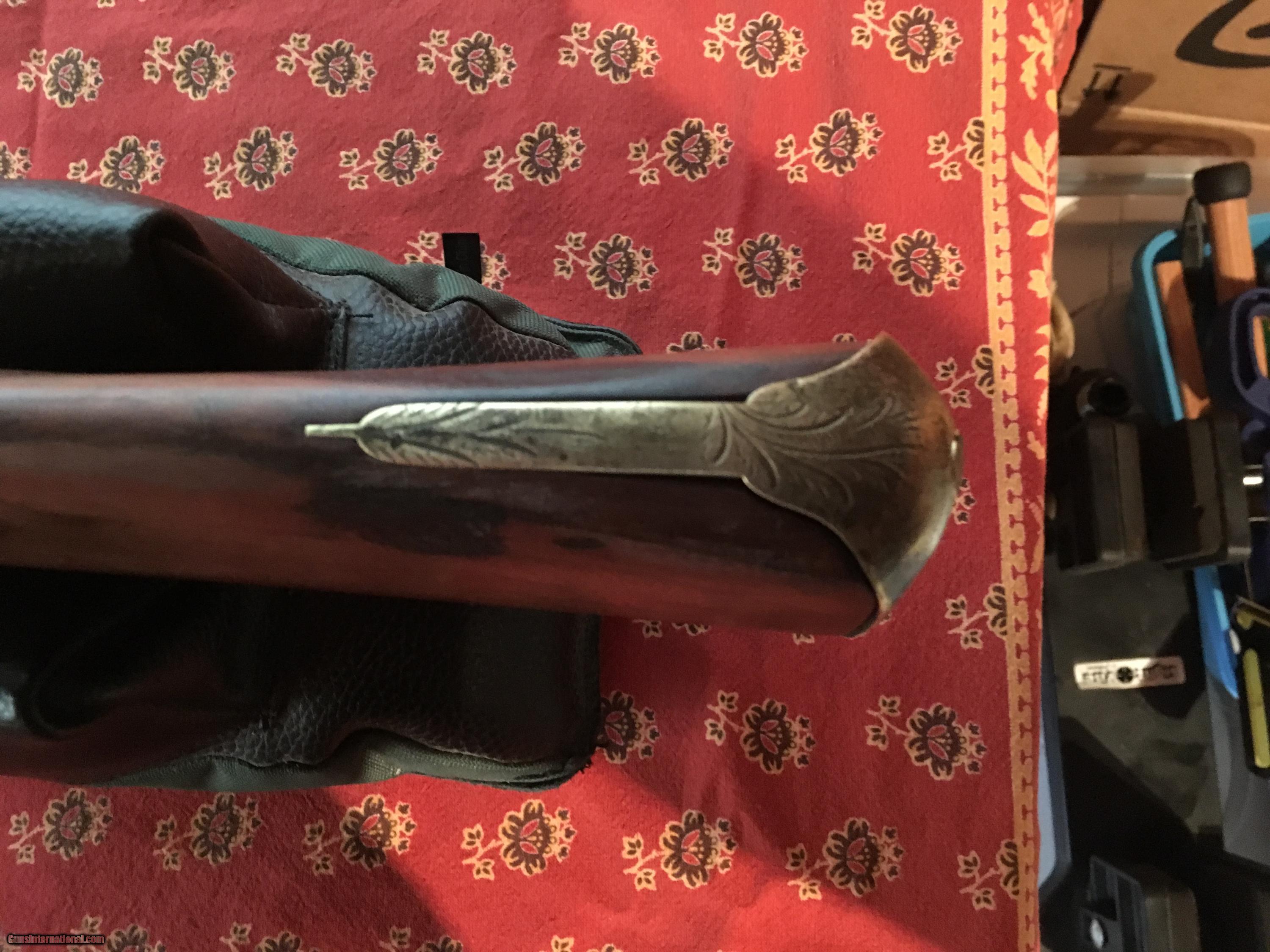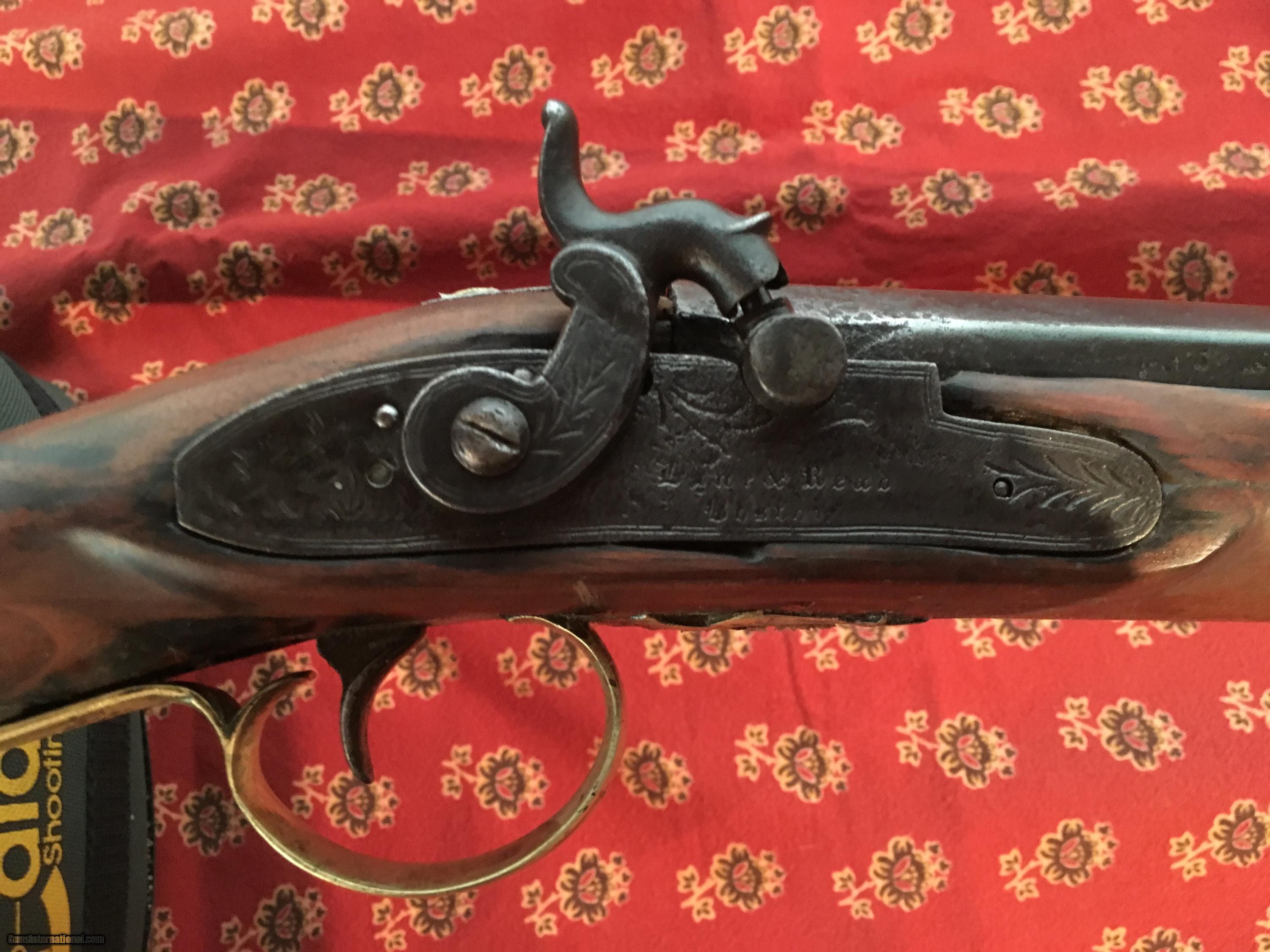 Description: Lane and Read of boston percussion rifle from the 1800's. Has a very rare Heavy Whitworth barrel used by sharpshooters /snipers during the Civil War. Rifle has a hickory stock with brass trigger guard and butt plate with hand engraving. The whitworth barrel is octogon in shape and the rileing is also octogon shape which required custom made bullets. These Barrels were known to be accurate out to 1500yds +. Like any antique firearm it should be checked out by a competent gunsmith if you planned on fireing it. SOLD Antique: Yes Manufacturer: Lane and Read of Boston Whitworth octagonal barrel Model: sharpshooter/sniper Caliber Info: .58 Bore: rifled Condition: good Metal Condition: good Wood Condition: fair Bore Condition: good Barrels: whit worth Barrel Type: octagon Action: muzzle Triggers: single Stock: Walnut Stock Dimensions: 50 inches Stock Heel: Brass Stock Cast: walnut Fore End: Brass Butt Pad: Brass Finish: oil Weight: 10 pounds Sights: v sight Manufacture Date: 1800's Engraving: brass Extras: engraving brass |