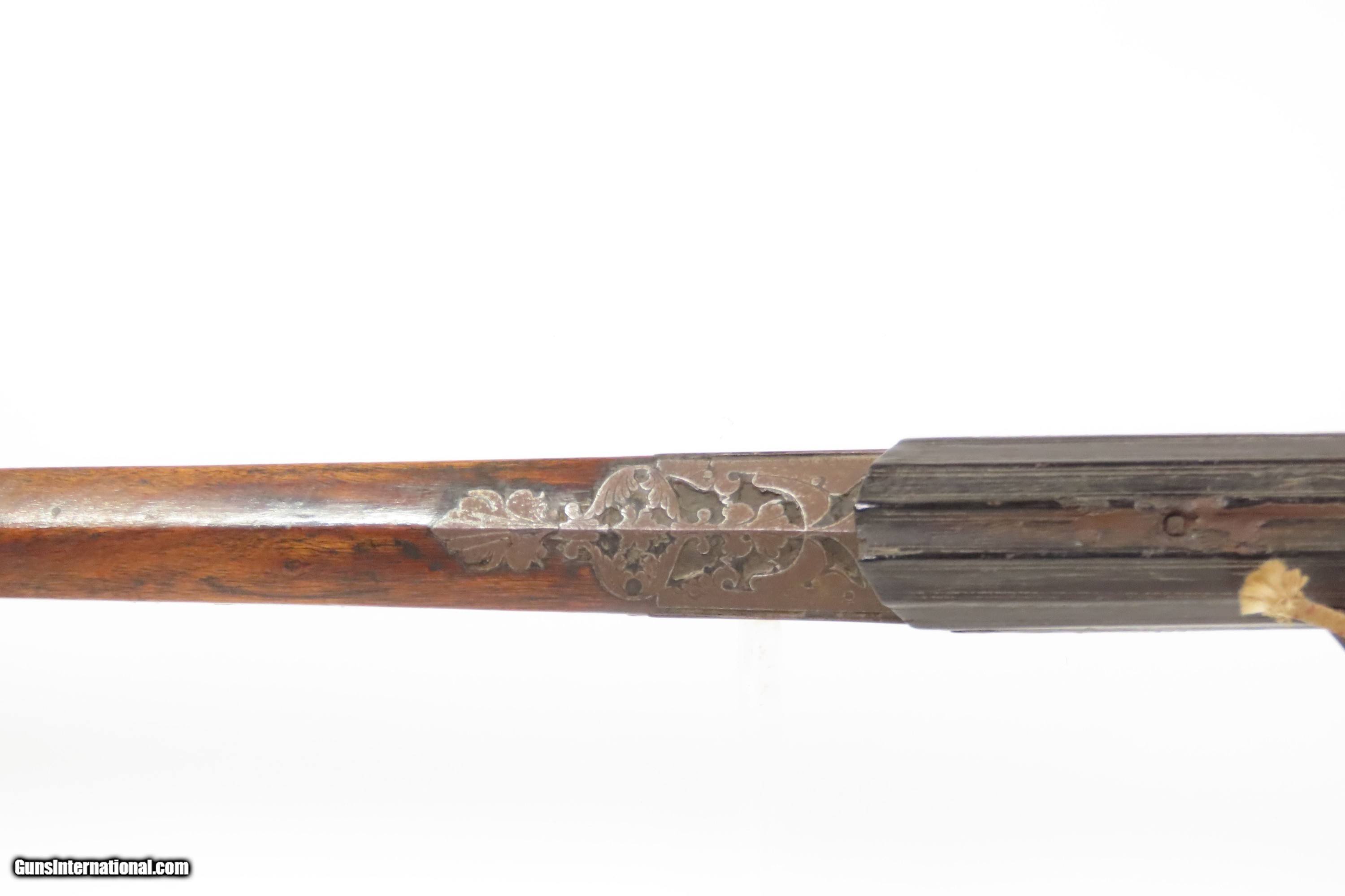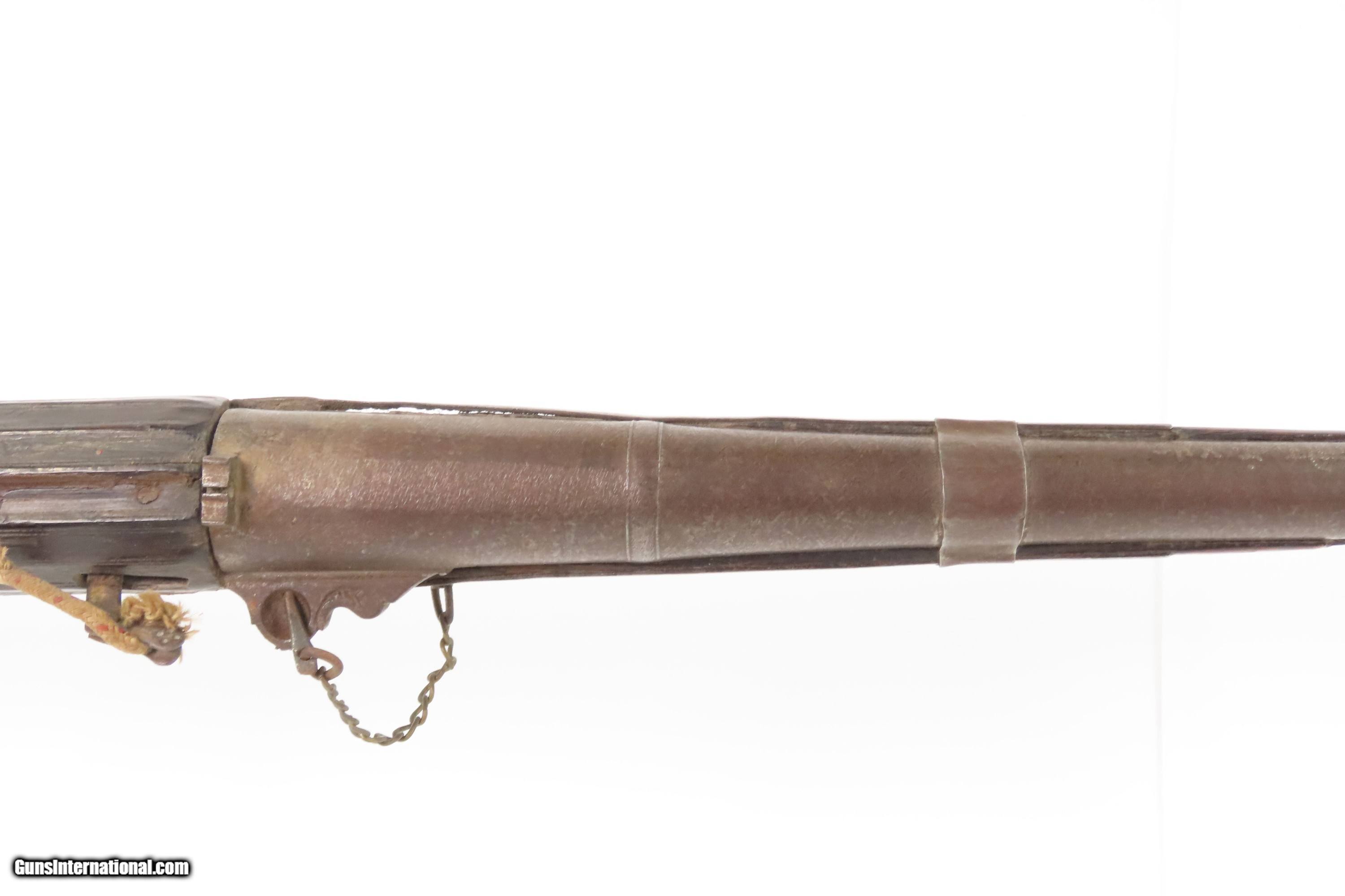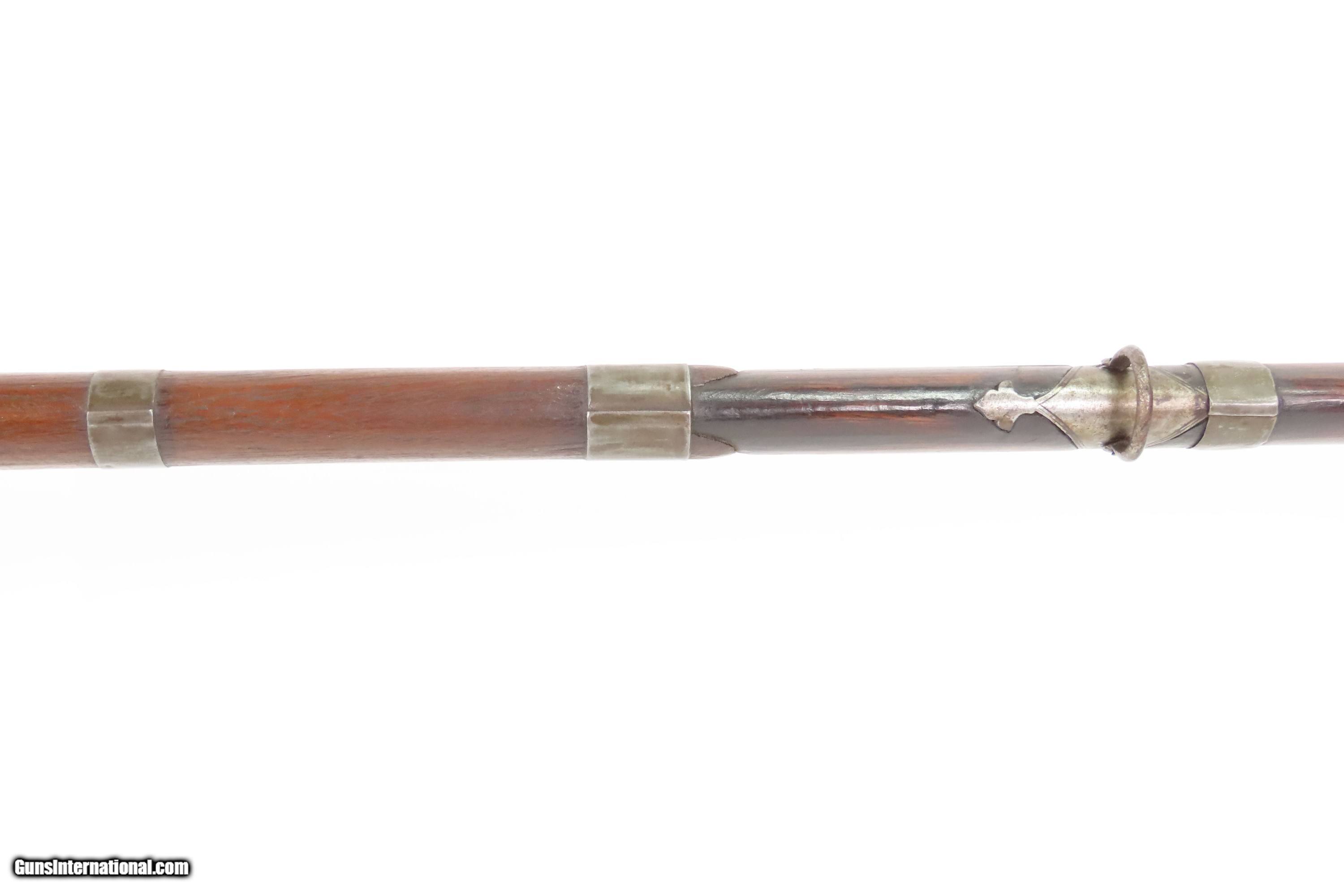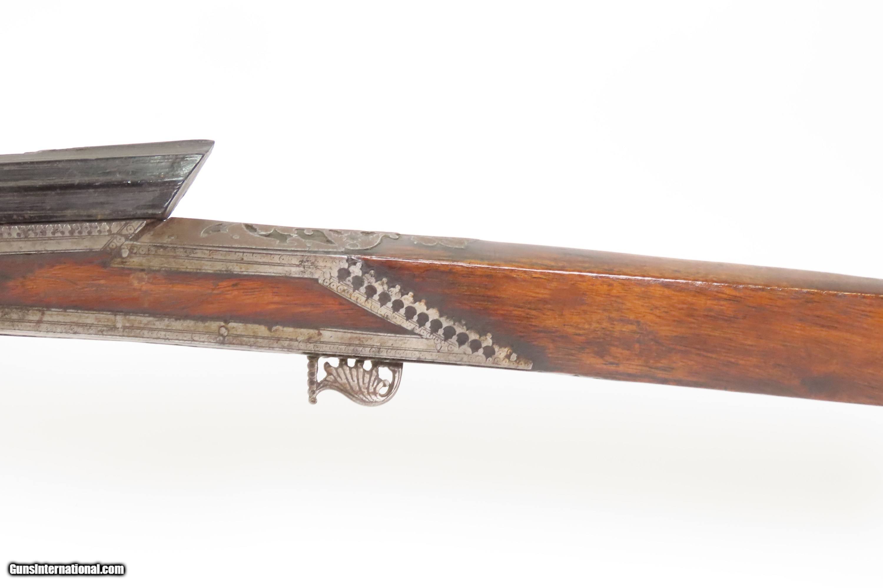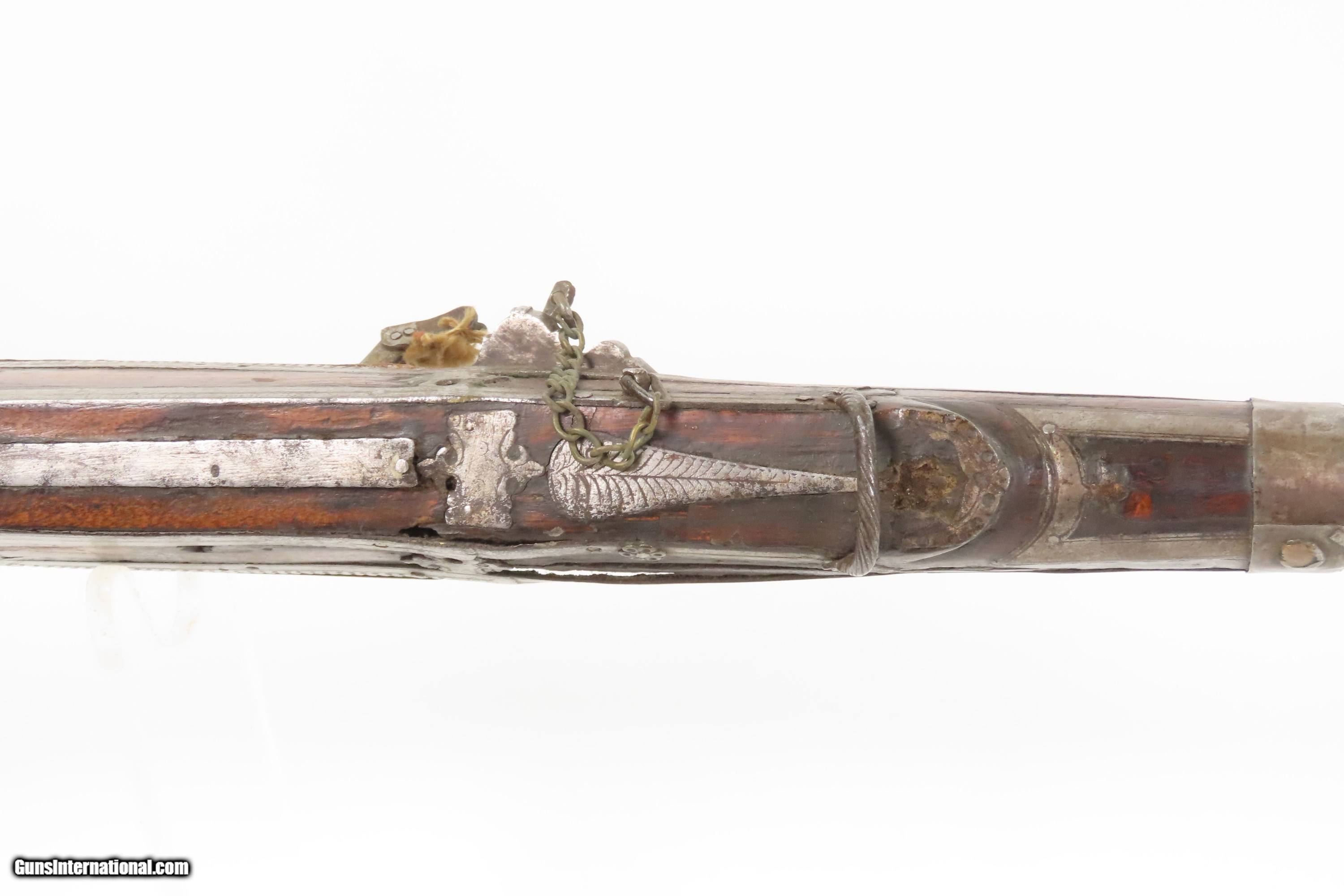 Description: MASSIVE 1700s Antique Northern India TORADAR MATCHLOCK Musket HAND CANNON MUGHAL EMPIRE Indian with LONG 47-3/8 Inch Barrel Here Ancestry Guns presents an antique Indian Toradar Matchlock Musket, made circa the 18th century in India. They were found mostly in the Mughal-influenced Northern and Central India. Emperor Akbar the Great was the Mughal ruler during the late half of the 16th Century. He was known for his many accomplishments, among which was the expansion of his empire. He was a great leader and military commander, but he also benefitted by adopting and developing firearms technology. Production and use of matchlock firearms greatly increased under his guidance, giving him an enormous advantage over those he would conquer. The Mughal Empire would finally succumb to the British in 1858. The matchlock would see its apex from the late 16th Century to about the early 1800s. The gun is a type of smoothbore firearm used in the 16th through 18th centuries by defending forces to break the advance of enemy troops. Essentially, it was a scaled-up version of the army's standard infantry musket, but with a bore of up to one-inch (25.4 mm) caliber. These weapons filled a gap in firepower between the musket and the lightest artillery pieces, such as the swivel gun. This sort of weapon may also be found described as an amusette, rampart gun, or Hackbut, a name originally given to early medieval hand cannon. Original dark patinas. Splitting is present in front of the trigger tang, behind the wrist, a cut at the third barrel band from the front, and a repair in front of the rear barrel band. The action functions. Markings are discernable. Darkened bore, remains good. A barrel band or two are loose. Own the original! This is a legitimate antique and not a reproduction. Barrel is 47-3/8 inches. Caliber: .55 Matchlock Overall condition as seen in photos. Very Fast. Very Safe. FREE SHIPPING WORLDWIDE. Delivered directly to your door by express mail! Guaranteed AUTHENTIC & Includes CERTIFICATE OF AUTHENTICITY. $2200 #259396 Antique: Yes Price: $2,200.00 Buy Now Pay with