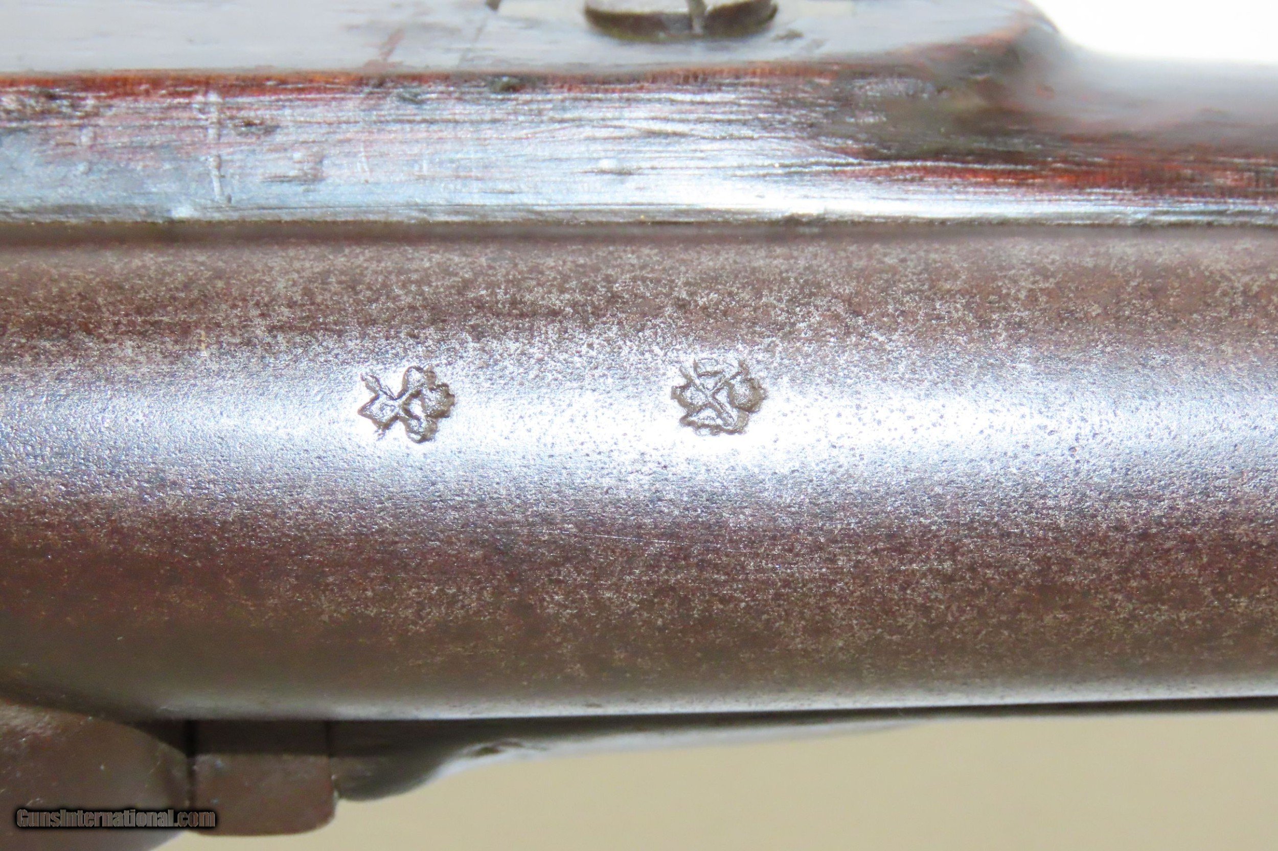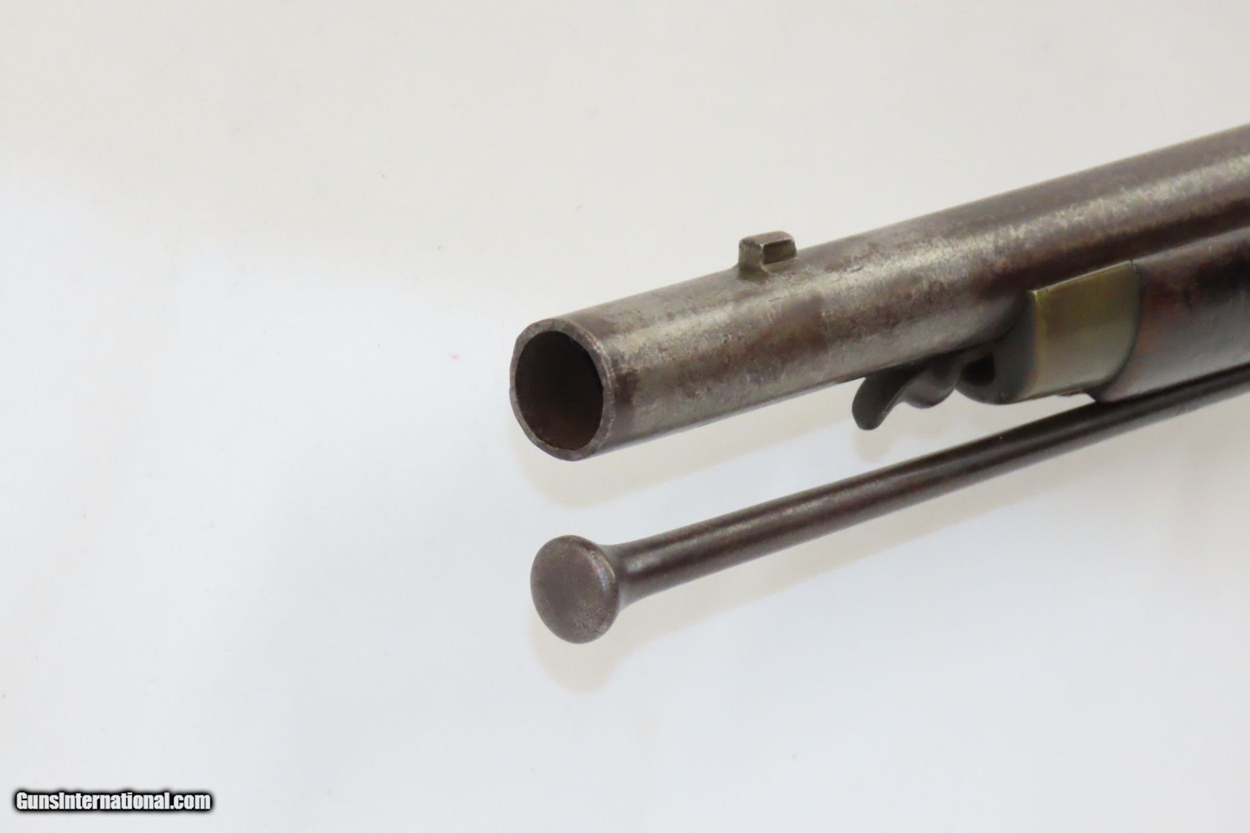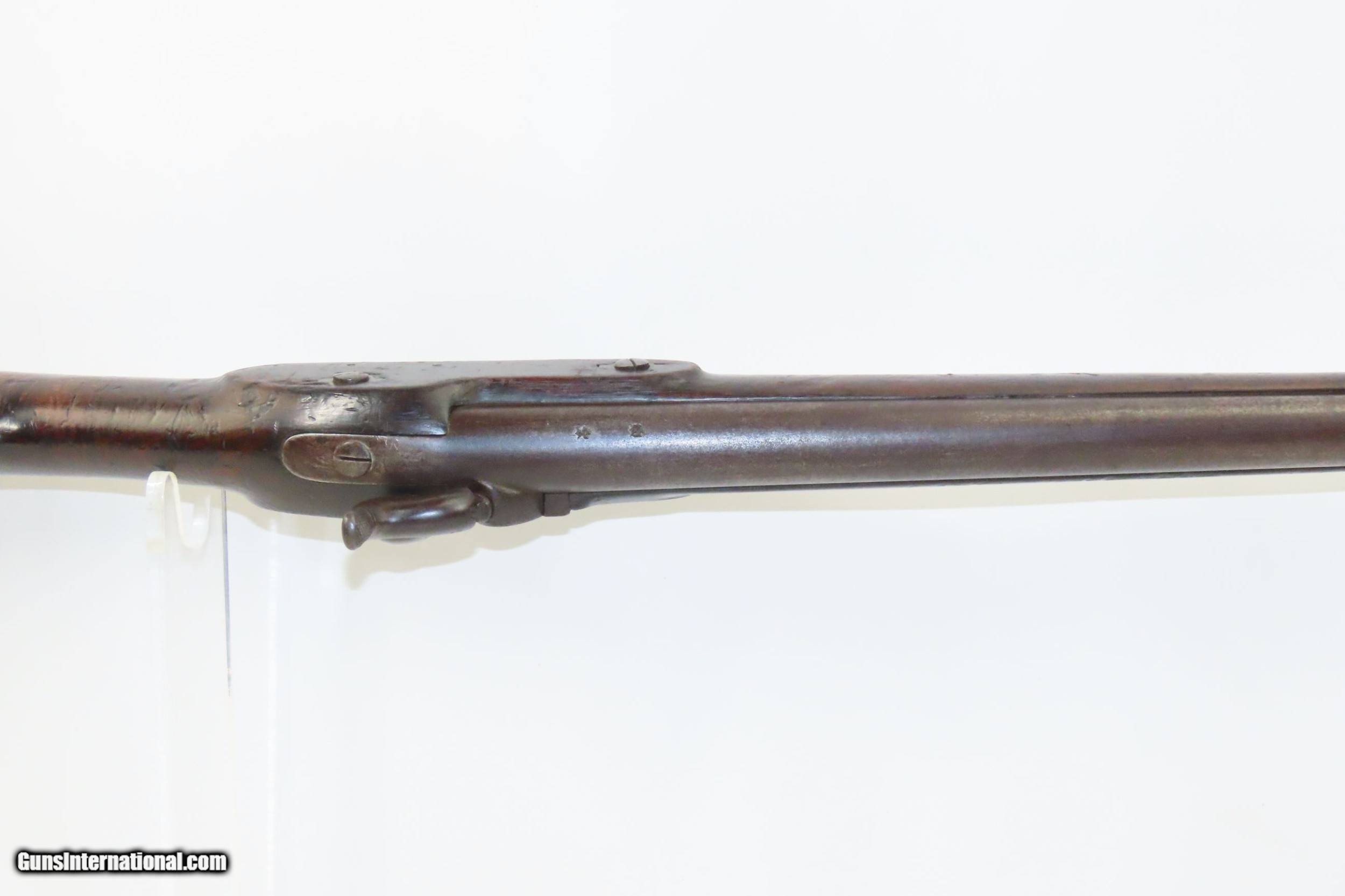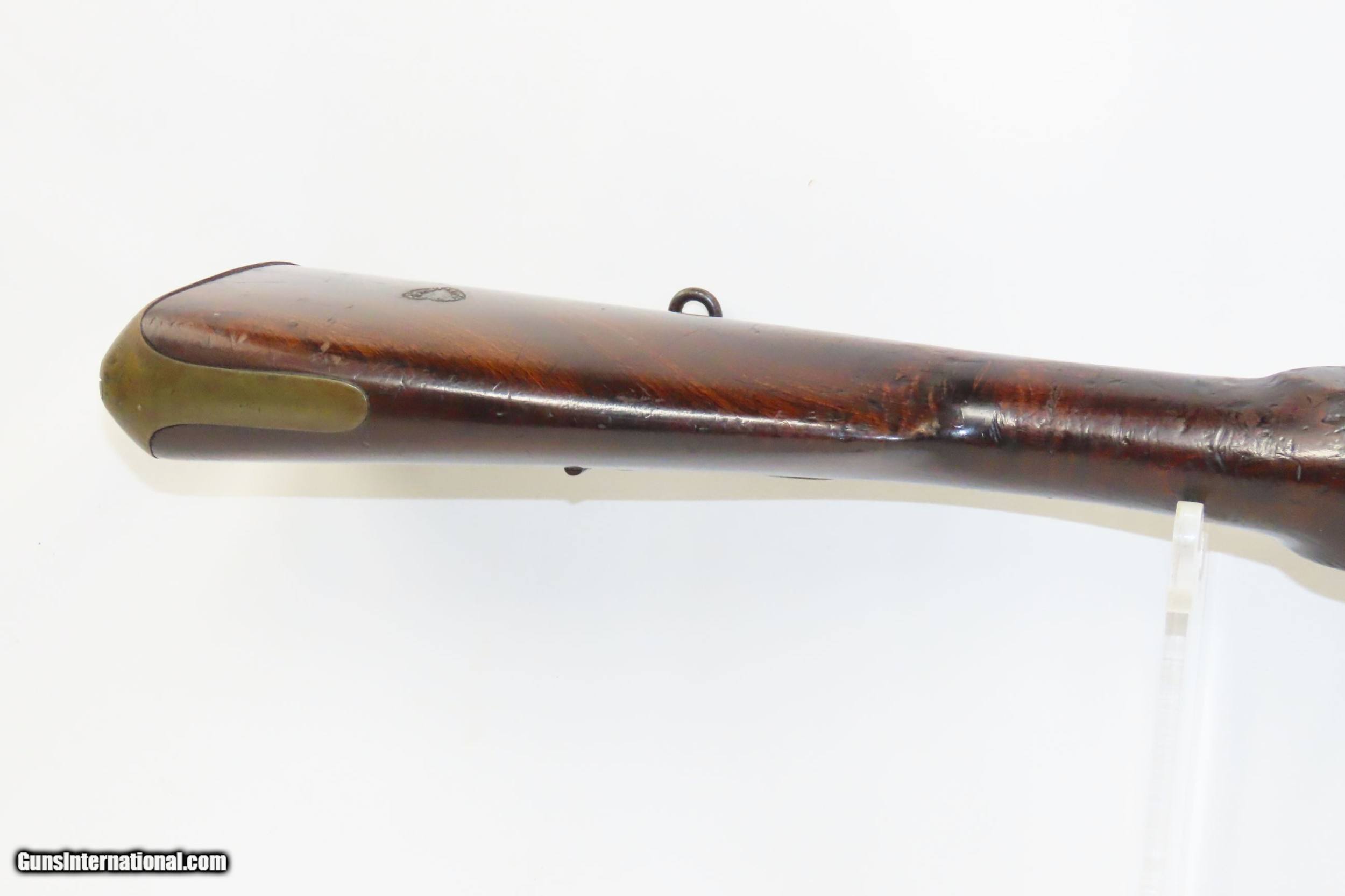 Description: Mid-1800s Antique HOLLIS BROS. & CO. British .65 Caliber PERCUSSION Carbine London Made Rifle from the mid-19th Century Here we present an antique Hollis Bros. & Co. Percussion Carbine made between 1845 to 1848 in London, England. Hollis Brothers & Company started out in the first half of the 19th century in London, England with the name “Hollis Brothers”. The brothers were Isaac Hollis and Frederick Hollis, with Frederick passing away in 1839. It continued under that trade name until 1845 when it was re-named “Hollis Brothers & Co. which continued until 1848, when it became “Hollis & Sons”. The latter became known as a supplier of pistols and shotguns, and also produced muskets for the North American Indian trade. The overall condition is very good. Nice patina. Strong action. Good bore for its age. The stock is solid with and average amount of wear. A unique heart-shaped medallion is embedded on the left buttstock and is hand marked, appearing to read “EK”. Birmingham proofs. Own the original! This is a legitimate antique and not a reproduction. Barrel is 26-3/4 inches. Caliber: .64 percussion Overall condition as seen in photos. Very Fast. Very Safe. FREE SHIPPING WORLDWIDE. Delivered directly to your door by express mail! Guaranteed AUTHENTIC & Includes CERTIFICATE OF AUTHENTICITY. ancestryguns $1900 #220336 SOLD Antique: Yes |