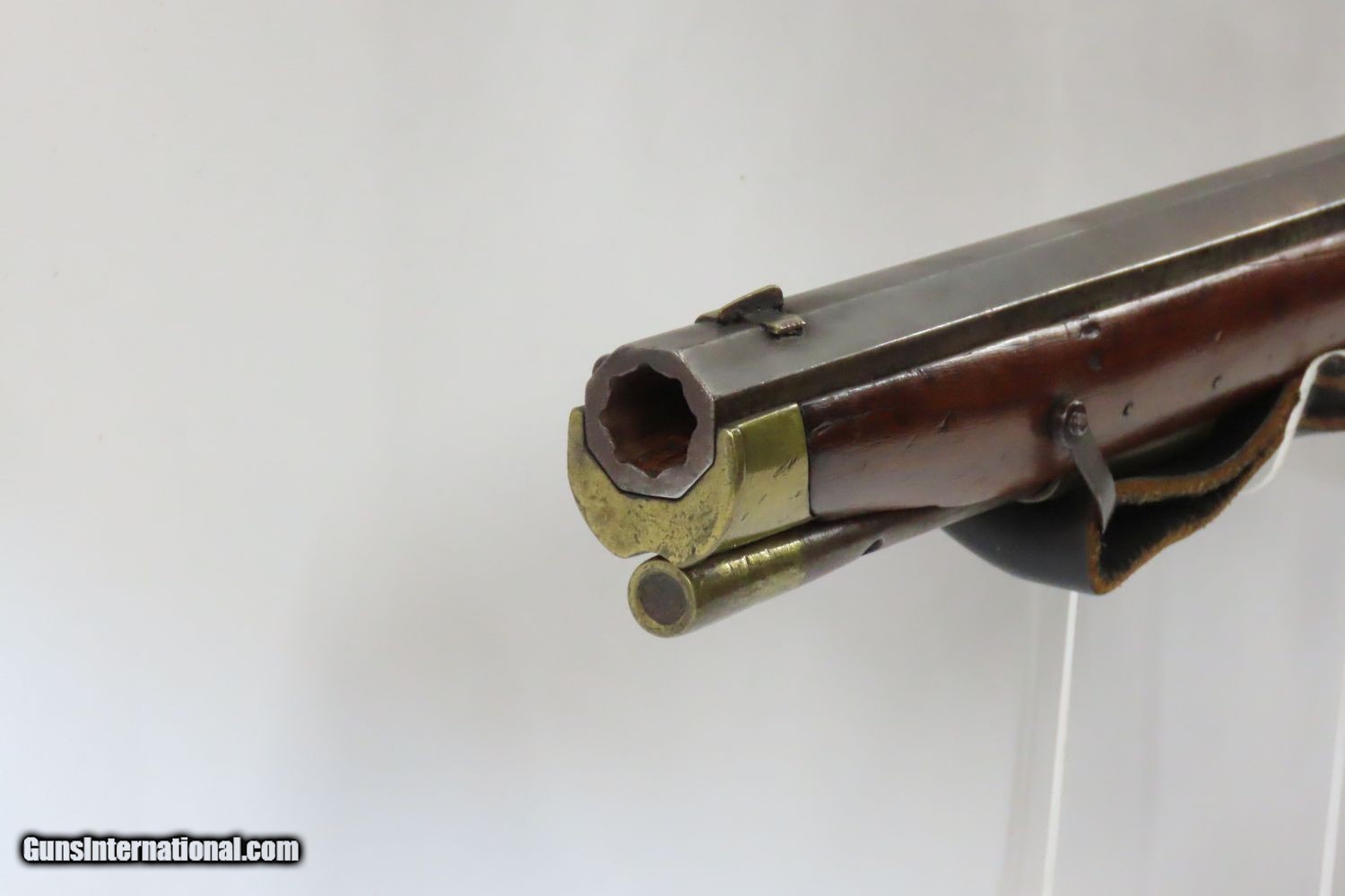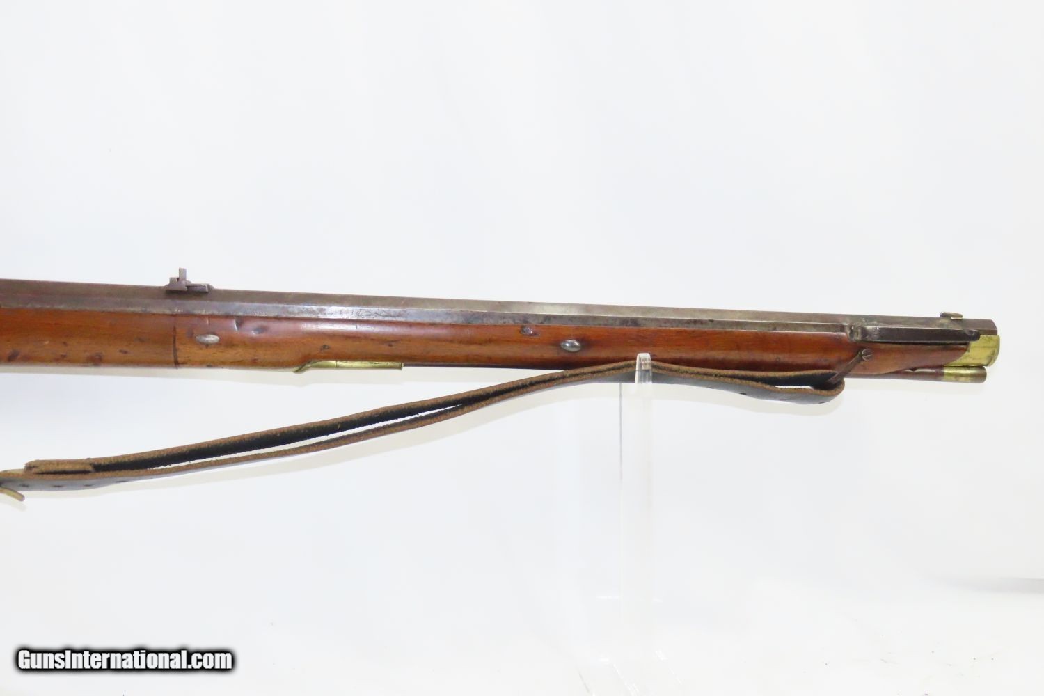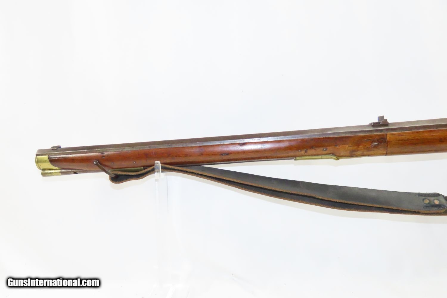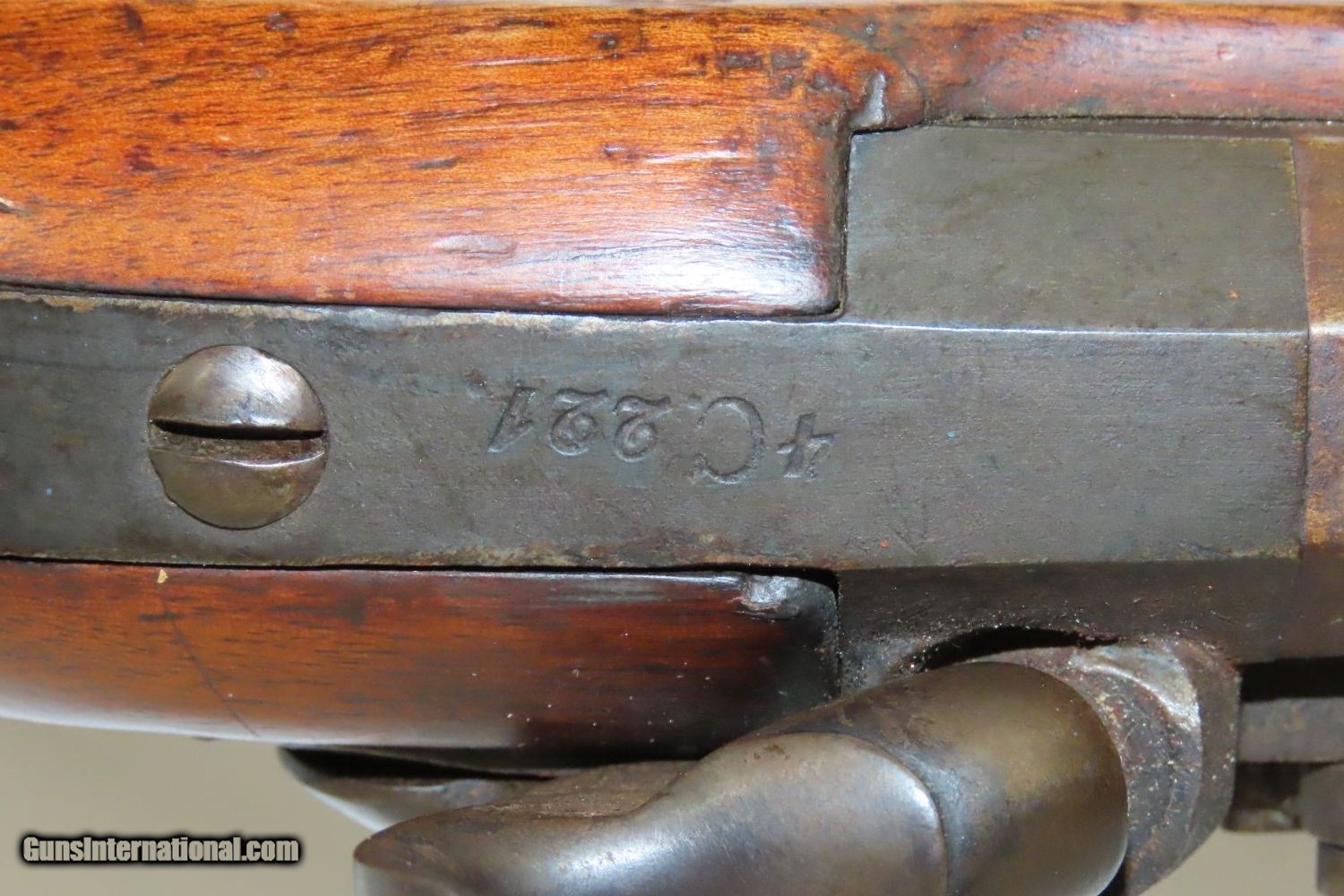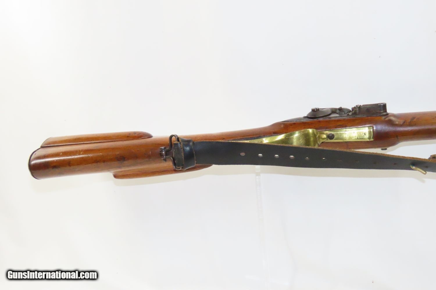 Description: PRUSSIAN JAGERBUSCHSE GERMANIC INFANTRY JAEGER RIFLE .58 Percussion Antique 1810/1835 Flintlock/Percussion Conversion Here we present an antique Prussian Jaeger Rifle 1810/1835, manufactured circa the 1820s in flintlock, then converted to percussion. This scarce Prussian Model 1835 Jäegerbüchse held the distinction of the being the first percussion ignition long arm adopted by the Prussian military. The Prussians began to experiment with the percussion ignition systems for military arms in 1831, and officially adopted the percussion system for all arms in 1839. During that time, experimental and trial arms were issued to specialized regiments and battalions, while the feasibility and the reliability of the new ignition system was tested. The first widespread issue of percussion arms came with the Model 1835 Rifle, which was issued to the “Jäeger” or “Rifle” battalions. The Prussian Model 1835 Percussion Rifle was adapted from the earlier Prussian Model 1810 Flintlock Rifle. The Model 1810 was one of the first, fairly standardized rifles to see widespread issue to any military force in Europe. These guns were fully stocked to the muzzle, incorporated a sliding wooden patch box in the obverse buttstock for the storage of lubricated patches and a raised cheek piece on the reverse buttstock. The rifles were brass mounted with a buttplate, nose cap and two ramrod pipes made of that material. Sling swivels were installed on the upper stock, below the bayonet bar, and screwed into the toe of the stock. The rifles were equipped with adjustable double-set triggers to enhance accurate shooting. This musket would have been used in Prussian conflicts during the 1840s and 50s, including the Egyptian-Ottoman War, the Greater Poland Uprising, the Revolutions of 1848, and the First Schleswig War. This one has matching unit markings on both the breech of the barrel and the butt plate: “4C/221”. There is also a date of “1824” on the butt plate, the numeral “II”, and initials that may be a “GS” (possibly for Gebruder Schlickler of the Potsdam Arnsenal). There is also a date of “1834” on the right side of the barrel just forward of the lock. The overall condition is good. The action is functional, though the half-cock notch is too worn to hold. The lock screws are replacements that do hold the lock on but they could be better. Nicely rifled bore. The stock is solid, though there is a joint about midway where the two parts were spliced together. The leather sling is in good shape. Own the original! This is a legitimate antique and not a reproduction. Barrel is 27-3/4 inches. Caliber: .58 Percussion Overall condition as seen in photos. Very Fast. Very Safe. FREE SHIPPING WORLDWIDE. Delivered directly to your door by express mail! Guaranteed AUTHENTIC & Includes CERTIFICATE OF AUTHENTICITY. ancestryguns $1835 #210169 SOLD Antique: Yes |