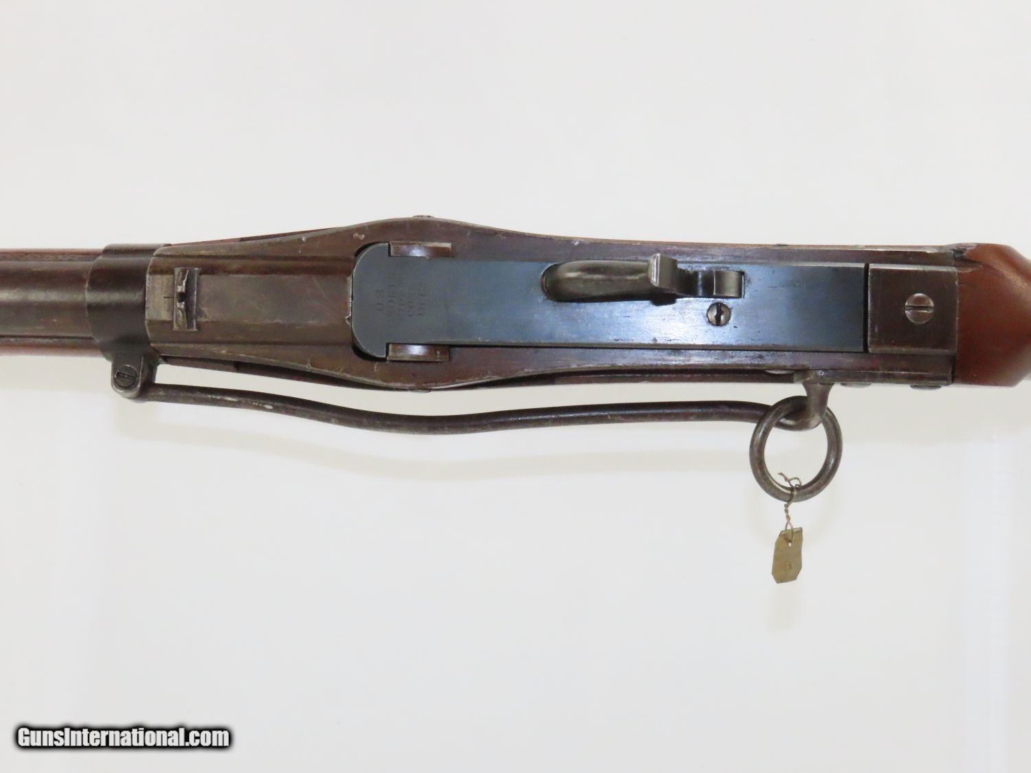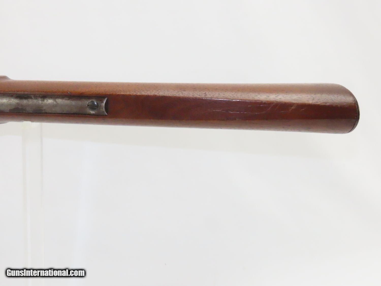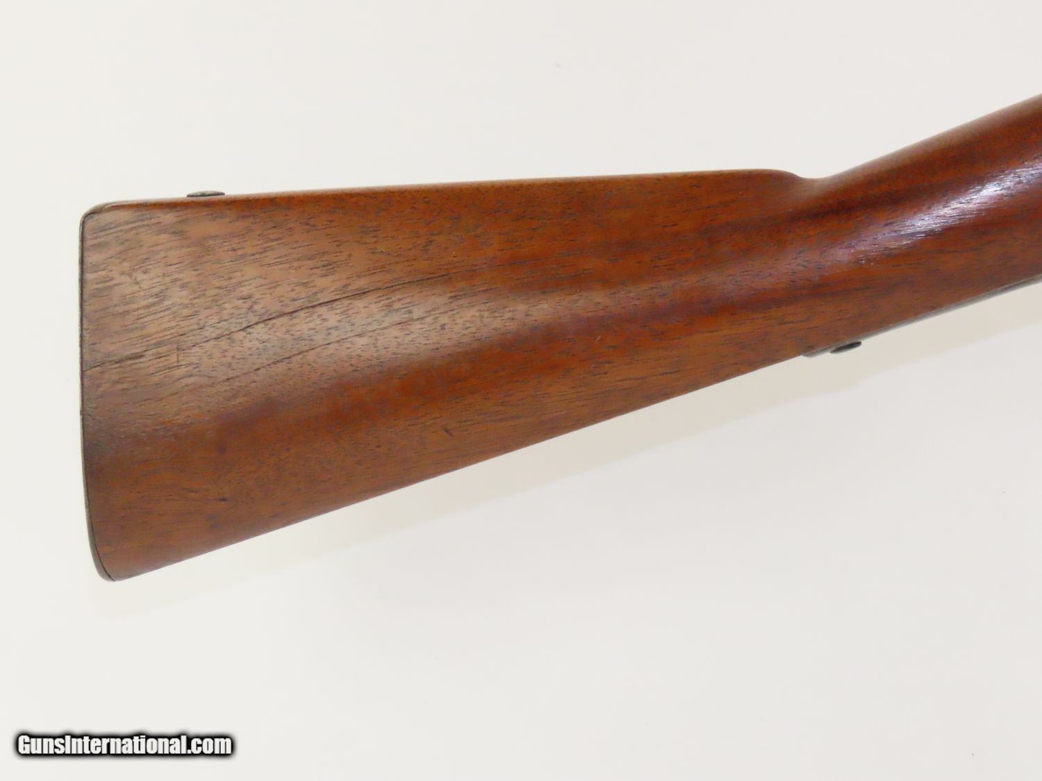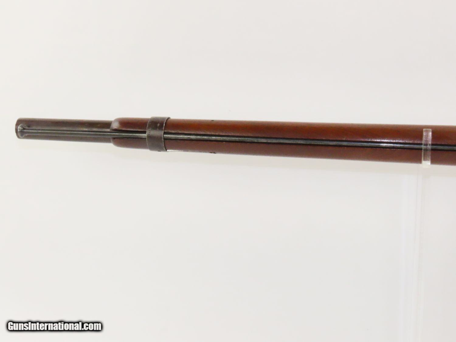 Description: RARE Antique SIMEON NORTH US Model 1840 HALL Breech Loading CAVALRY CARBINE 1 of 6,001! Fantastic Condition! Here we present an antique U.S. Model 1840 Side Lever Breech Loading Carbine from the Simeon North Contract, made circa 1842 in Middletown, Connecticut. A native of Berlin, Connecticut, Simeon North was one of the most influential arms makers of the early republic beginning with manufacturing the first U.S. martial pistols in 1799 (the North-& Cheney Model 1799s) and finally ending with the Model 1843 Hall carbines right up to his death in 1852. He was influential in developing the first milling machines and also helped establish truly interchangeable parts on U.S. martial arms. He manufactured 6,501 of these Model 1840 Hall carbines in 1840 through 1843. 6,001 of them, including this one, were the standard Type II with the distinctive "fishtail" shaped breech lever. It is dated "1842" on the breech and has standard sights and markings. North was better known for the rifles that he produced. In 1823, he won a government contract in which he supplied the army with standard breech-loading rifles. These initially were flintlock arms, but in 1843 North submitted a new design for governmental approval. His revamped model was christened "North's Improvement" for its improved method of working the breech mechanism. Until then, breech-loading rifles were flawed with loose seams between the chamber and the barrel, causing flames to spurt out the back and losing some velocity because of this gas leakage. North's design made the breech mechanism fit more closely to the barrel, thus reducing the loss of velocity. His adaptation of the Hall percussion breechloader was a success with the army, and he continued filling orders until his death in 1852. This carbine was made in 1842 and would have been in use during the Mexican-American War and throughout the American Civil War. This one features the “fish-tail” breech lever, the sling ring bar on the left side, and a .52 caliber rifled bore. “JCB” is stamped on the left side of the stock and on the barrel. The breech is marked “U.S/S.NORTH/MIDLTN/CONN./1842”. The overall condition is near fine. Original brown lacquer finish on the steel parts. Smooth stock with clear markings. The action is excellent. The bore is in great shape with sharp rifling and still reflective surfaces. A fantastic example of a scarce US cavalry carbine! Own the original! This is a legitimate antique and not a reproduction. Barrel is 21-1/8 inches. Caliber: .52 Percussion Overall condition as seen in photos. Very Fast. Very Safe. FREE SHIPPING WORLDWIDE. Delivered directly to your door by express mail! Guaranteed AUTHENTIC & Includes CERTIFICATE OF AUTHENTICITY. ancestryguns $3650 #20169 SOLD Antique: Yes |