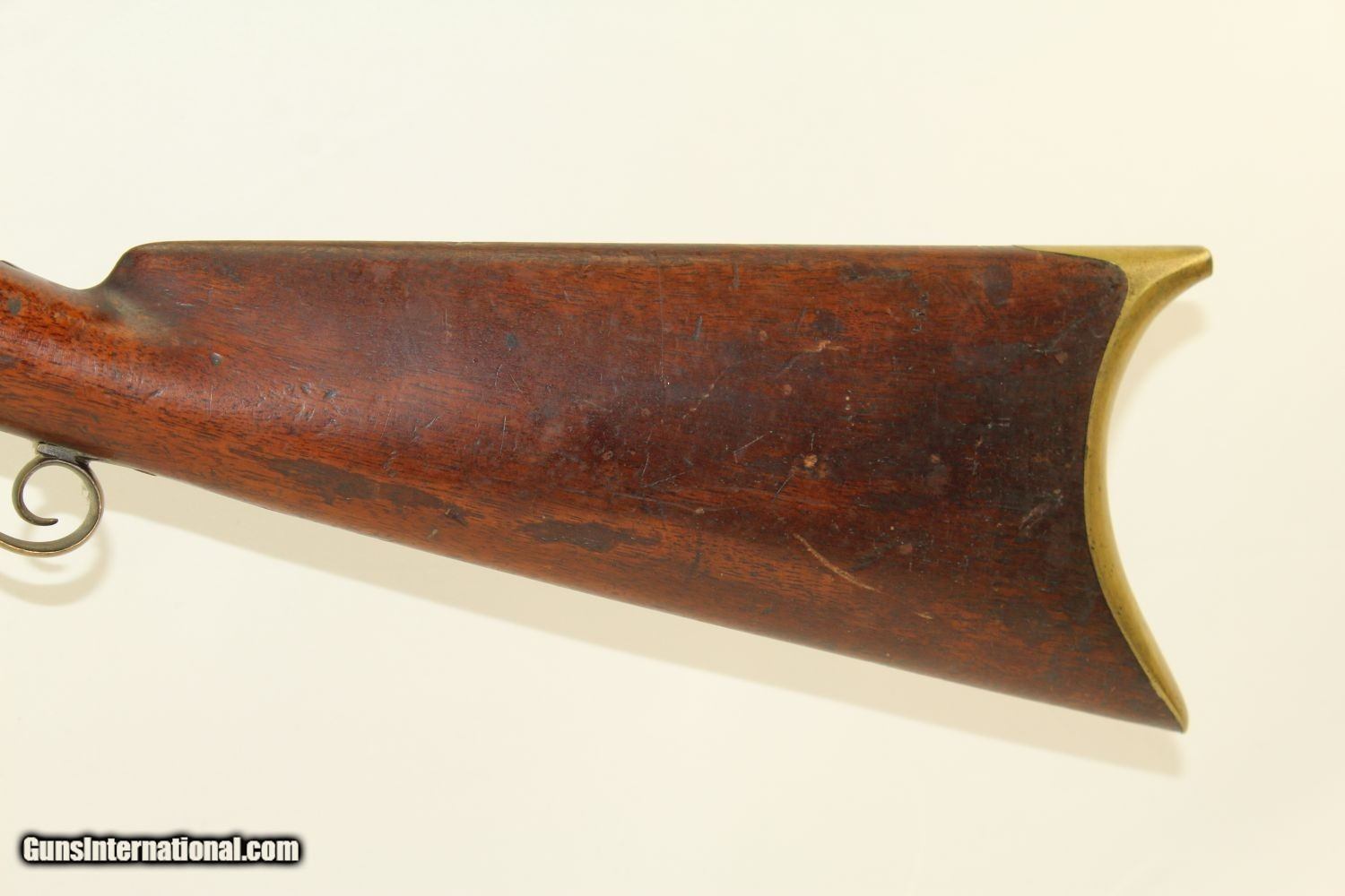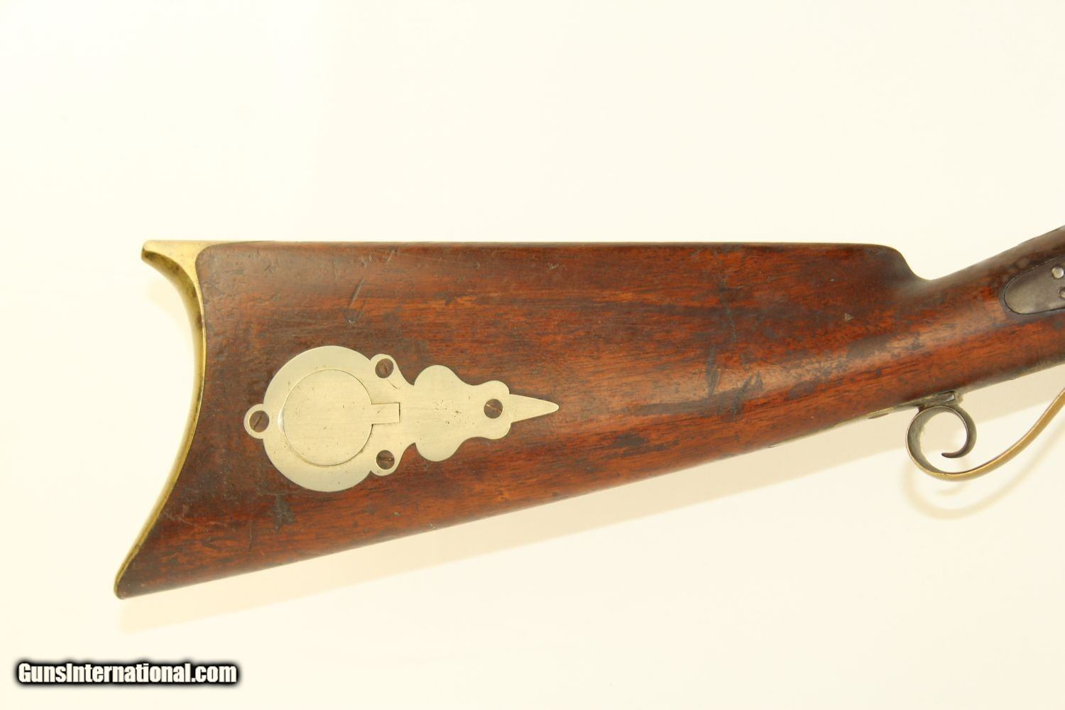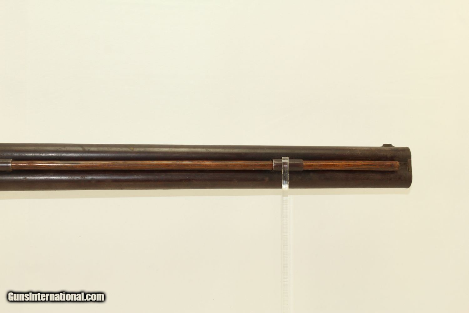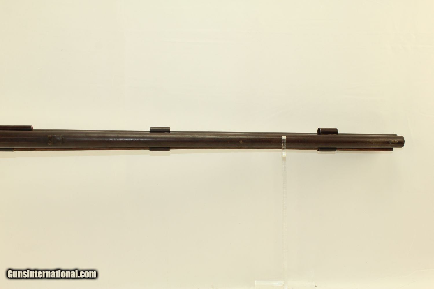 Description: RARE Mule Ear Percussion COMBINATION RIFLE/SHOTGUN Scarce Early 1800s American Design Here we present an antique Mule Ear percussion combination rifle/shotgun made circa the mid-1830s. This is a very interesting American design that originated in the 1820s and continued through the mid-1800s. This is a percussion rifle and shotgun combination that is fired by the two independent percussion hammers on the right side of the firearm. These were very popular in the northeast and upper New York. It was great for the field when hunting, offering the hunter an appropriate load for whatever game he might come across, whether feathered or furry, and a fast follow up shot never hurts. This combination gun is relatively short and handy. The top bore is rifled and .41 caliber while the lower bore is smooth and .69 caliber. Rifle sights. One trigger works both hammers. German silver patchbox with brass trigger guard and butt plate. The overall condition is very good. The bores are in great shape, the bottom smooth and the top well-rifled. The action is strong. The trigger return spring is a little weak but overcome with by simply helping the trigger forward. Own the original! This is a legitimate antique and not a reproduction. Barrels are 29 inches. Caliber: .41 Percussion Rifle, .69 Percussion Shotgun Overall condition as seen in photos. Very Fast. Very Safe. FREE SHIPPING WORLDWIDE. Delivered directly to your door by express mail! Guaranteed AUTHENTIC & Includes CERTIFICATE OF AUTHENTICITY. ancestryguns $1650 #190205 SOLD Antique: Yes |
