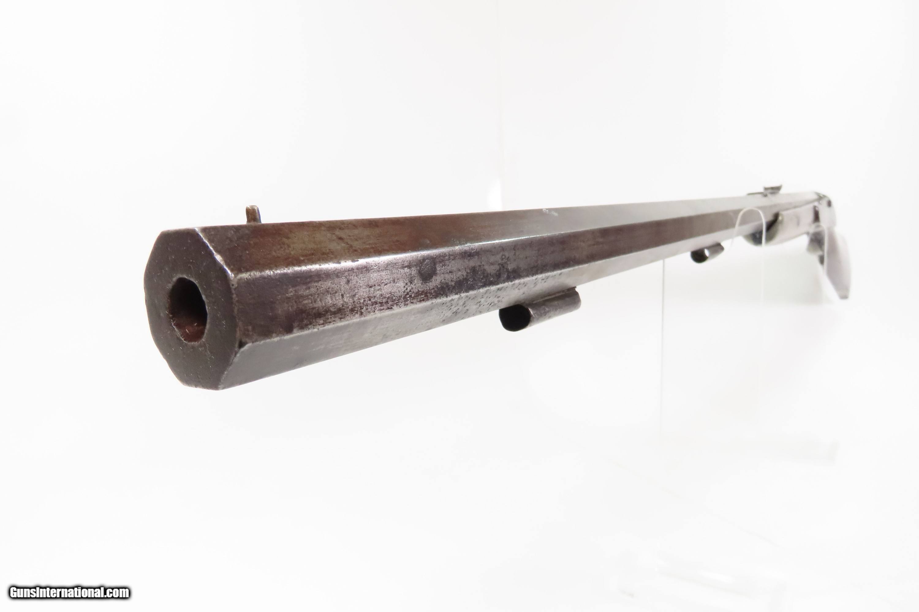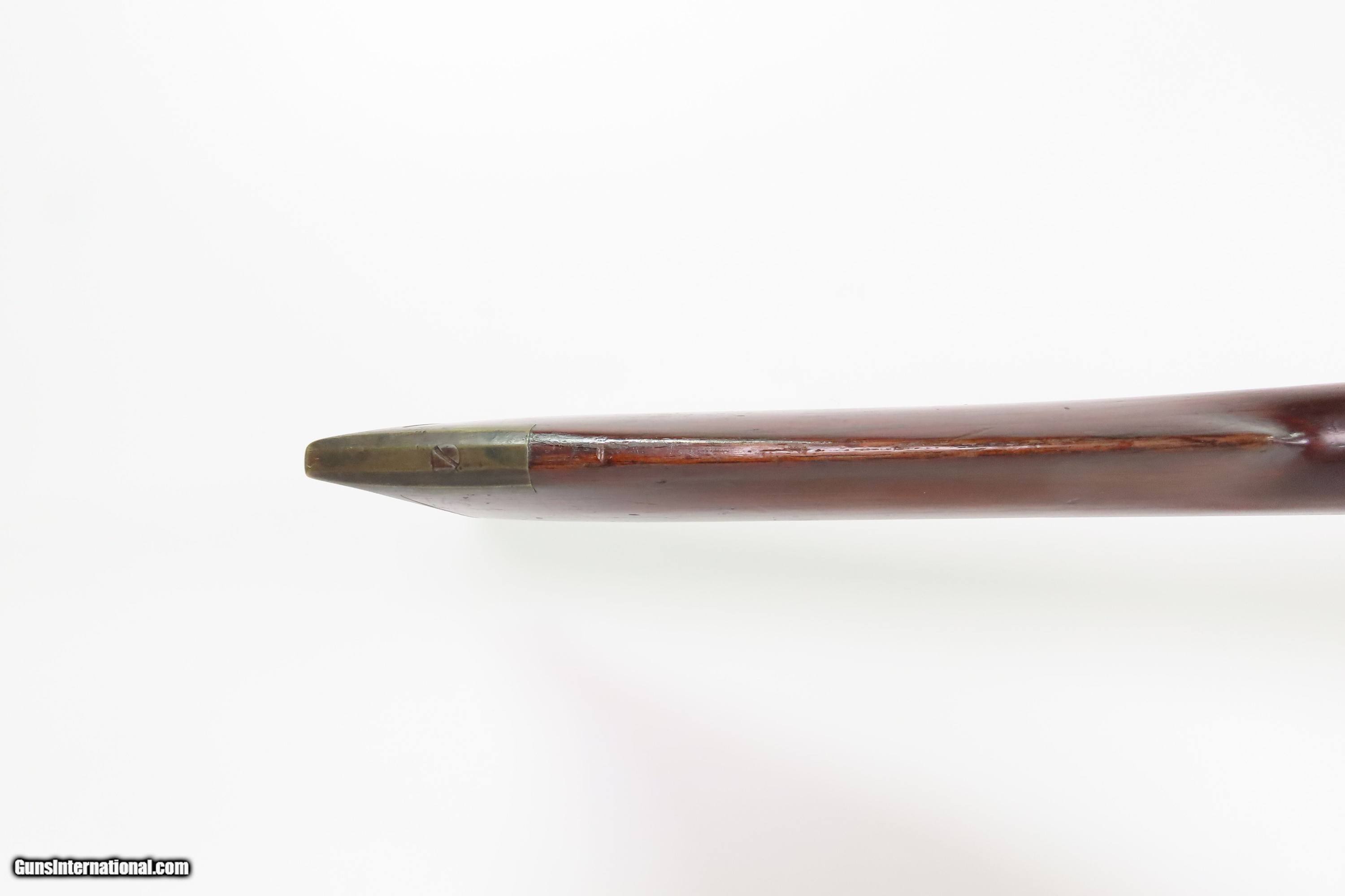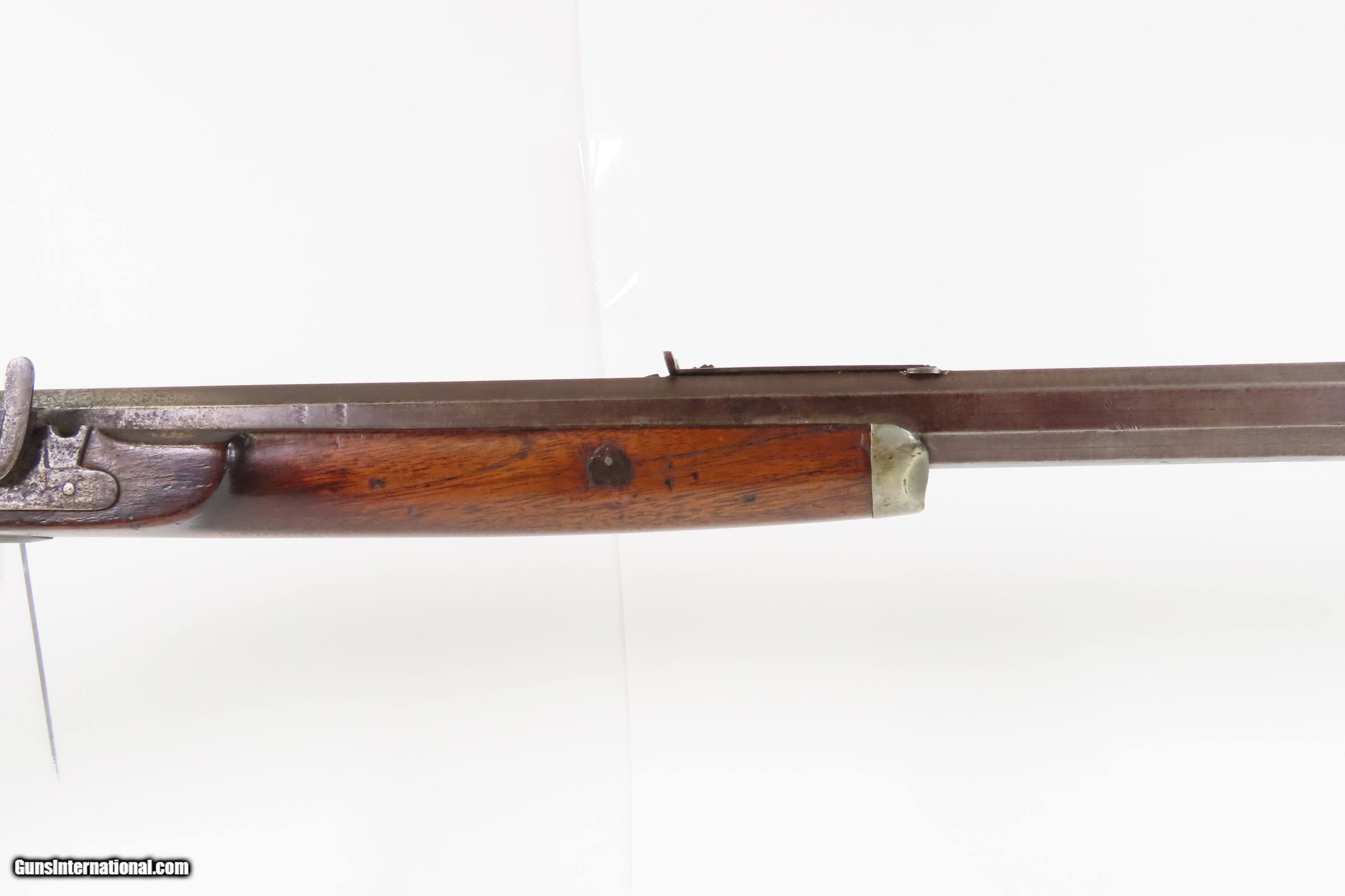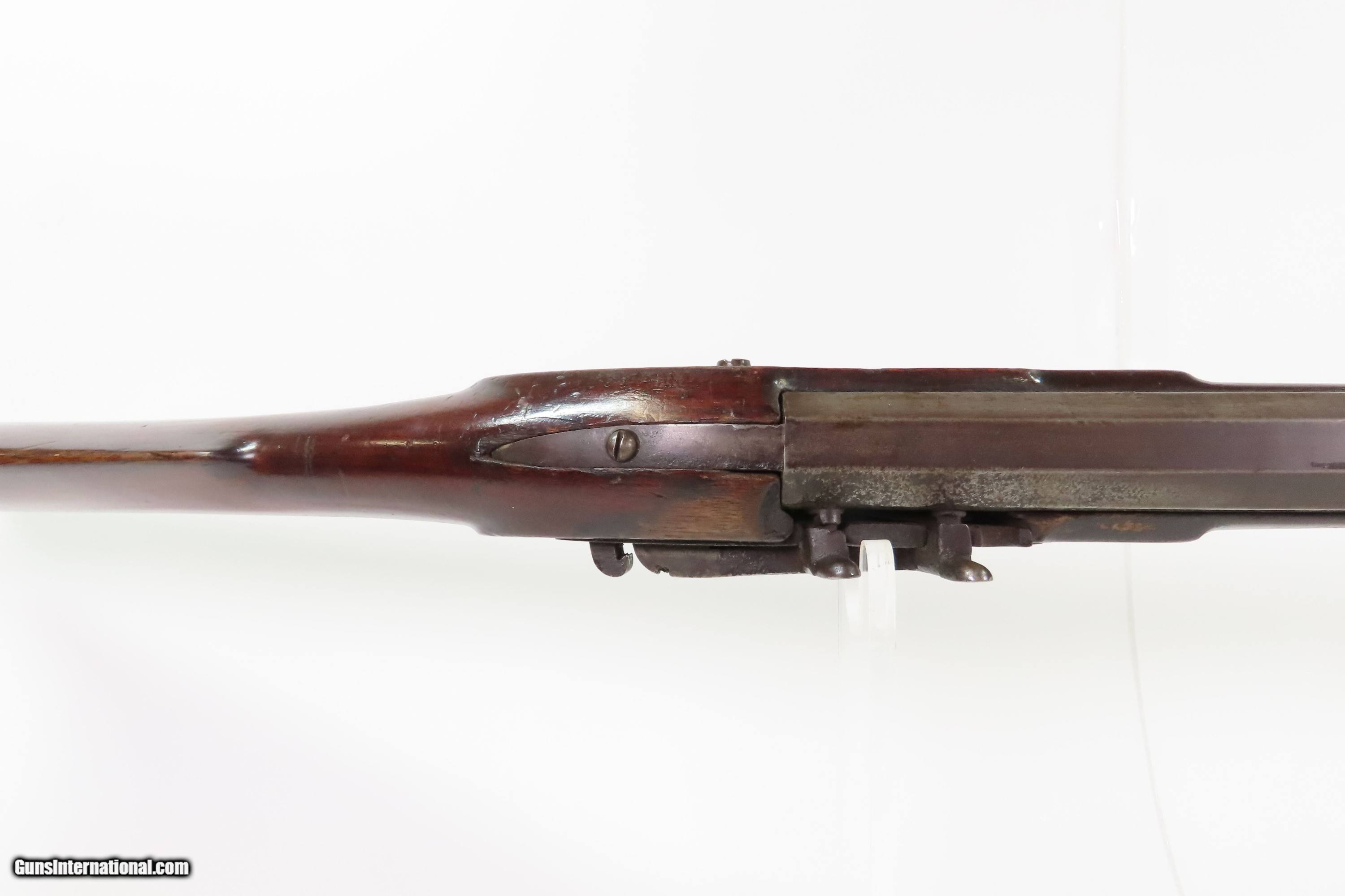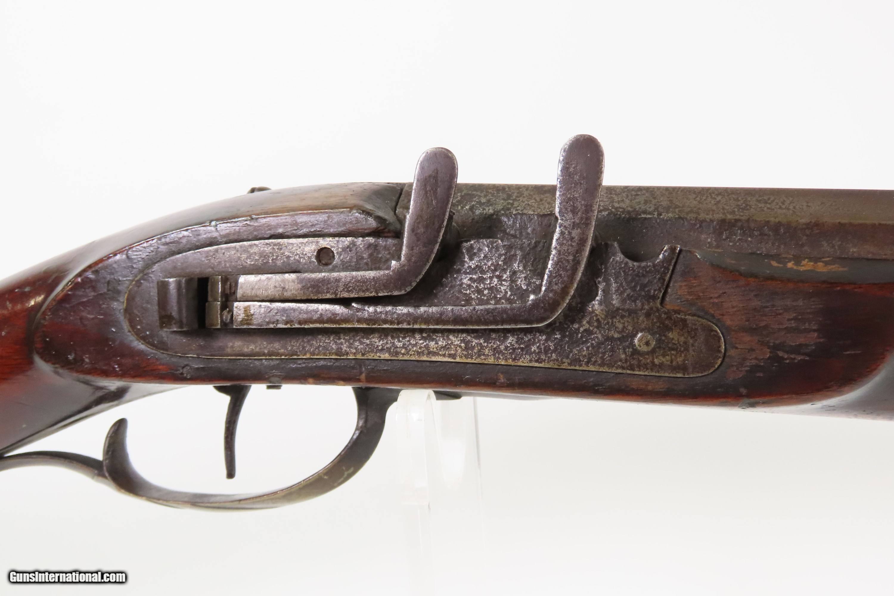Description: SCARCE 1850s Antique SUPERPOSED LOAD Two Shot Percussion MULE EAR Rifle SINGLE BARREL with TWO SEPARATE IGNITION CHAMBERS Here we present an antique Mule Ear American Superposed Load Two Shot Half Stock Percussion Rifle made circa the mid-1800s. All the way back through pre-flintlock days, the pursuit for a repeating firearm was a concept on the mind of gun designers and innovators of the time. The goal was simply to develop a more efficient firearm that could allow the user to off as many shots as possible with minimum effort. A concept emerged during this period to load several loads of powder and ball into a single barrel instead of relying on multiple barrels. This concept called for several flash holes to be cut into the barrel at the location of each separate charge inside the barrel. The ignition would work separately from front to rear, with the goal being to launch the first load in the stack without setting off the other charges behind. These arms came to be known as "superposed" loaded guns. Several different versions of these “superposed” loaded firearms were developed throughout the black powder era. The overall condition is good. Mixed brown and gray patinas throughout. The stock is revarnished with a repair around the barrel pin. The short hammer doesn’t sit in the cocked position while the long hammer functions strongly. The bore retains shimmer with sharp rifling. Absent ramrod, both lugs are dented. Own the original! This is a legitimate antique and not a reproduction. Barrel is 30 inches. Caliber: .41 Percussion Overall condition as seen in photos. Very Fast. Very Safe. FREE SHIPPING WORLDWIDE. Delivered directly to your door by express mail! Guaranteed AUTHENTIC & Includes CERTIFICATE OF AUTHENTICITY. $1475 #256076 Antique: Yes Price: $1,475.00 Buy Now Pay with ![]() Contact Seller |