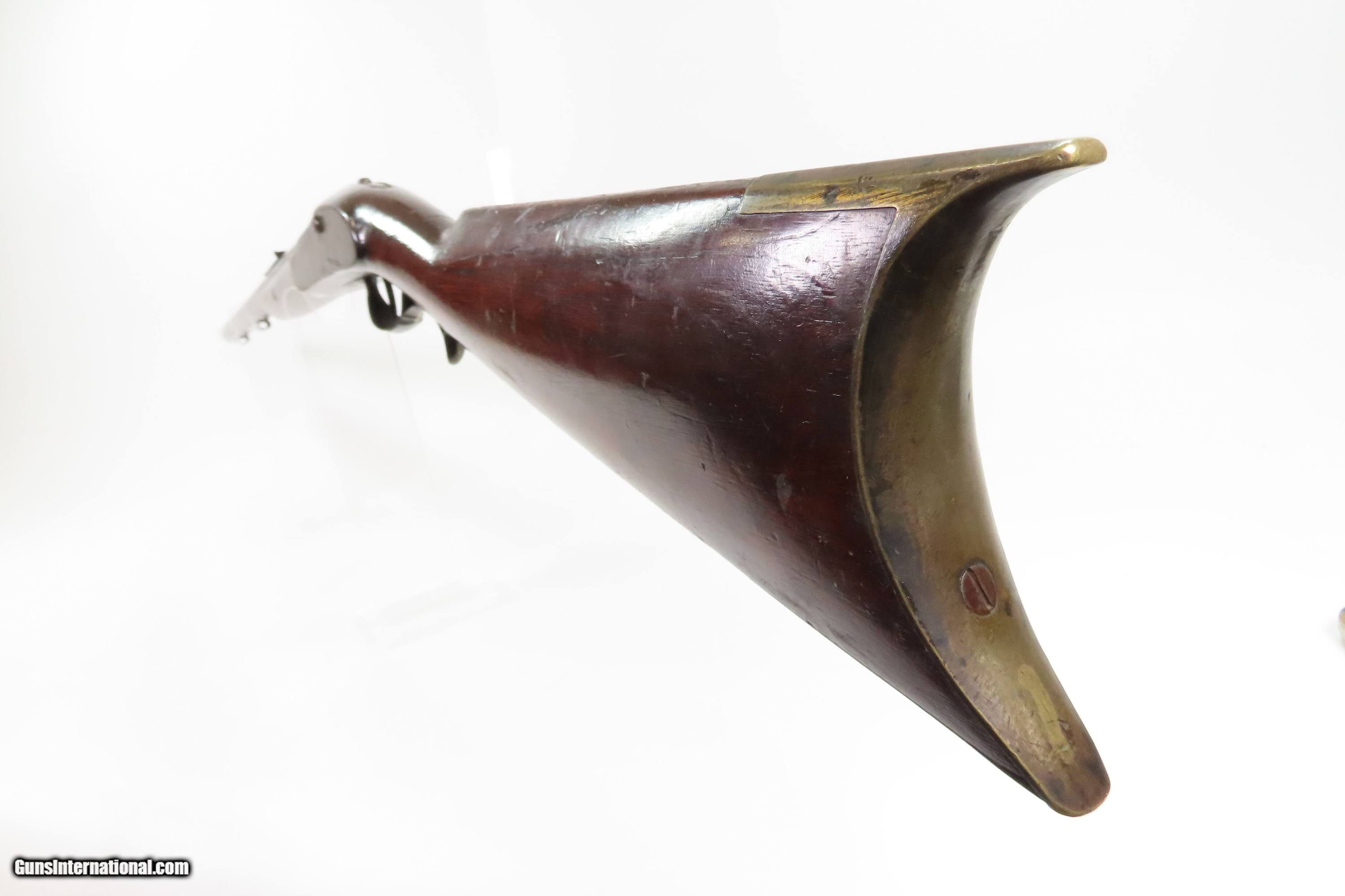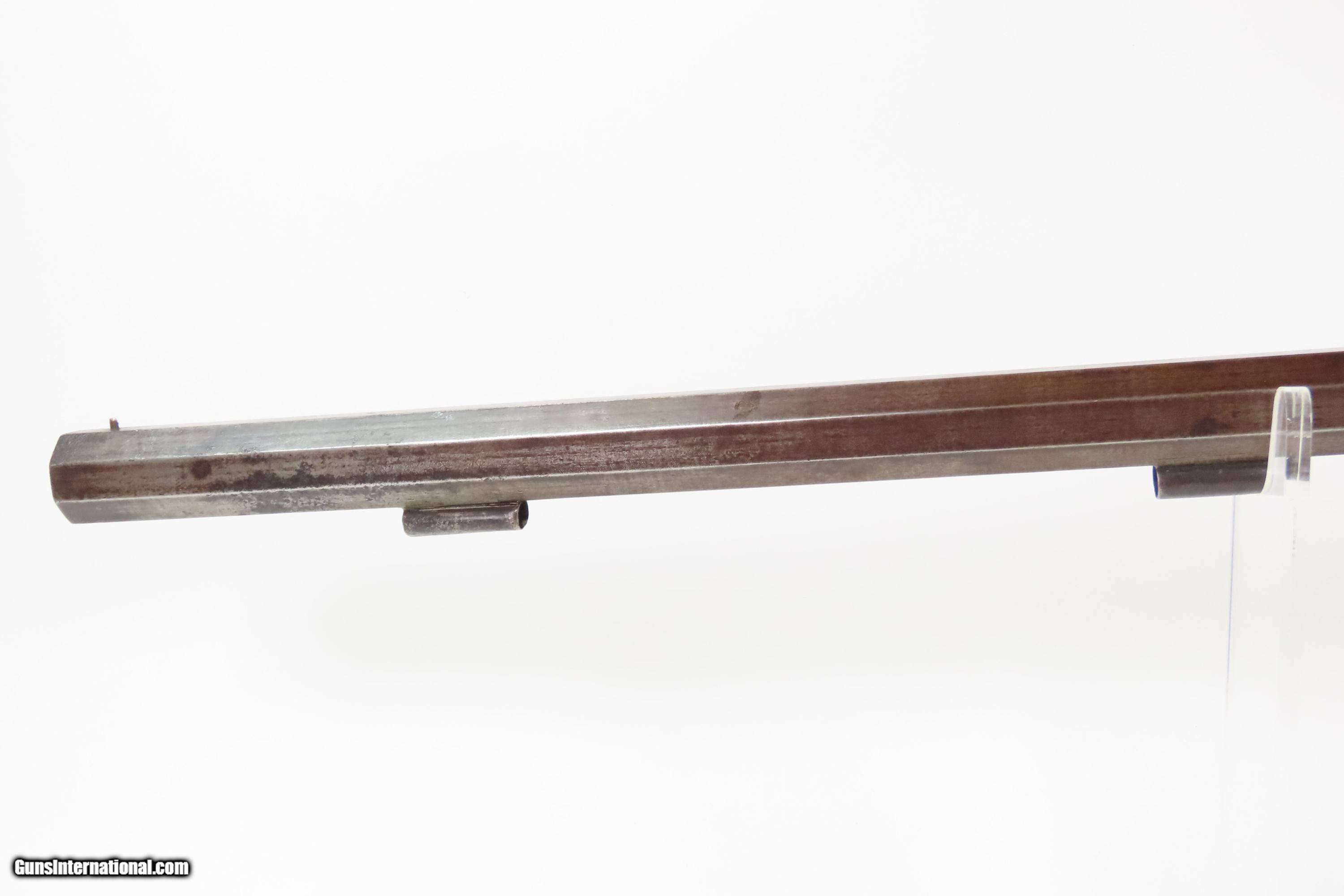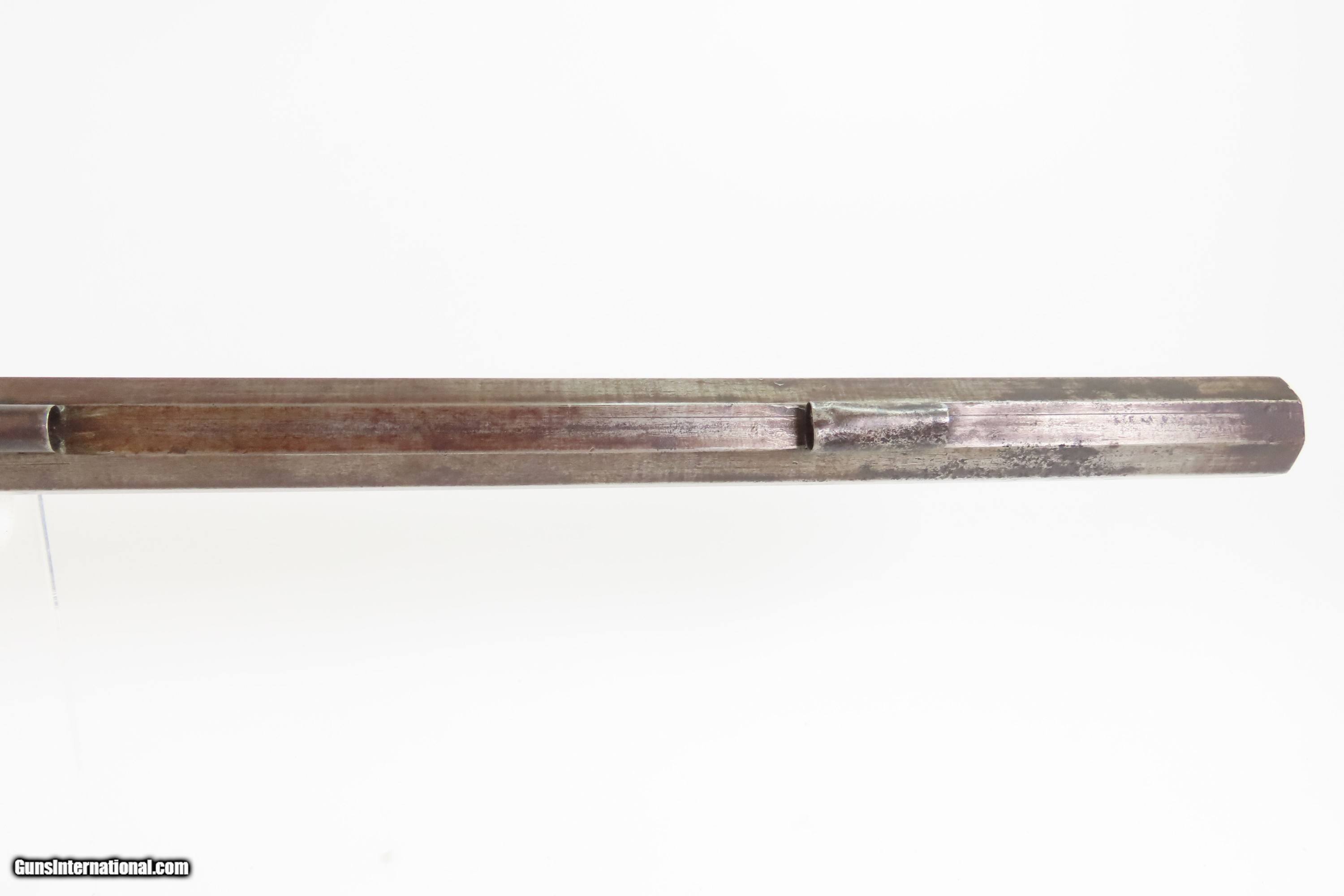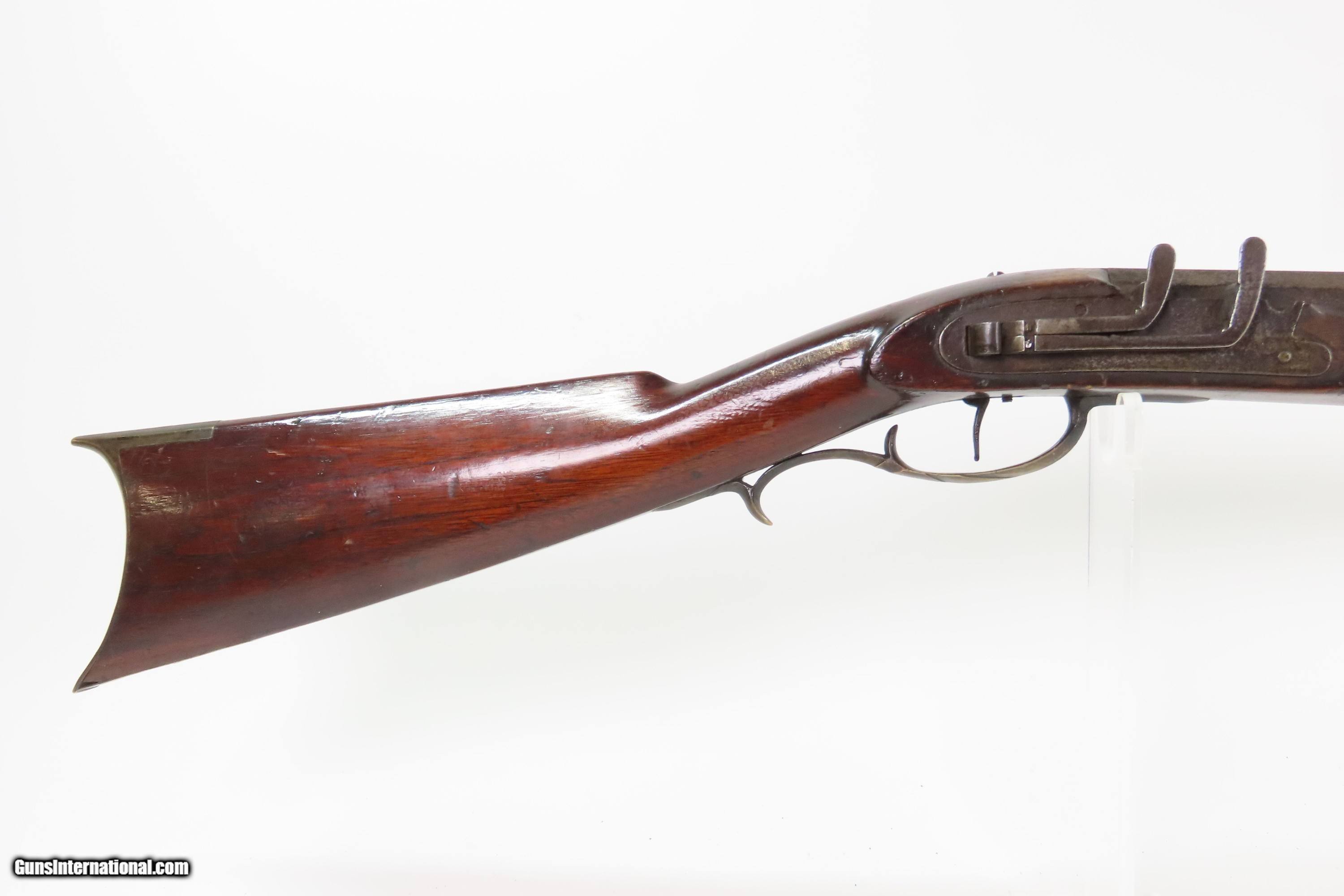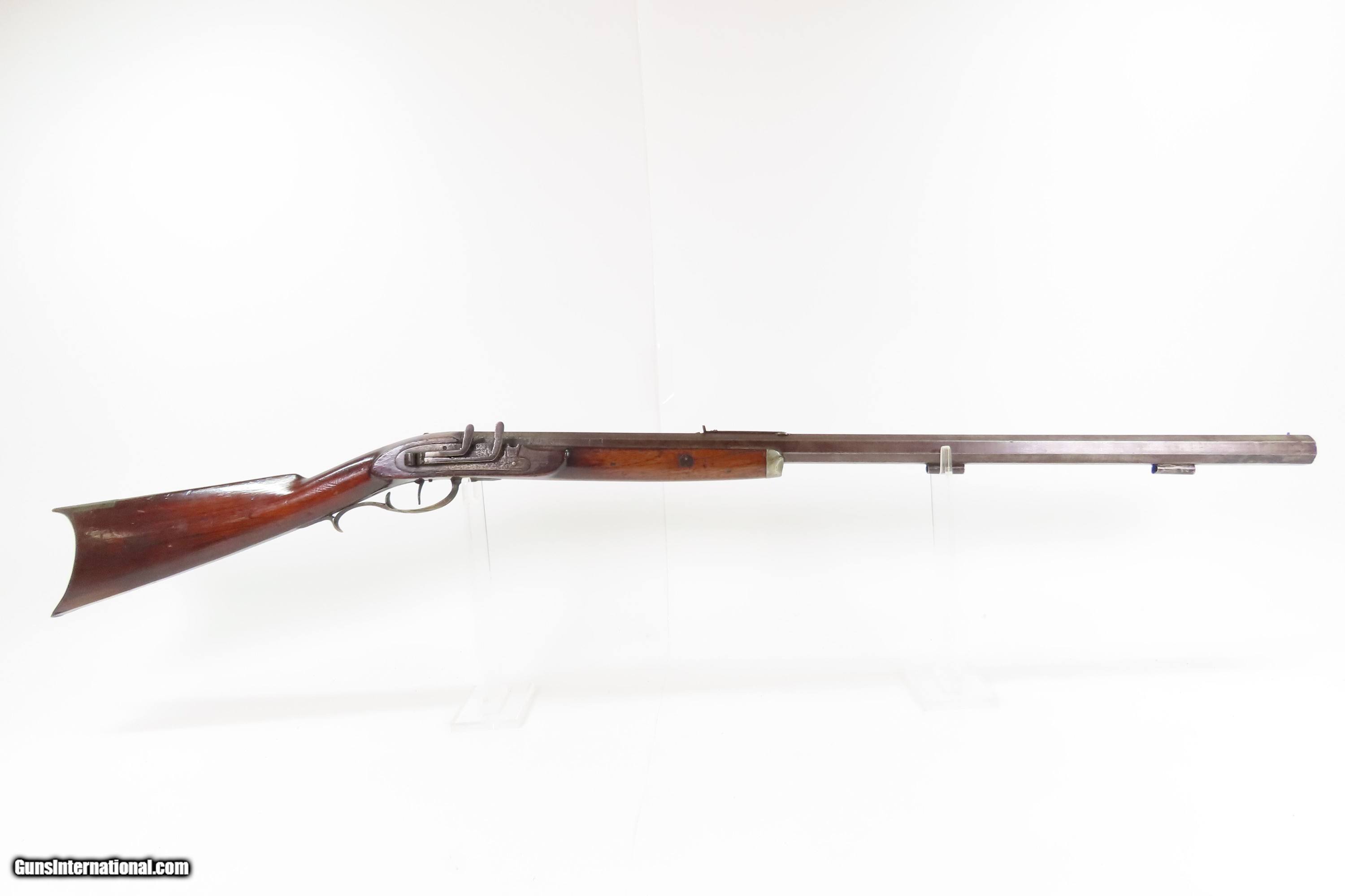 Description: SCARCE 1850s Antique SUPERPOSED LOAD Two Shot Percussion MULE EAR Rifle SINGLE BARREL with TWO SEPARATE IGNITION CHAMBERS Here we present an antique Mule Ear American Superposed Load Two Shot Half Stock Percussion Rifle made circa the mid-1800s. All the way back through pre-flintlock days, the pursuit for a repeating firearm was a concept on the mind of gun designers and innovators of the time. The goal was simply to develop a more efficient firearm that could allow the user to off as many shots as possible with minimum effort. A concept emerged during this period to load several loads of powder and ball into a single barrel instead of relying on multiple barrels. This concept called for several flash holes to be cut into the barrel at the location of each separate charge inside the barrel. The ignition would work separately from front to rear, with the goal being to launch the first load in the stack without setting off the other charges behind. These arms came to be known as "superposed" loaded guns. Several different versions of these “superposed” loaded firearms were developed throughout the black powder era. The overall condition is good. Mixed brown and gray patinas throughout. The stock is revarnished with a repair around the barrel pin. The short hammer doesn’t sit in the cocked position while the long hammer functions strongly. The bore retains shimmer with sharp rifling. Absent ramrod, both lugs are dented. Own the original! This is a legitimate antique and not a reproduction. Barrel is 30 inches. Caliber: .41 Percussion Overall condition as seen in photos. Very Fast. Very Safe. FREE SHIPPING WORLDWIDE. Delivered directly to your door by express mail! Guaranteed AUTHENTIC & Includes CERTIFICATE OF AUTHENTICITY. $1475 #256076 Antique: Yes Price: $1,475.00 Buy Now Pay with ![]() Contact Seller |