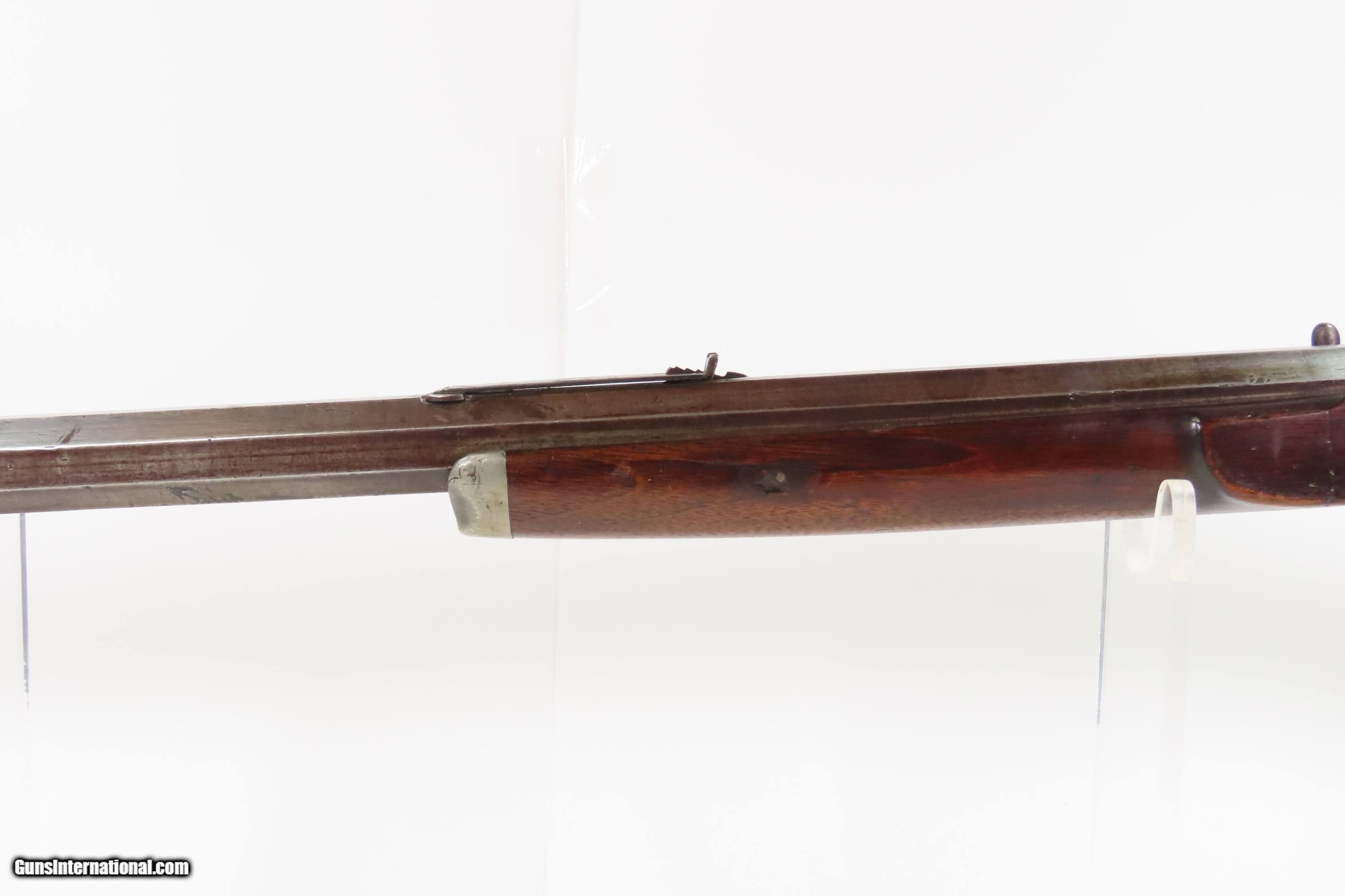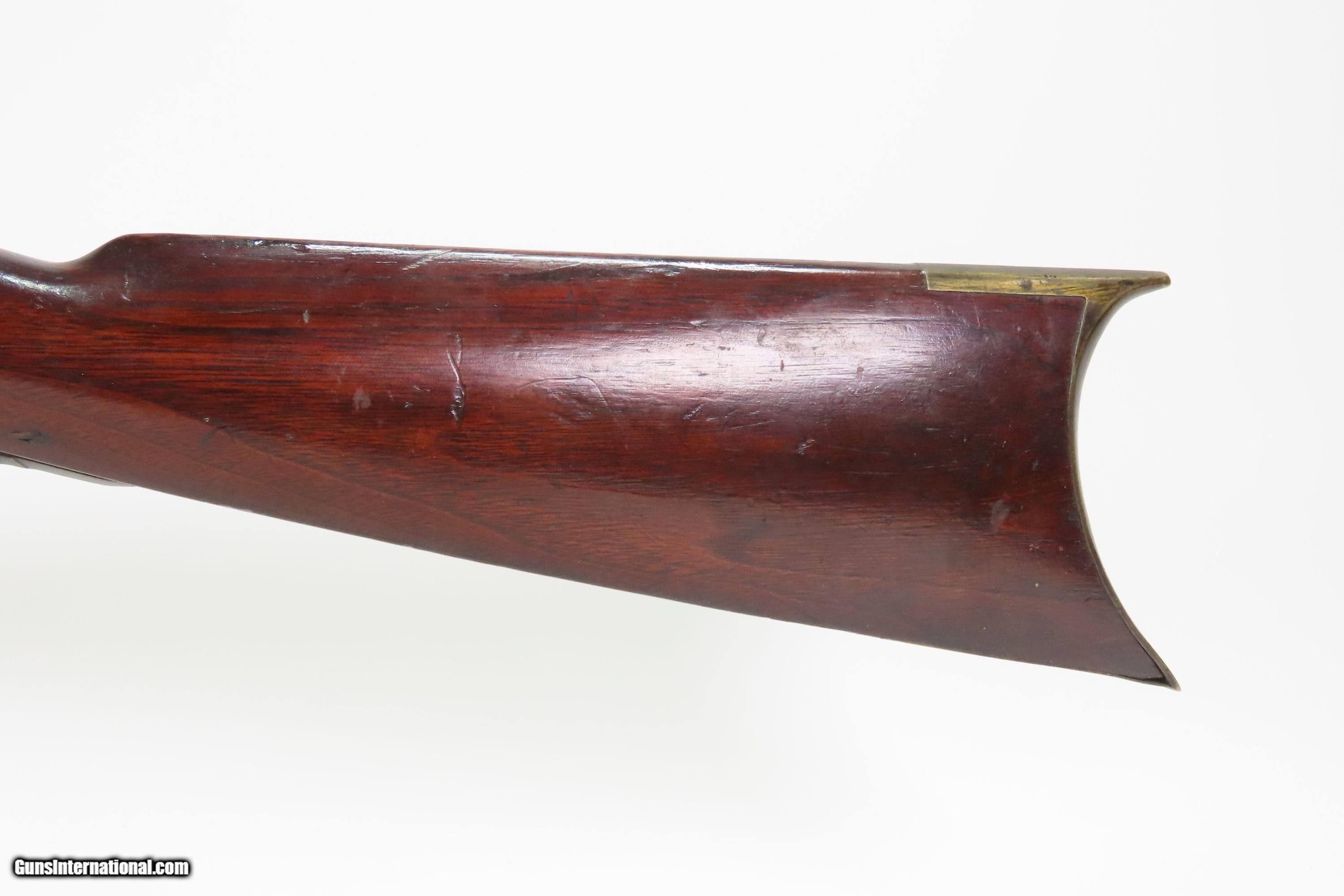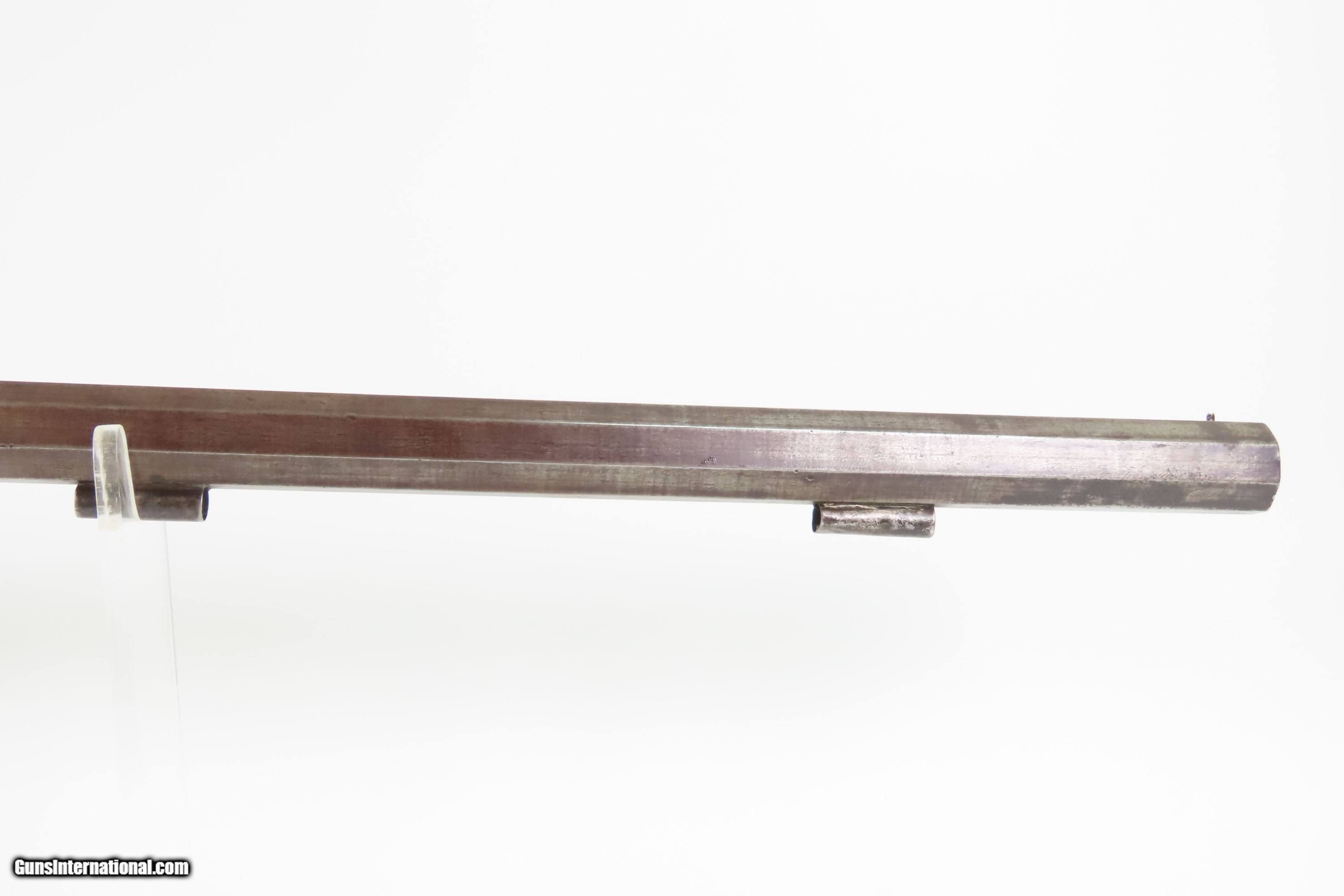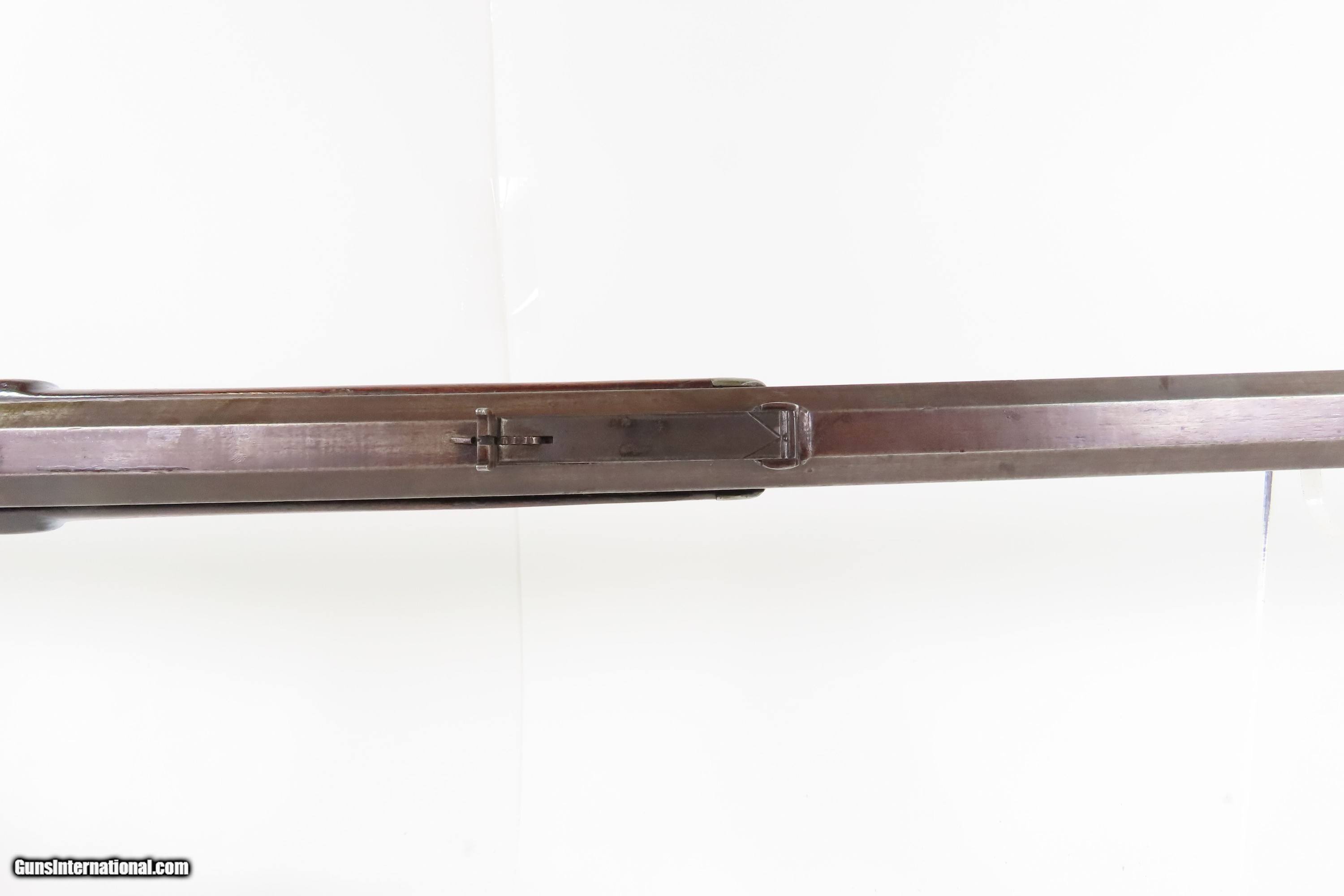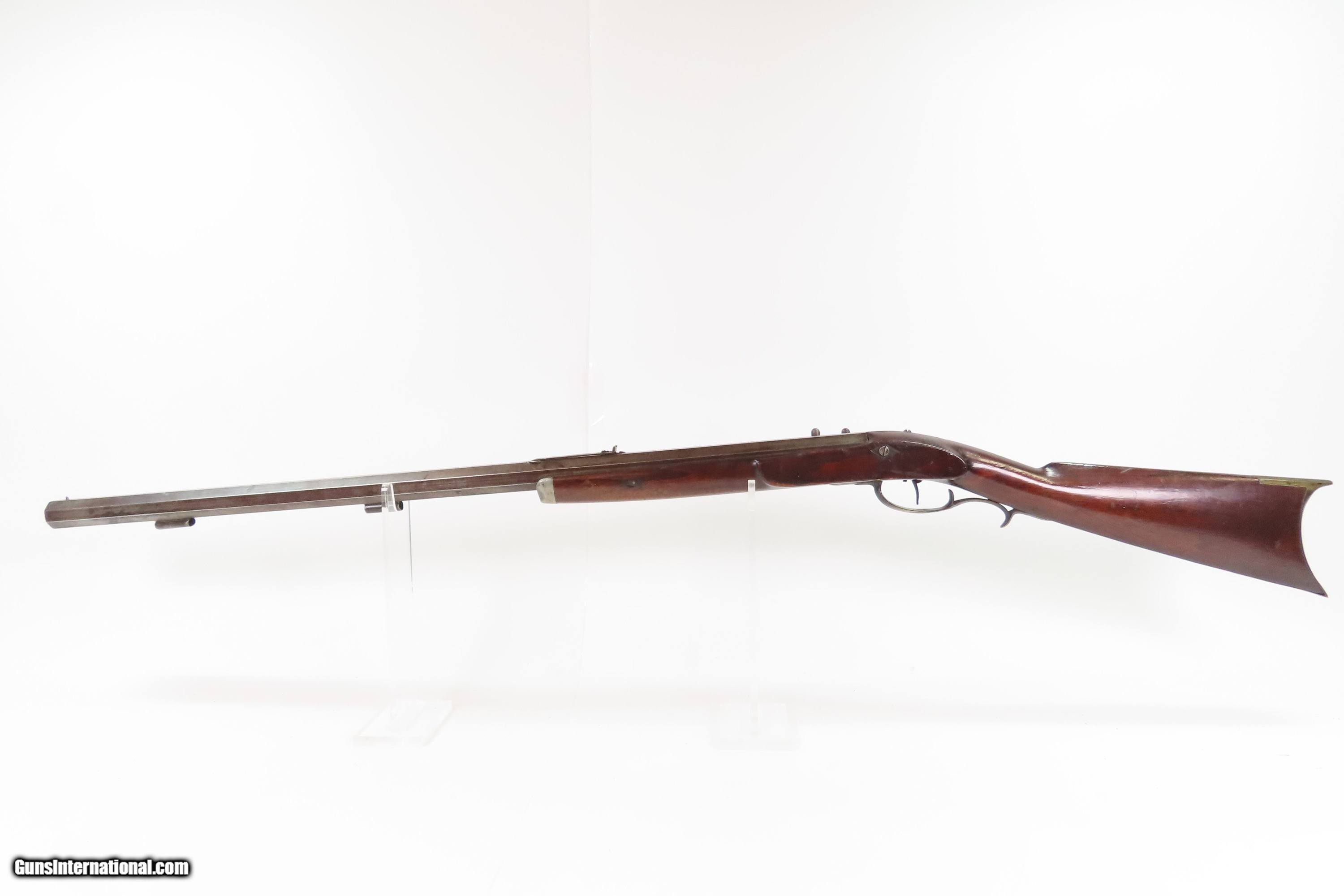 Description: SCARCE 1850s Antique SUPERPOSED LOAD Two Shot Percussion MULE EAR Rifle SINGLE BARREL with TWO SEPARATE IGNITION CHAMBERS Here we present an antique Mule Ear American Superposed Load Two Shot Half Stock Percussion Rifle made circa the mid-1800s. All the way back through pre-flintlock days, the pursuit for a repeating firearm was a concept on the mind of gun designers and innovators of the time. The goal was simply to develop a more efficient firearm that could allow the user to off as many shots as possible with minimum effort. A concept emerged during this period to load several loads of powder and ball into a single barrel instead of relying on multiple barrels. This concept called for several flash holes to be cut into the barrel at the location of each separate charge inside the barrel. The ignition would work separately from front to rear, with the goal being to launch the first load in the stack without setting off the other charges behind. These arms came to be known as "superposed" loaded guns. Several different versions of these “superposed” loaded firearms were developed throughout the black powder era. The overall condition is good. Mixed brown and gray patinas throughout. The stock is revarnished with a repair around the barrel pin. The short hammer doesn’t sit in the cocked position while the long hammer functions strongly. The bore retains shimmer with sharp rifling. Absent ramrod, both lugs are dented. Own the original! This is a legitimate antique and not a reproduction. Barrel is 30 inches. Caliber: .41 Percussion Overall condition as seen in photos. Very Fast. Very Safe. FREE SHIPPING WORLDWIDE. Delivered directly to your door by express mail! Guaranteed AUTHENTIC & Includes CERTIFICATE OF AUTHENTICITY. $1475 #256076 Antique: Yes Price: $1,475.00 Buy Now Pay with ![]() Contact Seller |
