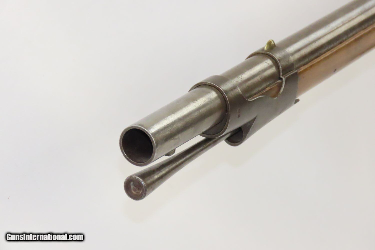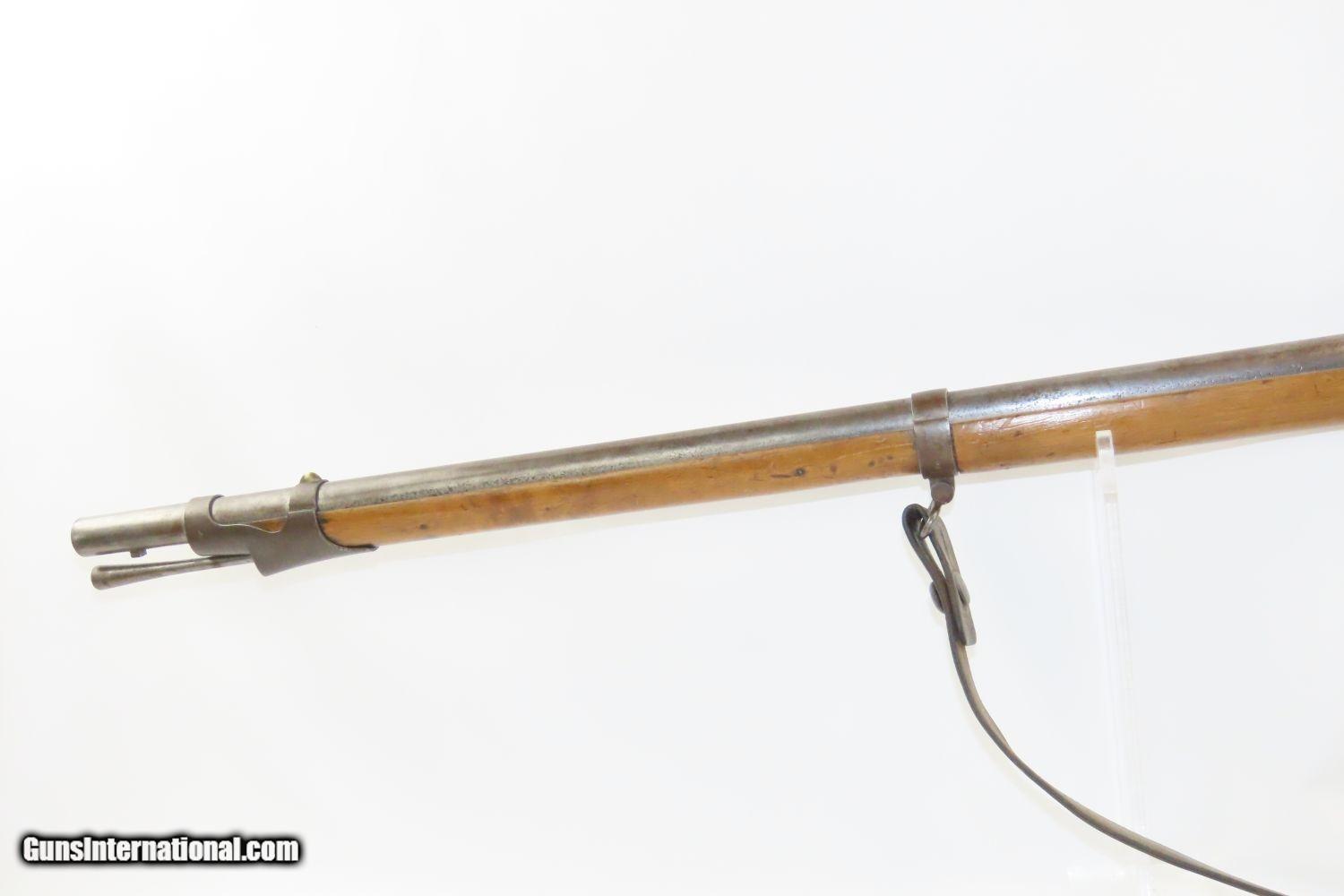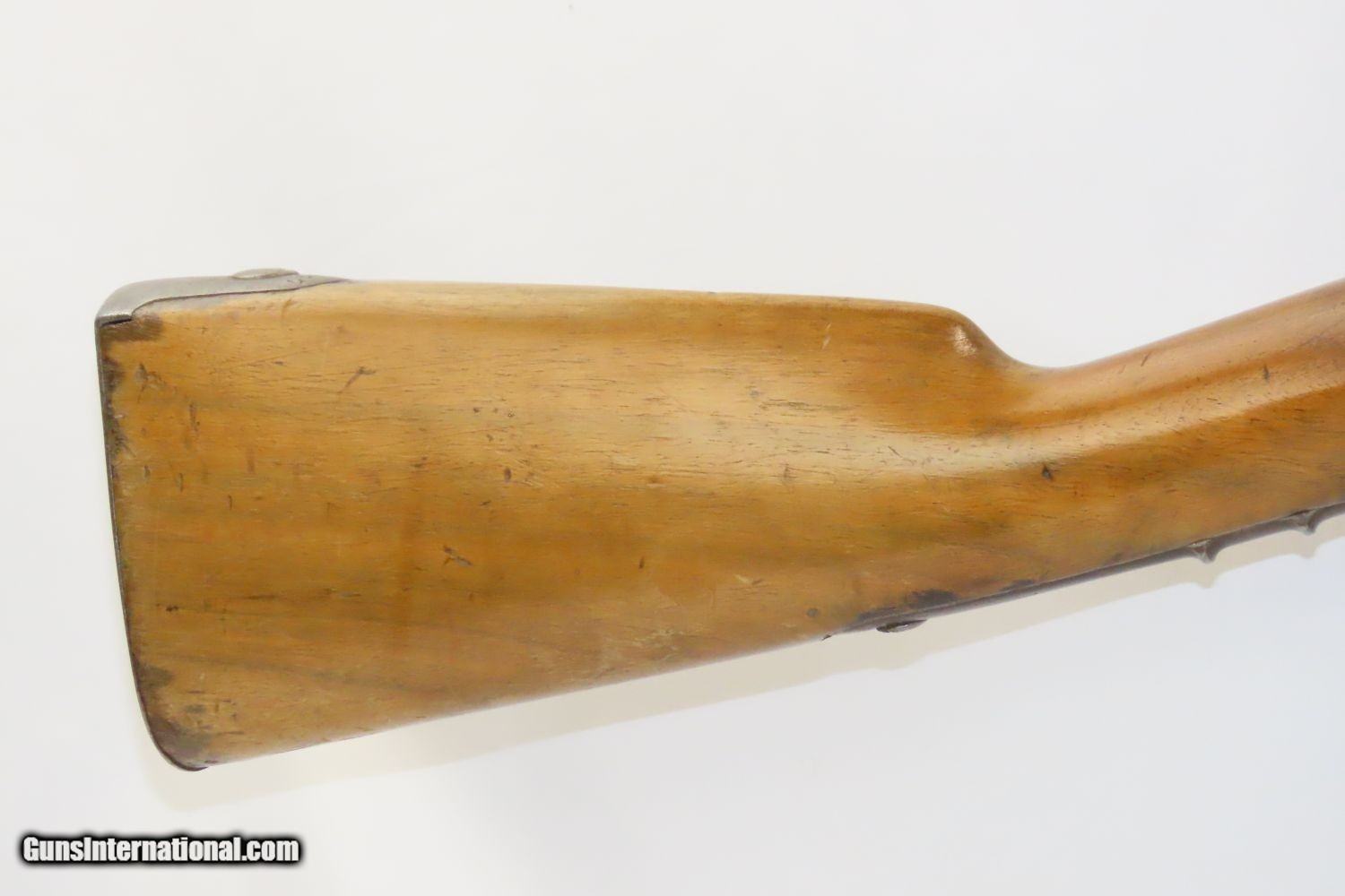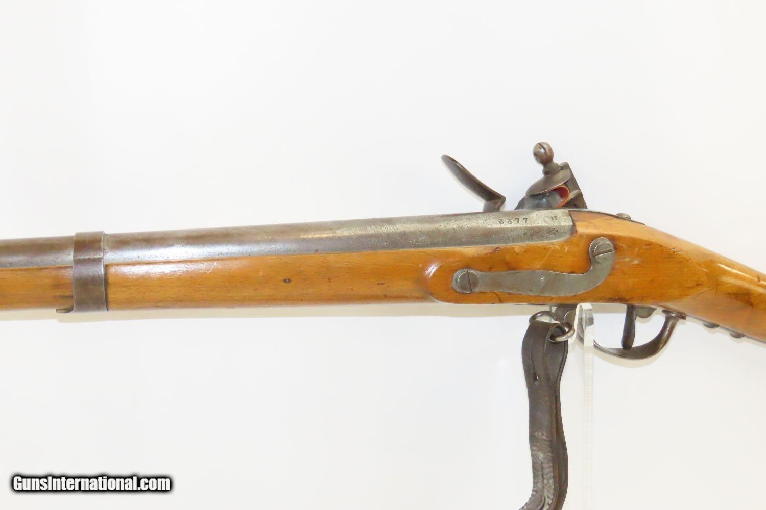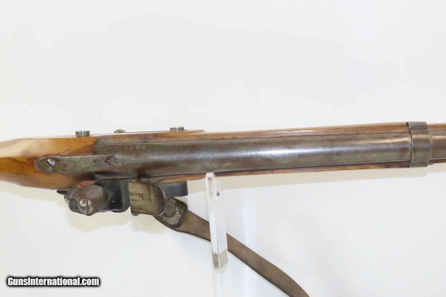 Description: SWISS Antique CHARLEVILLE 1777 FLINTLOCK .69 Caliber MILITARY Musket Based on the French Model 1777! Here we present an antique Swiss Flintlock Charleville 1777 Military Musket, manufactured circa the early to mid-1800s likely in Liege, Belgium. This .69 caliber musket is very similar to the French Charleville Model 1777 in both barrel length and caliber. The barrel has several hallmarks and stamps attributing to its Belgian craftsmanship. The Charleville musket was a .69 caliber standard French infantry musket used in the 18th and 19th centuries. It was made in 1717 and was last produced during the 1840s. However, it still saw limited use in conflicts through the mid-19th century. The overall condition is very good. This example includes a socket bayonet and sling, all in good shape. The action is strong, it will spark, and the bore is in good shape. The numbers match. The stock has a repaired cut under the middle barrel band. An “F” in a shield can be seen at the breech, the Swiss cantonal marking, and “BF” markings are engraved on the lock, the mark of the maker of the musket. This is a great example of a scarce musket! Own the original! This is a legitimate antique and not a reproduction. Barrel is 42-3/4 inches. Caliber: .69 Flintlock Overall condition as seen in photos. Very Fast. Very Safe. FREE SHIPPING WORLDWIDE. Delivered directly to your door by express mail! Guaranteed AUTHENTIC & Includes CERTIFICATE OF AUTHENTICITY. ancestryguns $2345 #201281 SOLD Antique: Yes |