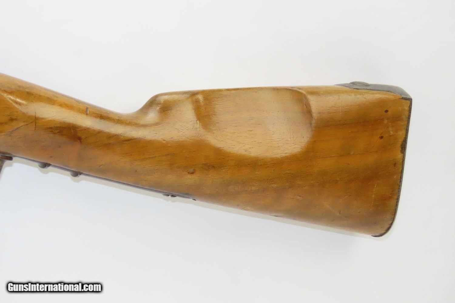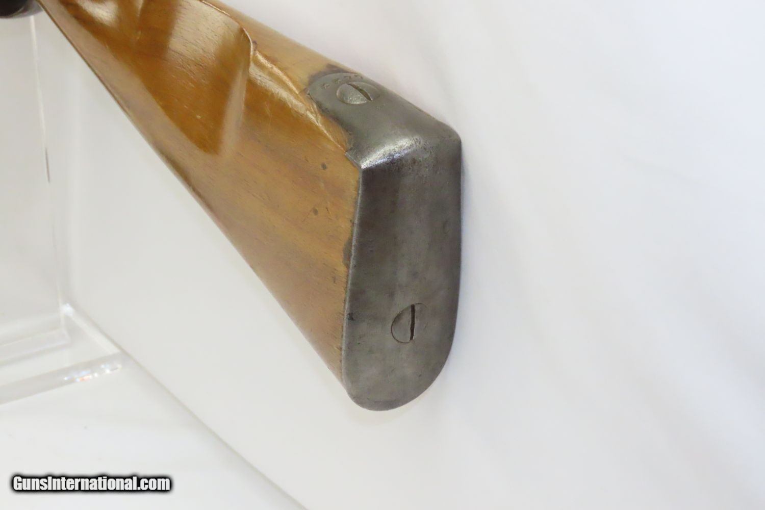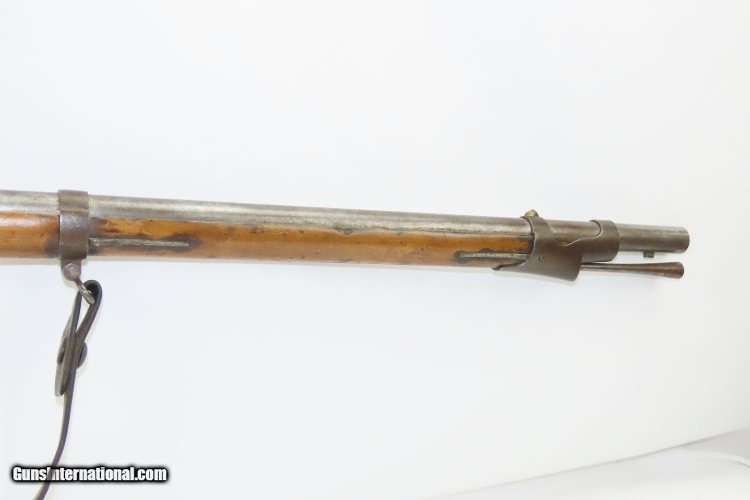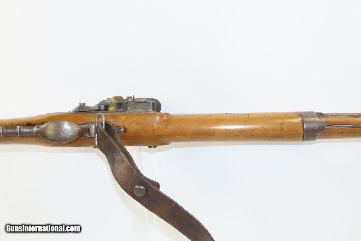 Description: SWISS Antique CHARLEVILLE 1777 FLINTLOCK .69 Caliber MILITARY Musket Based on the French Model 1777! Here we present an antique Swiss Flintlock Charleville 1777 Military Musket, manufactured circa the early to mid-1800s likely in Liege, Belgium. This .69 caliber musket is very similar to the French Charleville Model 1777 in both barrel length and caliber. The barrel has several hallmarks and stamps attributing to its Belgian craftsmanship. The Charleville musket was a .69 caliber standard French infantry musket used in the 18th and 19th centuries. It was made in 1717 and was last produced during the 1840s. However, it still saw limited use in conflicts through the mid-19th century. The overall condition is very good. This example includes a socket bayonet and sling, all in good shape. The action is strong, it will spark, and the bore is in good shape. The numbers match. The stock has a repaired cut under the middle barrel band. An “F” in a shield can be seen at the breech, the Swiss cantonal marking, and “BF” markings are engraved on the lock, the mark of the maker of the musket. This is a great example of a scarce musket! Own the original! This is a legitimate antique and not a reproduction. Barrel is 42-3/4 inches. Caliber: .69 Flintlock Overall condition as seen in photos. Very Fast. Very Safe. FREE SHIPPING WORLDWIDE. Delivered directly to your door by express mail! Guaranteed AUTHENTIC & Includes CERTIFICATE OF AUTHENTICITY. ancestryguns $2345 #201281 SOLD Antique: Yes |
