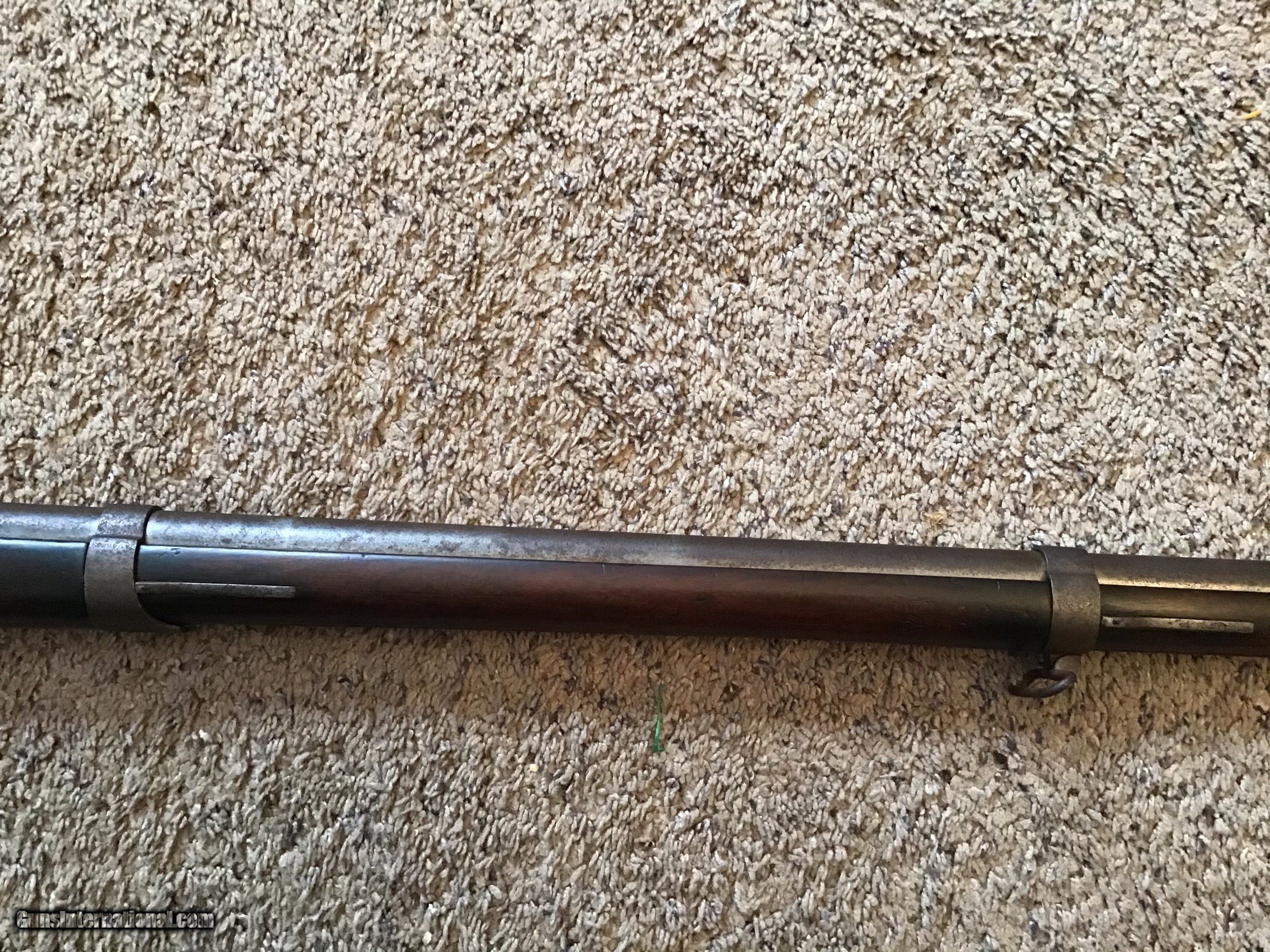 Description: On Hold Sale Pending. US Model 1816 Harpers Ferry musket originaly. Manufactured and converted by H&P (I believe) in the 1850s in good antique condition. Functions lock is marked US Harpers Ferry 1837. Full 3 band Walnut is in good original condition. The full length stock has a rear sight and bayonet lug. All metal parts have a grey brown color with scattered pitting mainly on the breach and hammer. The 69 caliber musket is complete with sling swivels and ramrod. please feel free to contact me with any questions. Shipping will be actual cost by insured priority mail with tracking. On Hold Sale Pending SOLD Antique: Yes Manufacturer: Harpers Ferry Model: 1816 |