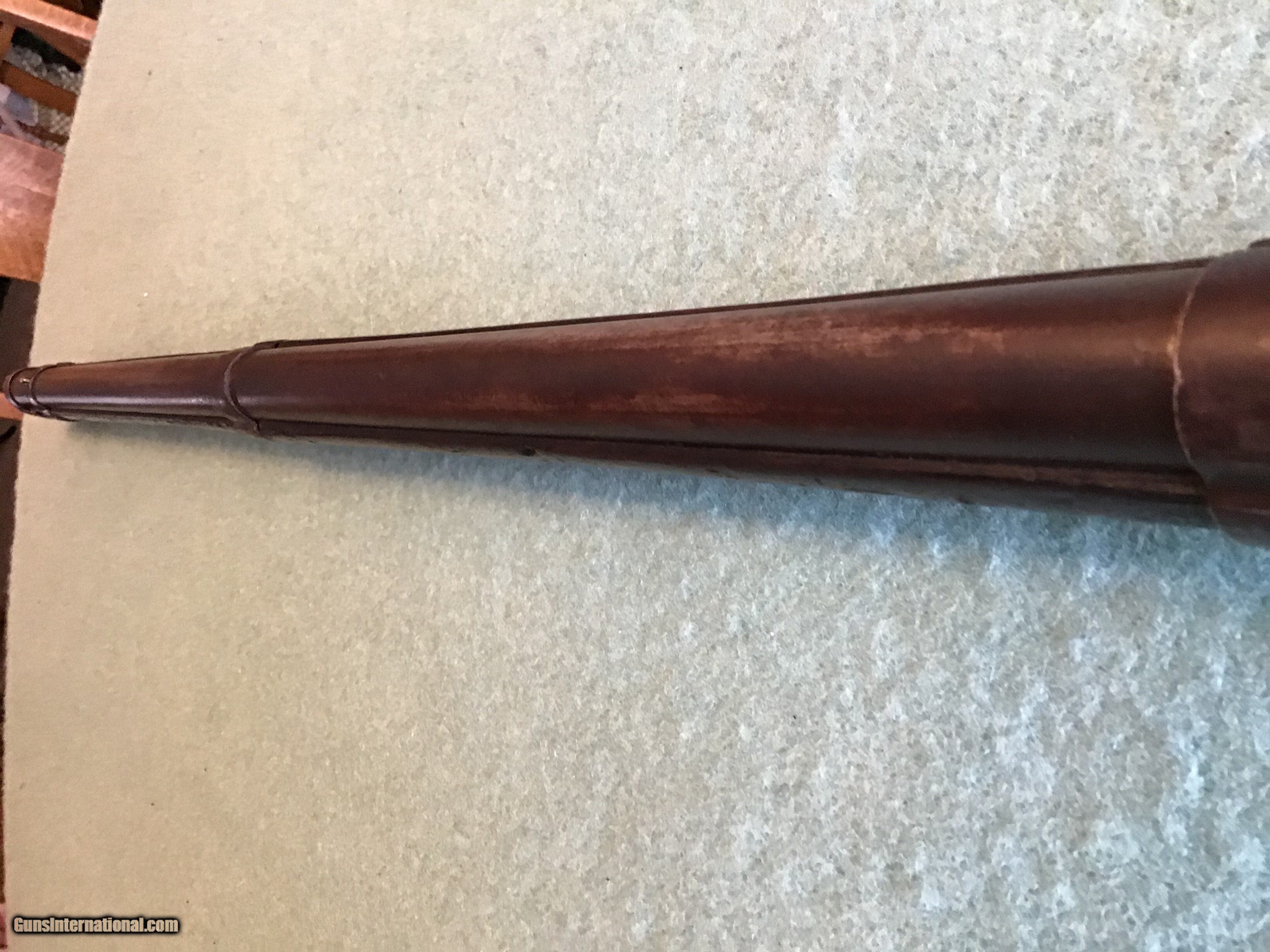 Description: On Hold Sale Pending. US Springfield Model 1812 Flintlock 69 caliber musket converted to percussion in the early 1850s, dated 1816 on the lock plate and but plate. Very good Full length 3 band dark walnut stock with the recess cheek piece on the left side of the stock and small rectangular barrel bands indicating the model of 1812. 38.5 inch barrel has been shortened long ago by approximately 3 inches and has a smooth dark brown patina. The percussion lock plate has a brown patina and is marked US Springfield and 1816. The but plate is marked 1816 with a brown patina. All 3 Correct barrel bands are present also with a dark brown patina. According to flaydermans this appears to be a type 2 of which 5-10,000 we're made between 1814 and 1816. Reasonably price for a hard to find old musket. Shipping will be actual cost approximately 50.00 by priority mail. Please feel free to call me if you have any questions 218-839-9272 or chriskobberdahl2gmail. SOLD Antique: Yes Manufacturer: Springfield Model: 1812 Serial Number: Na Barrel Length: 38.5” Condition: Very good Metal Condition: Very good Wood Condition: Very good Manufacture Date: 1816 |