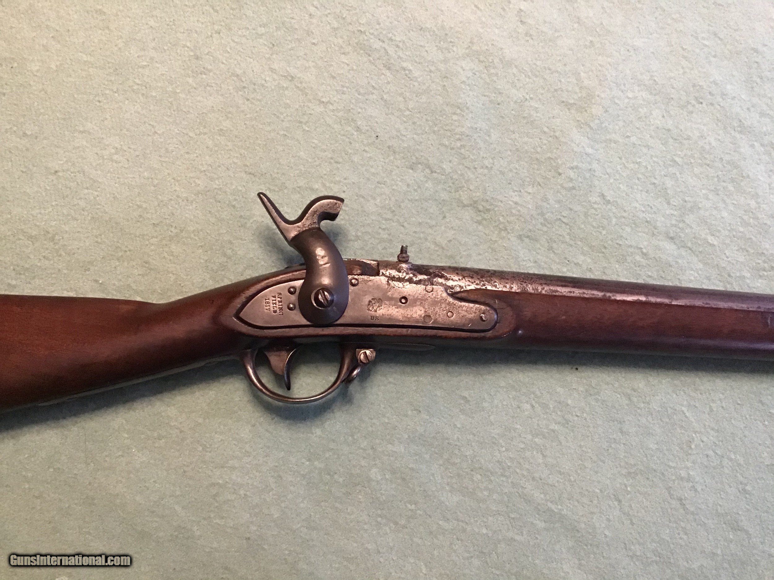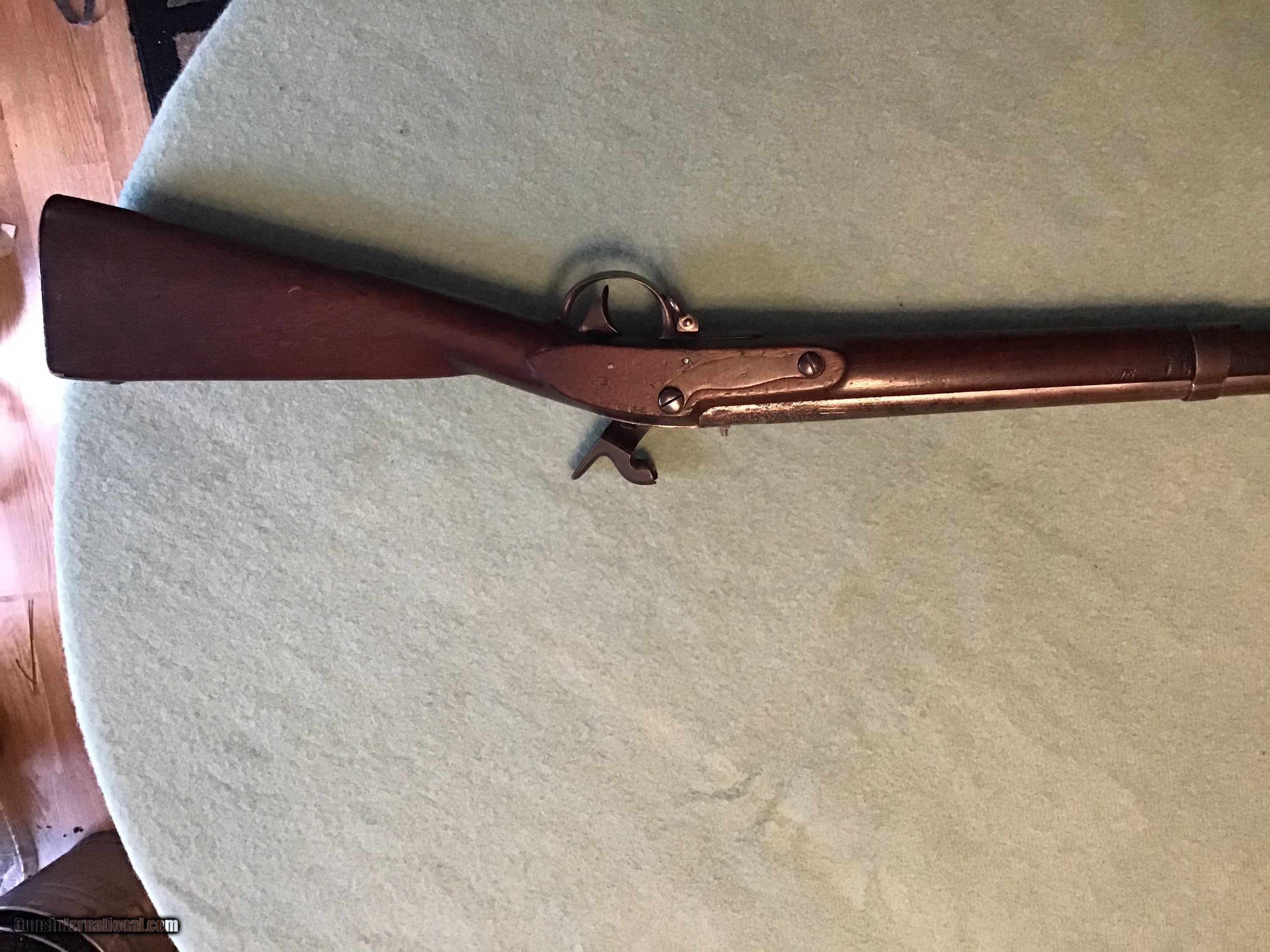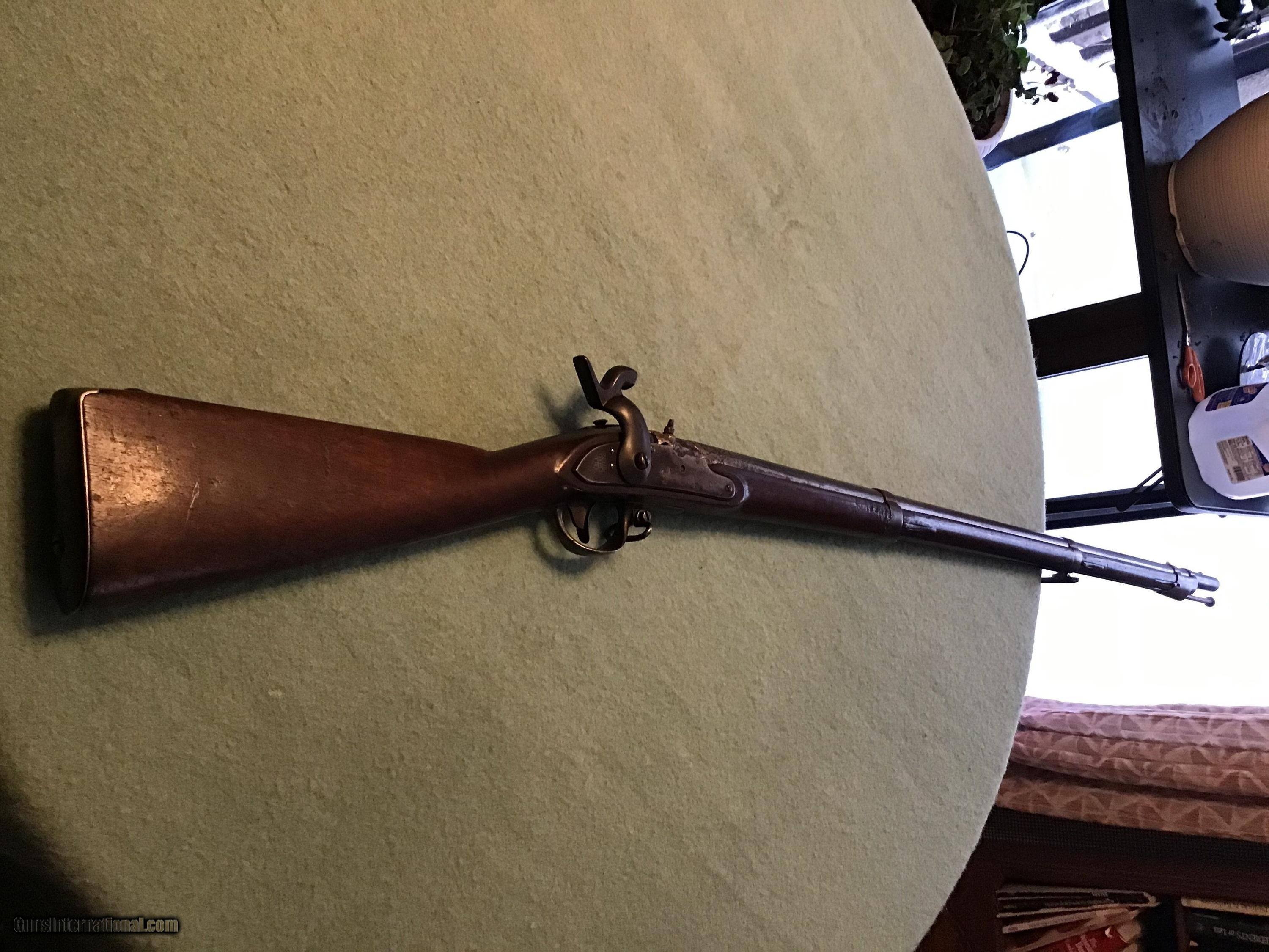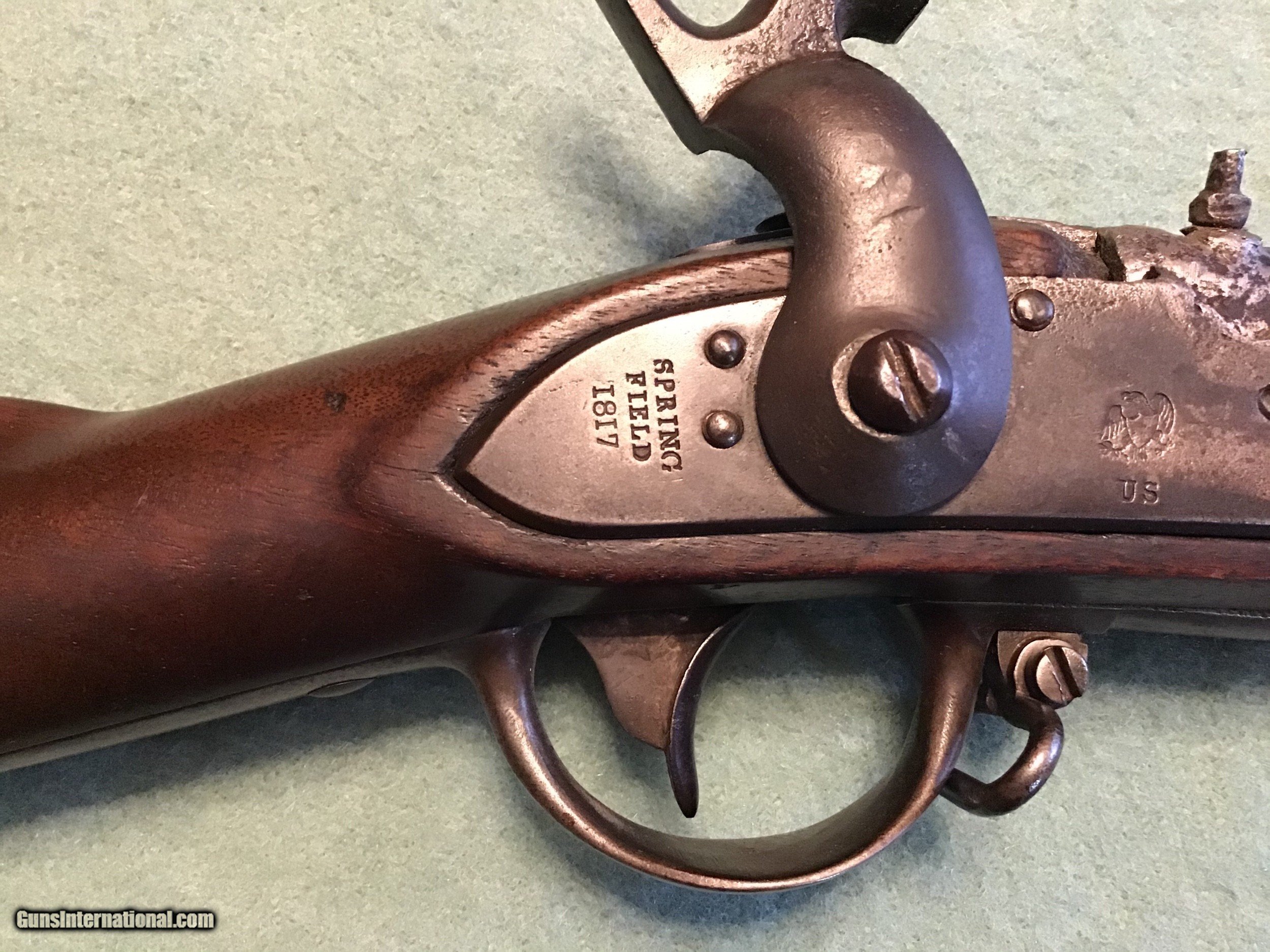 Description: On Hold Sale Pending Early US Springfield Model 1816 Springfield 69 caliber formerly a flintlock converted to percussion in the 1850's. The functioning lock is marked US Springfield and dated 1817. The full 3 band walnut stock is in very good condition with a cartouche on the left flat. The full length 42 inch barrel has a grey brown color with pitting at the nipple breach area. This early 1817 dated musket is in overall very good condition and is complete with sling swivels and original ramrod. Please feel free to contact me with any questions. Shipping will be actual cost by usps or ups. On Hold Sale Pending SOLD Antique: Yes Manufacturer: US Springfield Model: 1816 Barrel Length: 42” |