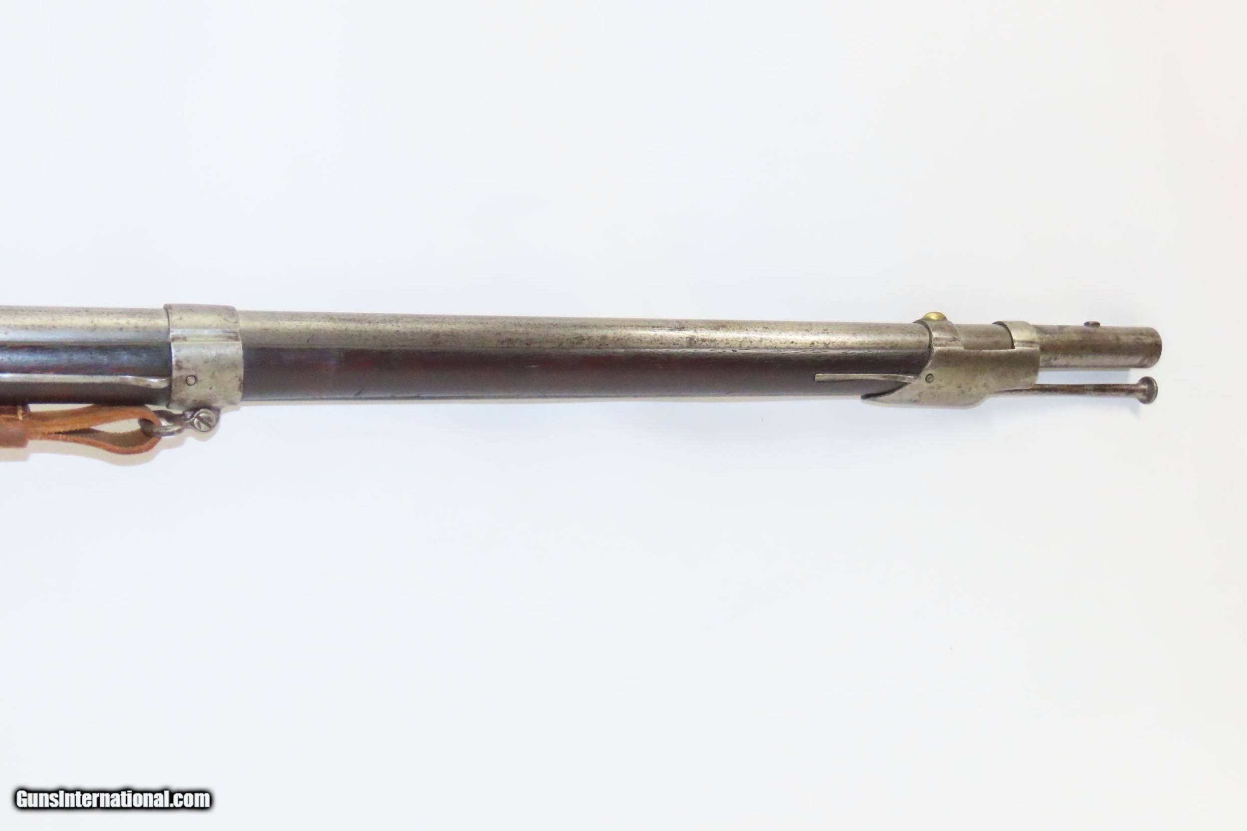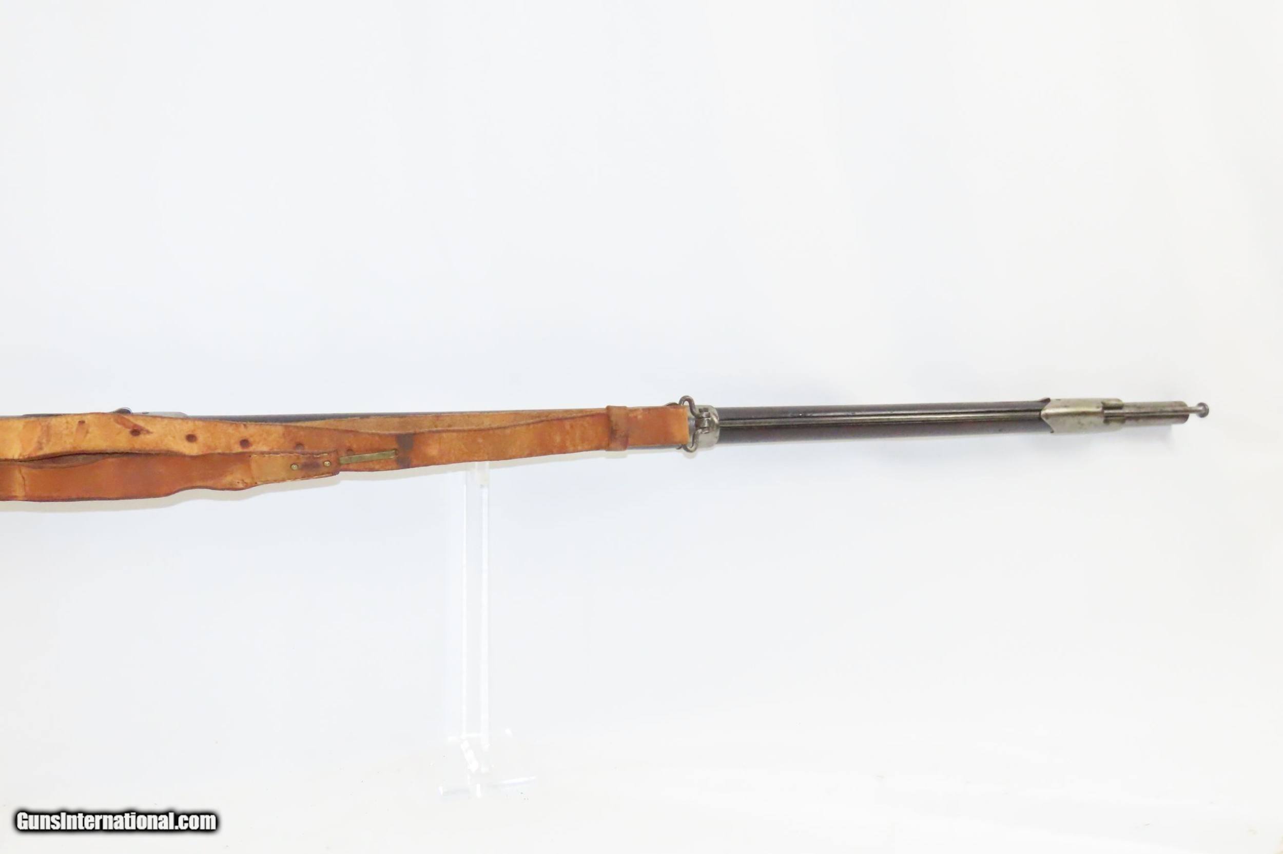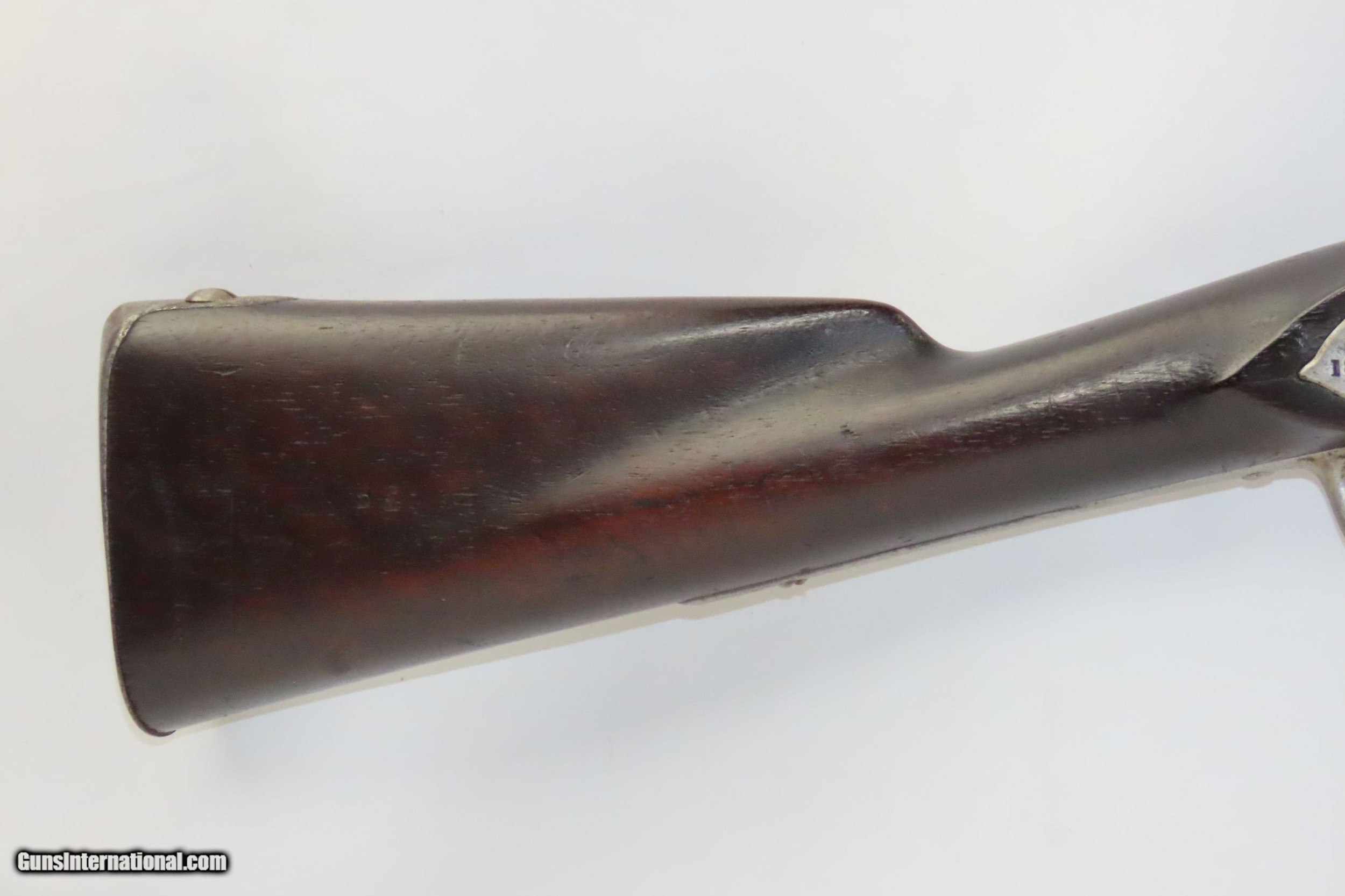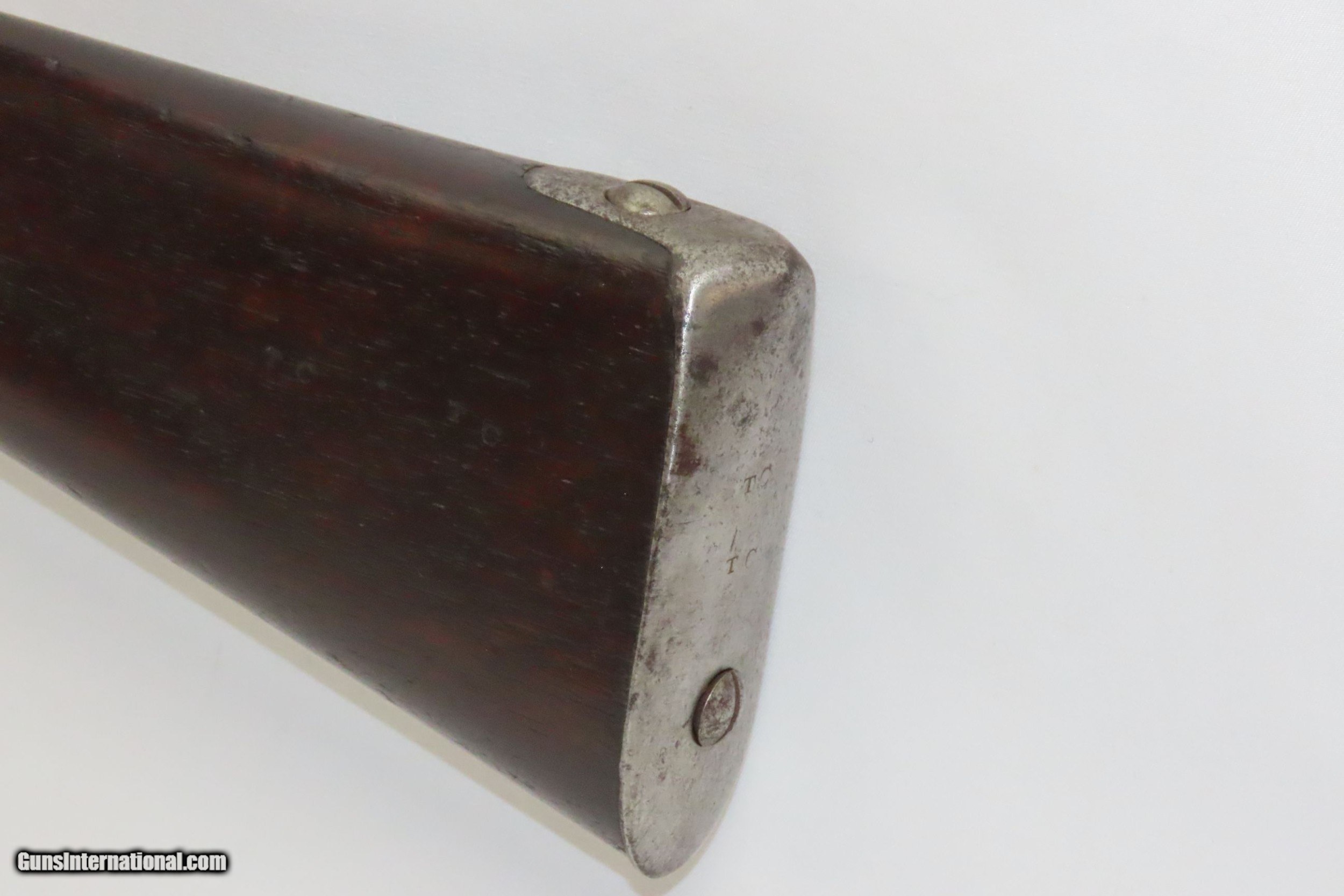 Description: WAR of 1812 Era U.S. Contract WATERS Model 1808 FLINTLOCK Musket Musket Made in Sutton, Massachusetts Circa 1812 Here we present an antique Waters & Co. Model 1808 Flintlock Musket, manufactured circa 1812 in Sutton, Massachusetts from the lot of 4,270 Springfield Armory pattern muskets manufactured by Elijah and Asa Waters. Waters was one of 19 gunmakers contracted to manufacture the Model 1808. They were contracted to manufacture 5,000 muskets based on the Springfield Armory version (rather than the Harpers Ferry version) in total but fell short of the complete order. The barrel, lock and iron furniture were finished bright. There is a bayonet lug mounted on the underside of the barrel. The lower sling swivel is mounted on a stud ahead of the trigger guard and the trigger guard has pointed finials. The barrel bands are secured by springs behind the bands. Mounted with a full one-piece black walnut stock. This exact musket is featured on page 170 of American Military Shoulder Arms, Vol. 2 by George Moller. It would have been made at the beginning of the War of 1812, a war the young United States fought against Great Britain until 1815. The overall condition is near fine. Strong action. The bore is in good shape and remains clear and smooth. Solid stock (stable crack forward of the lock). “1812” and “SUTTON” are engraved on the lock. Clear cartouche on the left wrist. The initials “TC” are stamped throughout. “US” stamped barrel with view and proof marks. The leather sling is in good shape. Own the original! This is a legitimate antique and not a reproduction. Barrel is 44-1/2 inches. Caliber: .69 Flintlock Overall condition as seen in photos. Very Fast. Very Safe. FREE SHIPPING WORLDWIDE. Delivered directly to your door by express mail! Guaranteed AUTHENTIC & Includes CERTIFICATE OF AUTHENTICITY. ancestryguns $4815 #217028 SOLD Antique: Yes |