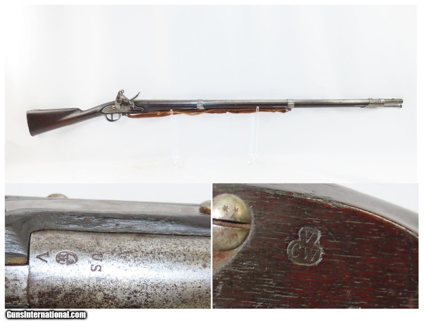 Description: WAR of 1812 Era U.S. Contract WATERS Model 1808 FLINTLOCK Musket Musket Made in Sutton, Massachusetts Circa 1812 Here we present an antique Waters & Co. Model 1808 Flintlock Musket, manufactured circa 1812 in Sutton, Massachusetts from the lot of 4,270 Springfield Armory pattern muskets manufactured by Elijah and Asa Waters. Waters was one of 19 gunmakers contracted to manufacture the Model 1808. They were contracted to manufacture 5,000 muskets based on the Springfield Armory version (rather than the Harpers Ferry version) in total but fell short of the complete order. The barrel, lock and iron furniture were finished bright. There is a bayonet lug mounted on the underside of the barrel. The lower sling swivel is mounted on a stud ahead of the trigger guard and the trigger guard has pointed finials. The barrel bands are secured by springs behind the bands. Mounted with a full one-piece black walnut stock. This exact musket is featured on page 170 of American Military Shoulder Arms, Vol. 2 by George Moller. It would have been made at the beginning of the War of 1812, a war the young United States fought against Great Britain until 1815. The overall condition is near fine. Strong action. The bore is in good shape and remains clear and smooth. Solid stock (stable crack forward of the lock). “1812” and “SUTTON” are engraved on the lock. Clear cartouche on the left wrist. The initials “TC” are stamped throughout. “US” stamped barrel with view and proof marks. The leather sling is in good shape. Own the original! This is a legitimate antique and not a reproduction. Barrel is 44-1/2 inches. Caliber: .69 Flintlock Overall condition as seen in photos. Very Fast. Very Safe. FREE SHIPPING WORLDWIDE. Delivered directly to your door by express mail! Guaranteed AUTHENTIC & Includes CERTIFICATE OF AUTHENTICITY. ancestryguns $4815 #217028 SOLD Antique: Yes