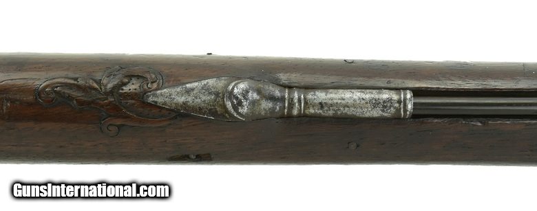 Description: Blunderbus Carbine by Carbo Barcelona. Stockel lists Carbo as active in 1675 in Ripoll. Ripoll, Catalonia is approximately 50 miles from Barcelona, so it is certainly possible carbo worked in both cities. Barrel length 19” and overall 34 ½”. The muzzle flares 2 ½”. Barrel has silver inlays and gold marker and city sinks. The stock has fine floral carving. The brideled pan is very well made as is the entire gun. Barrel is two stage with fine decoration. Fine Spanish blunderbuss carbine and seldom seen in this configuration. SOLD |