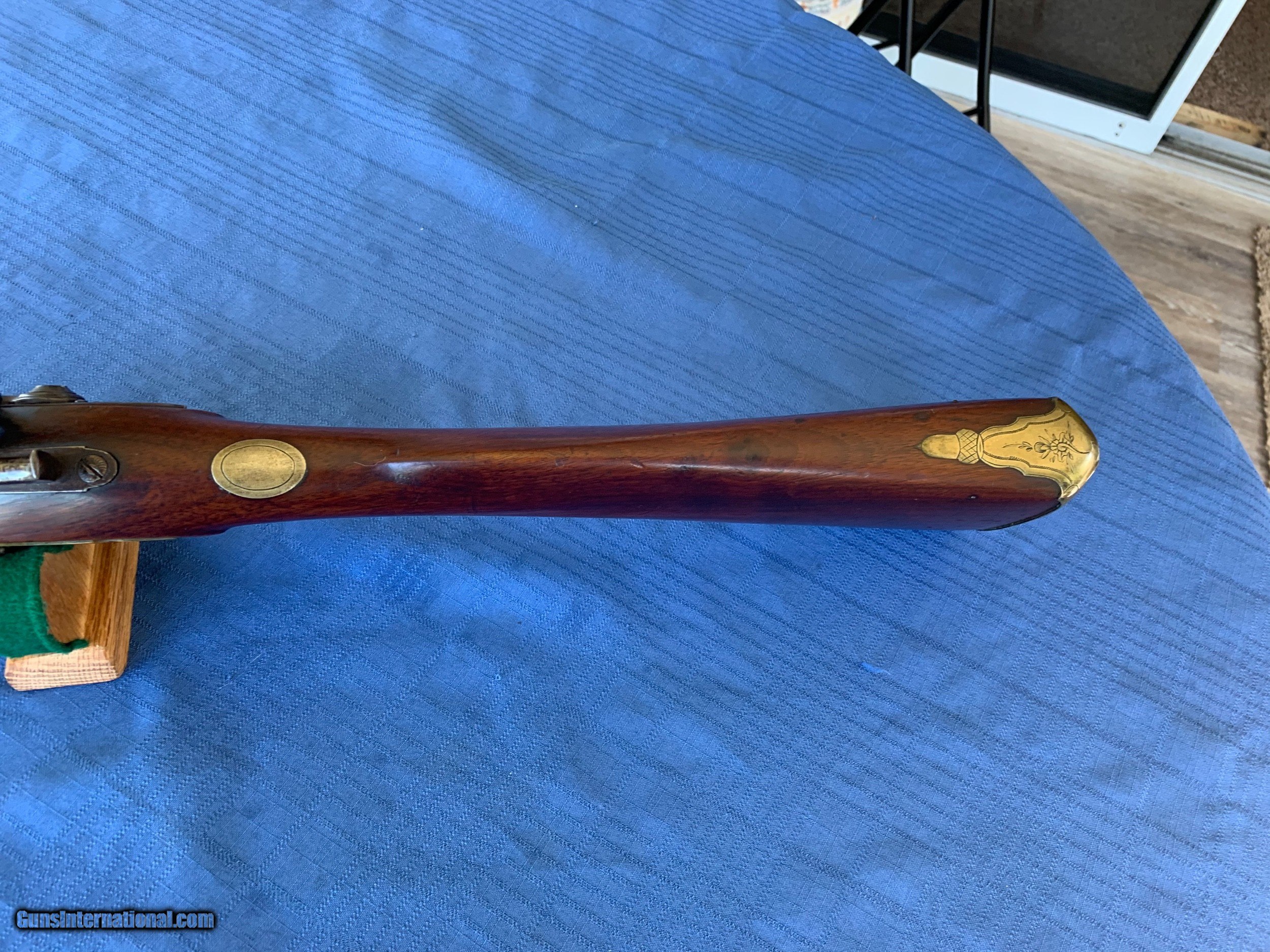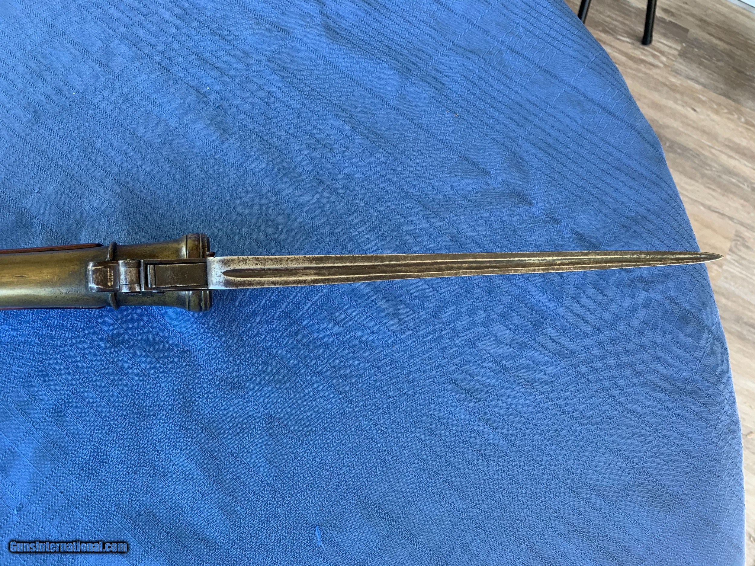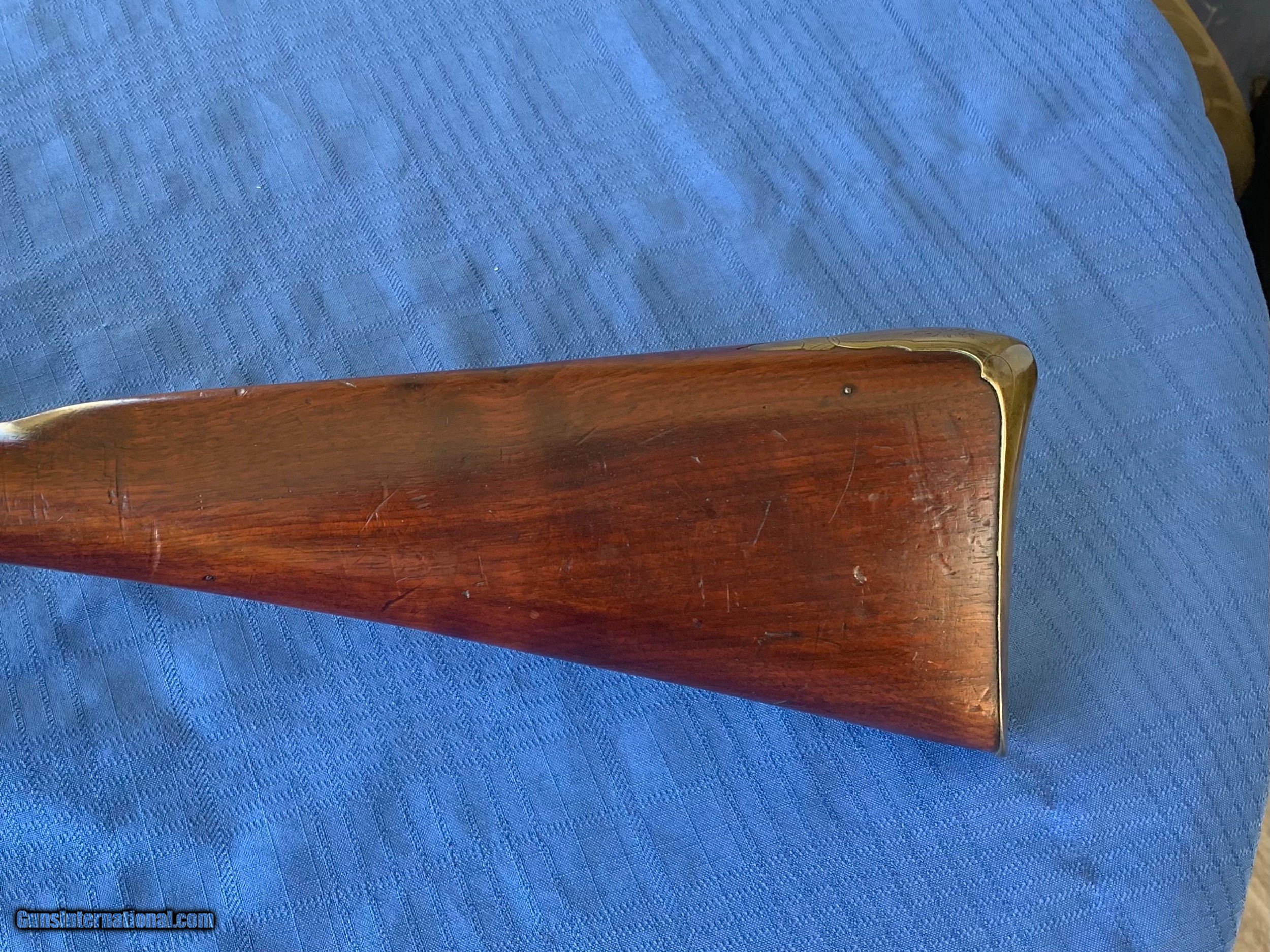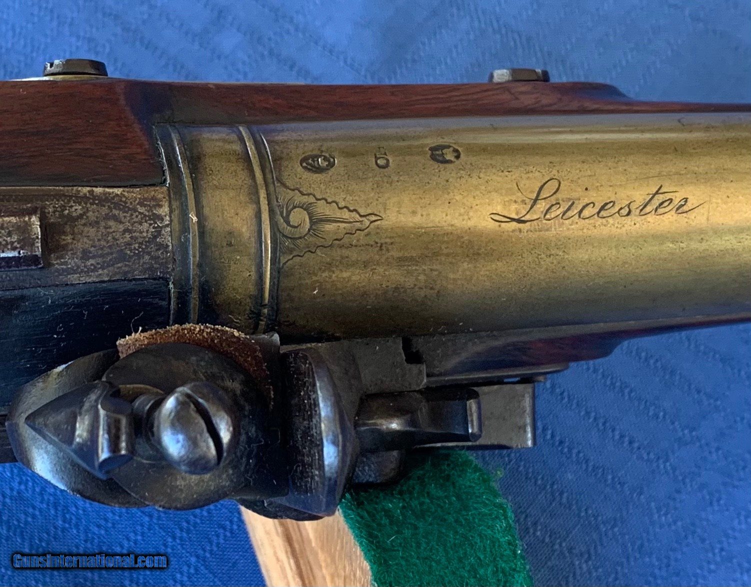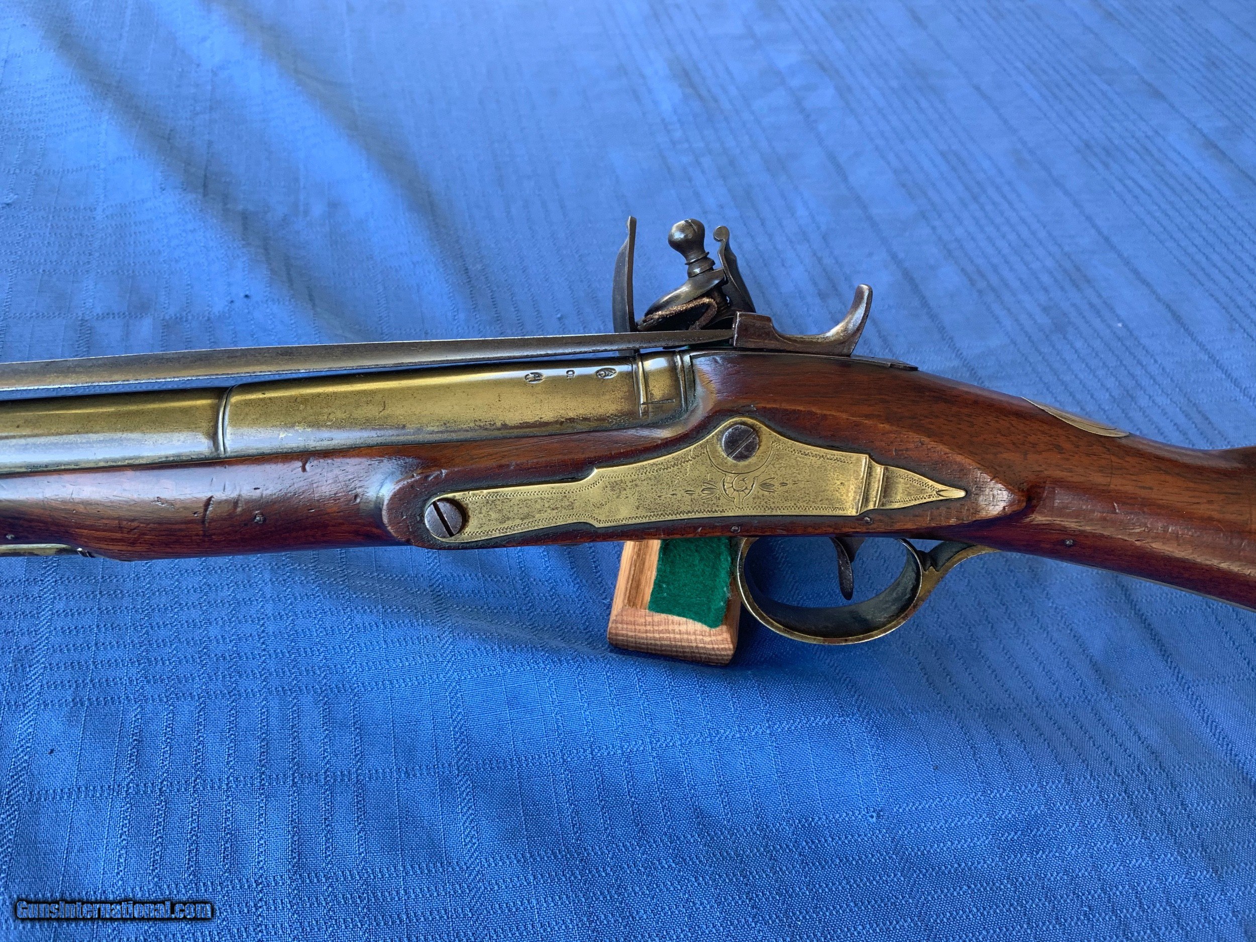 Description: Blunderbuss Flintlock rifle with large blade . Gun is Apx. 36" overall. Stunning Example of a1700's Blunderbuss with blade . Lock is marked Dixon . Barrel is proofed and marked Leicester . Barrel is Brass . Blade is steel. Walnut Burl wood stocks are in Excellent Plus Condition . Blade is in working order and locks into place . Gun is fully engraved. Engraving is crisp . Bore and mechanics are Excellent Plus Condition. Flint lock is in excellent working order . Gun is 100 percent correct and original ! Awsome Example of a rare 1700's Blunderbuss! Please review my photos and email me with any questions ? 3 day inspection as allways. Thank you for looking Little Jo SOLD Antique: Yes |