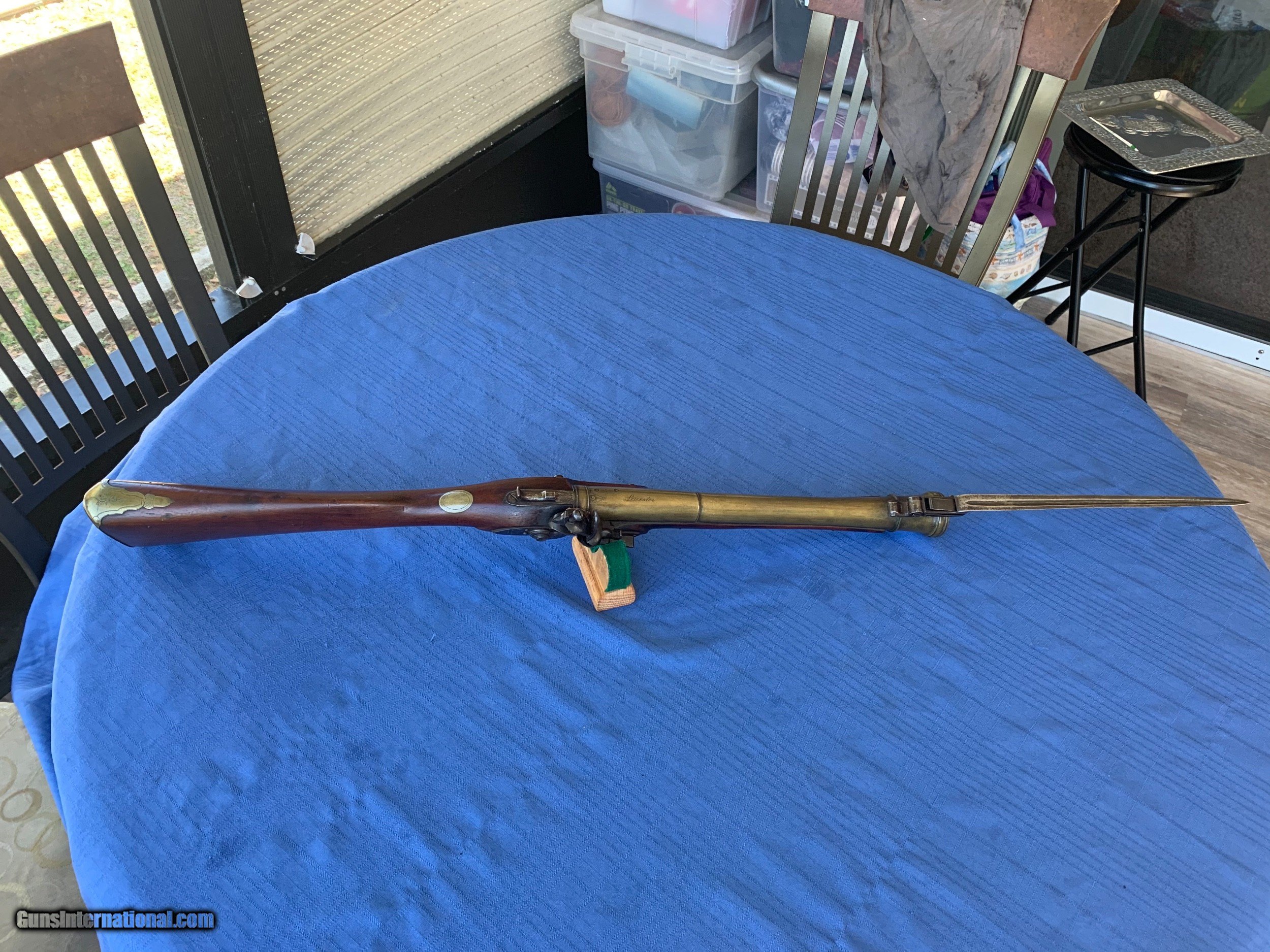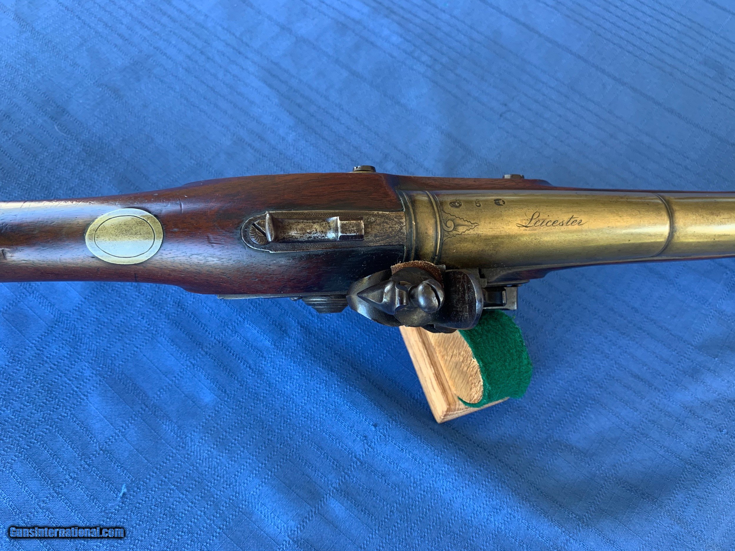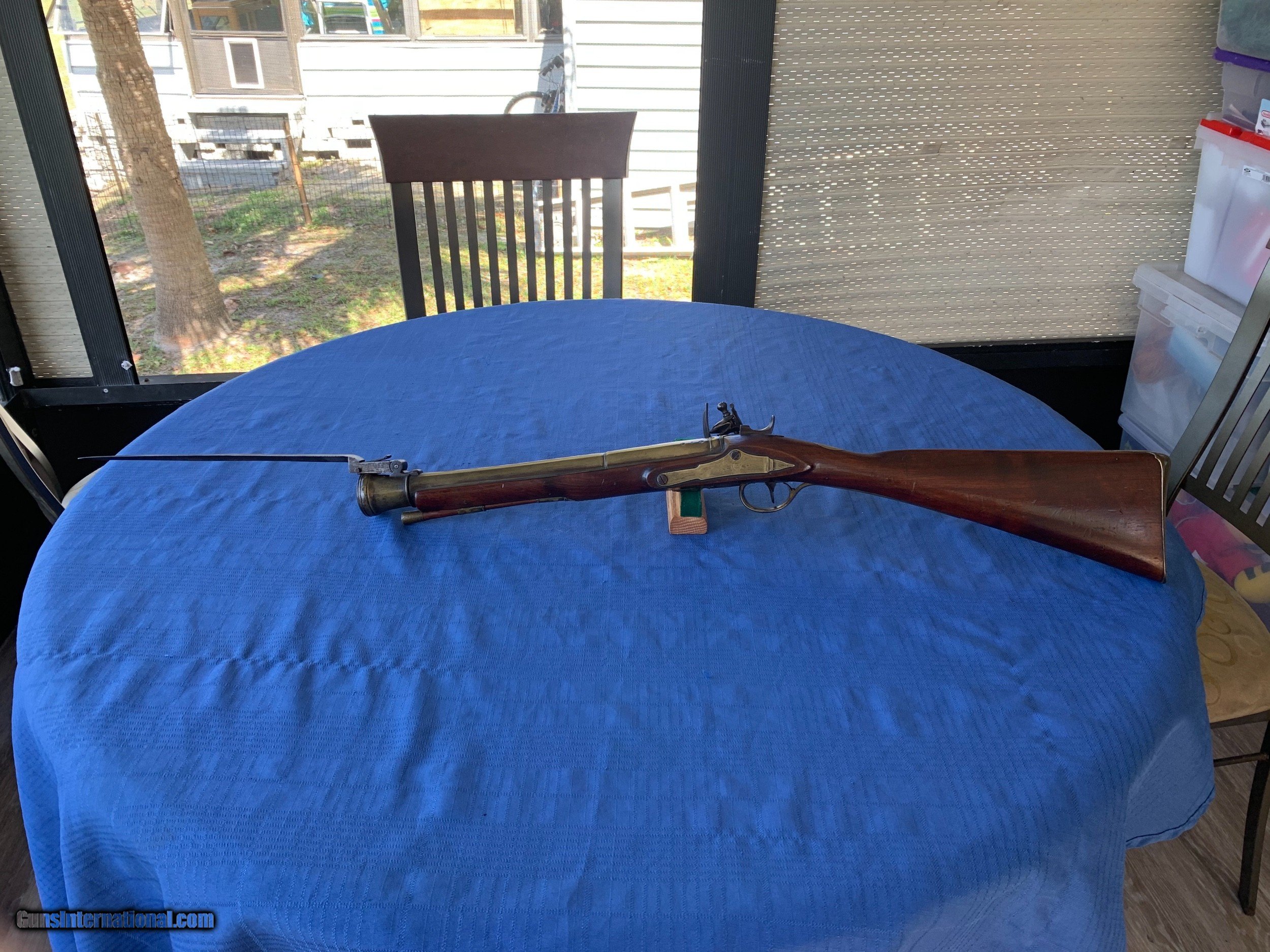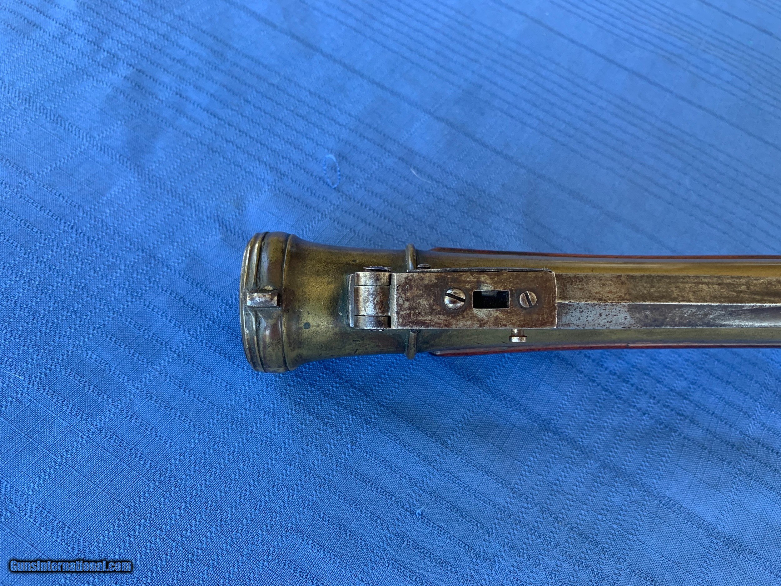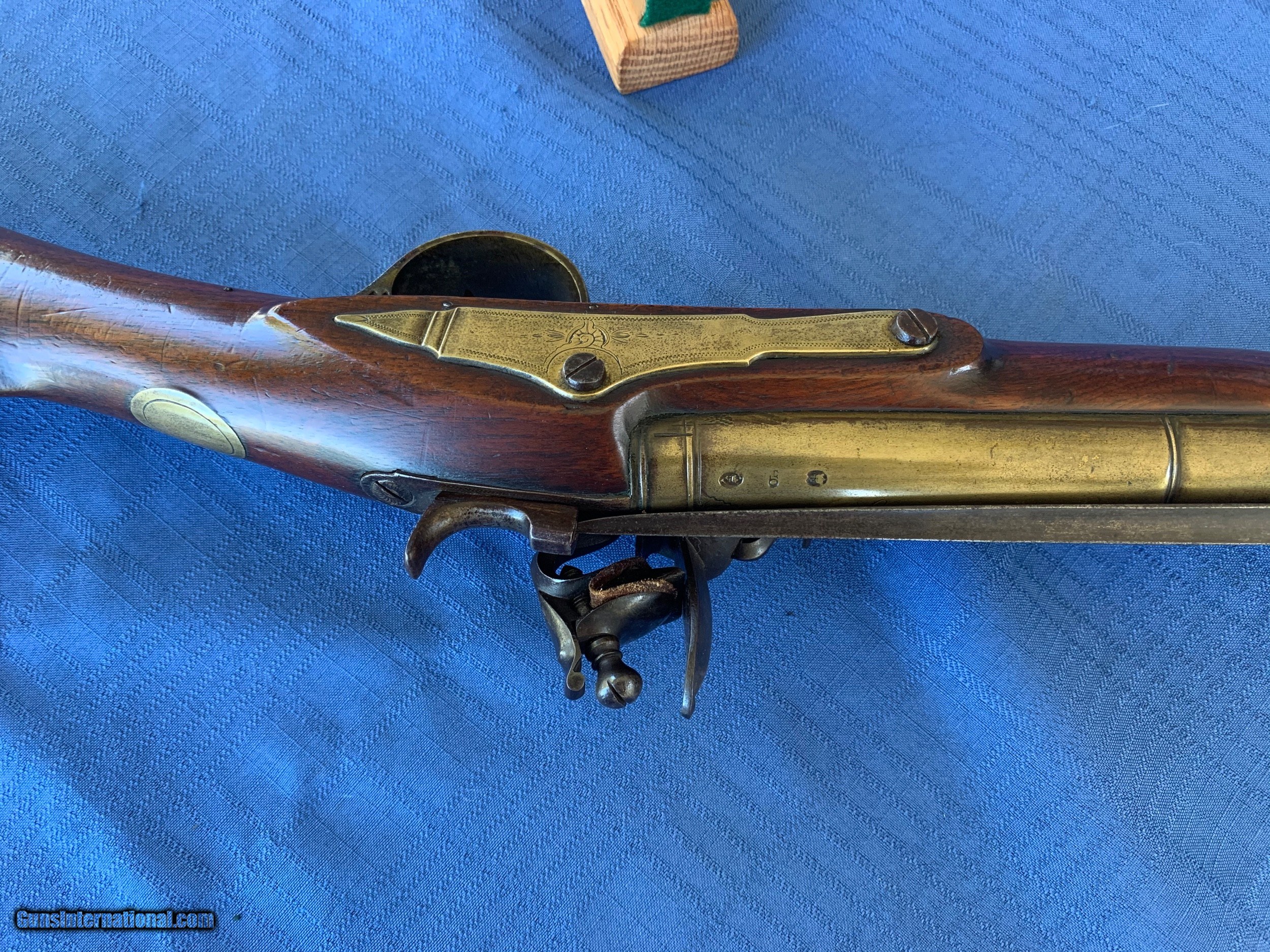 Description: Blunderbuss Flintlock rifle with large blade . Gun is Apx. 36" overall. Stunning Example of a1700's Blunderbuss with blade . Lock is marked Dixon . Barrel is proofed and marked Leicester . Barrel is Brass . Blade is steel. Walnut Burl wood stocks are in Excellent Plus Condition . Blade is in working order and locks into place . Gun is fully engraved. Engraving is crisp . Bore and mechanics are Excellent Plus Condition. Flint lock is in excellent working order . Gun is 100 percent correct and original ! Awsome Example of a rare 1700's Blunderbuss! Please review my photos and email me with any questions ? 3 day inspection as allways. Thank you for looking Little Jo SOLD Antique: Yes |