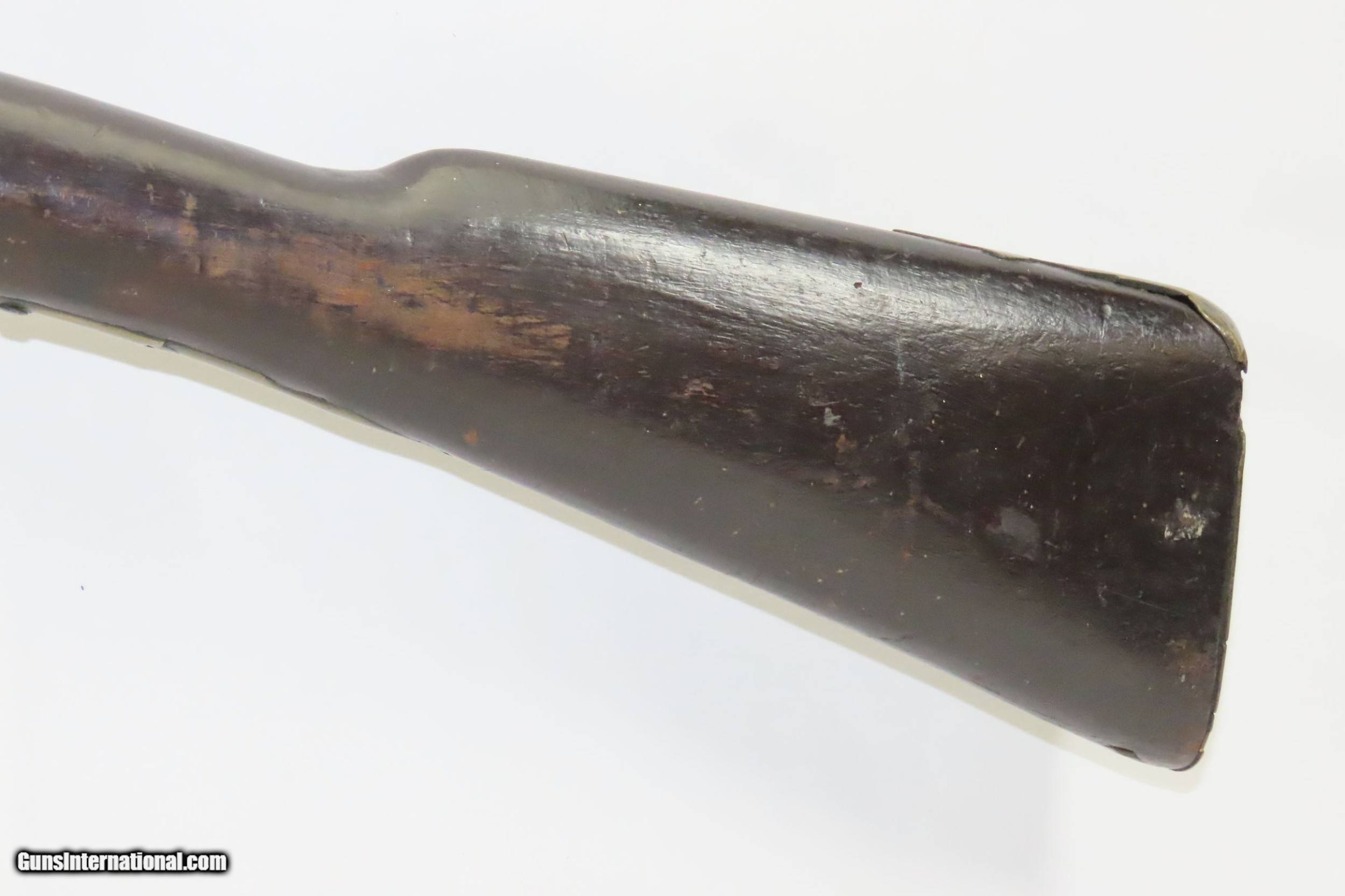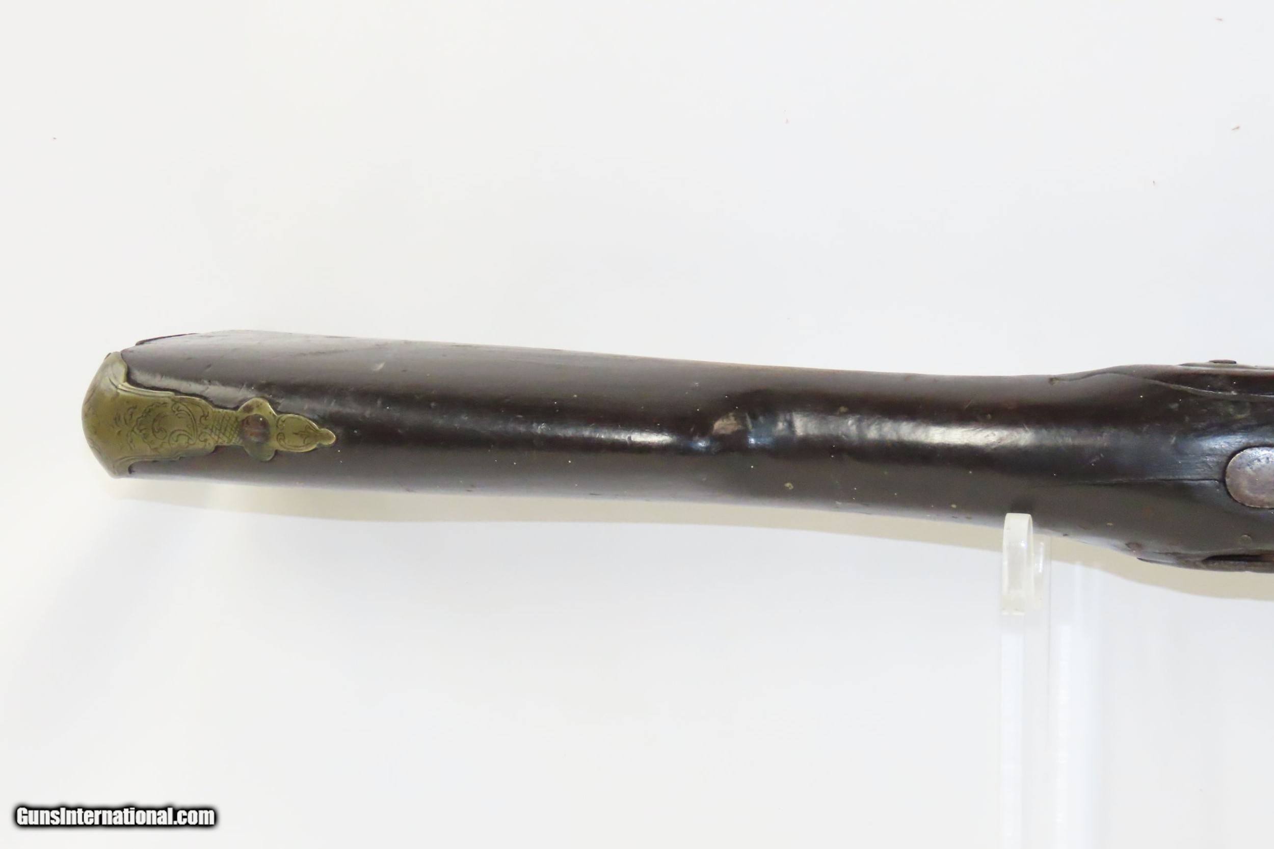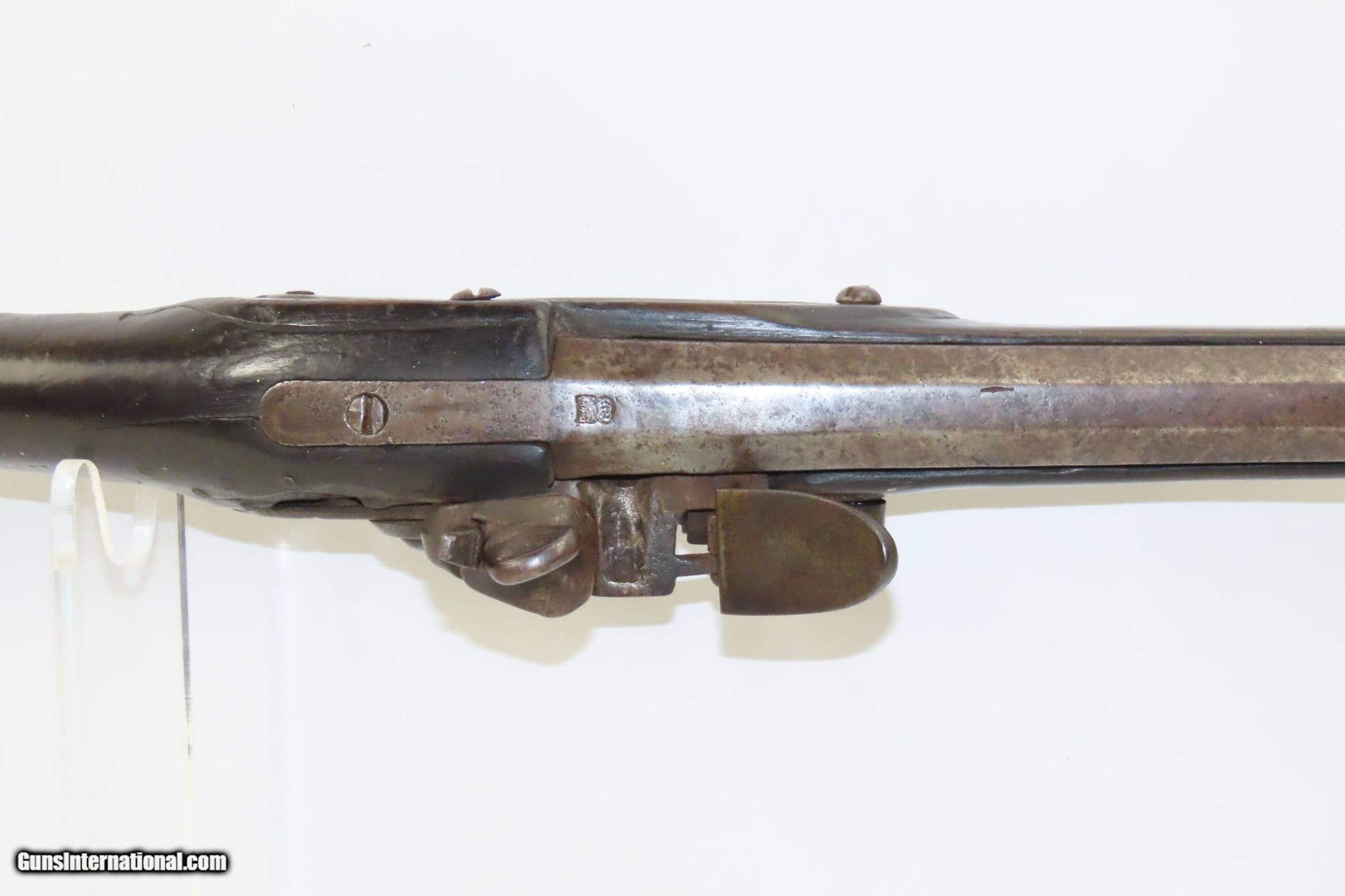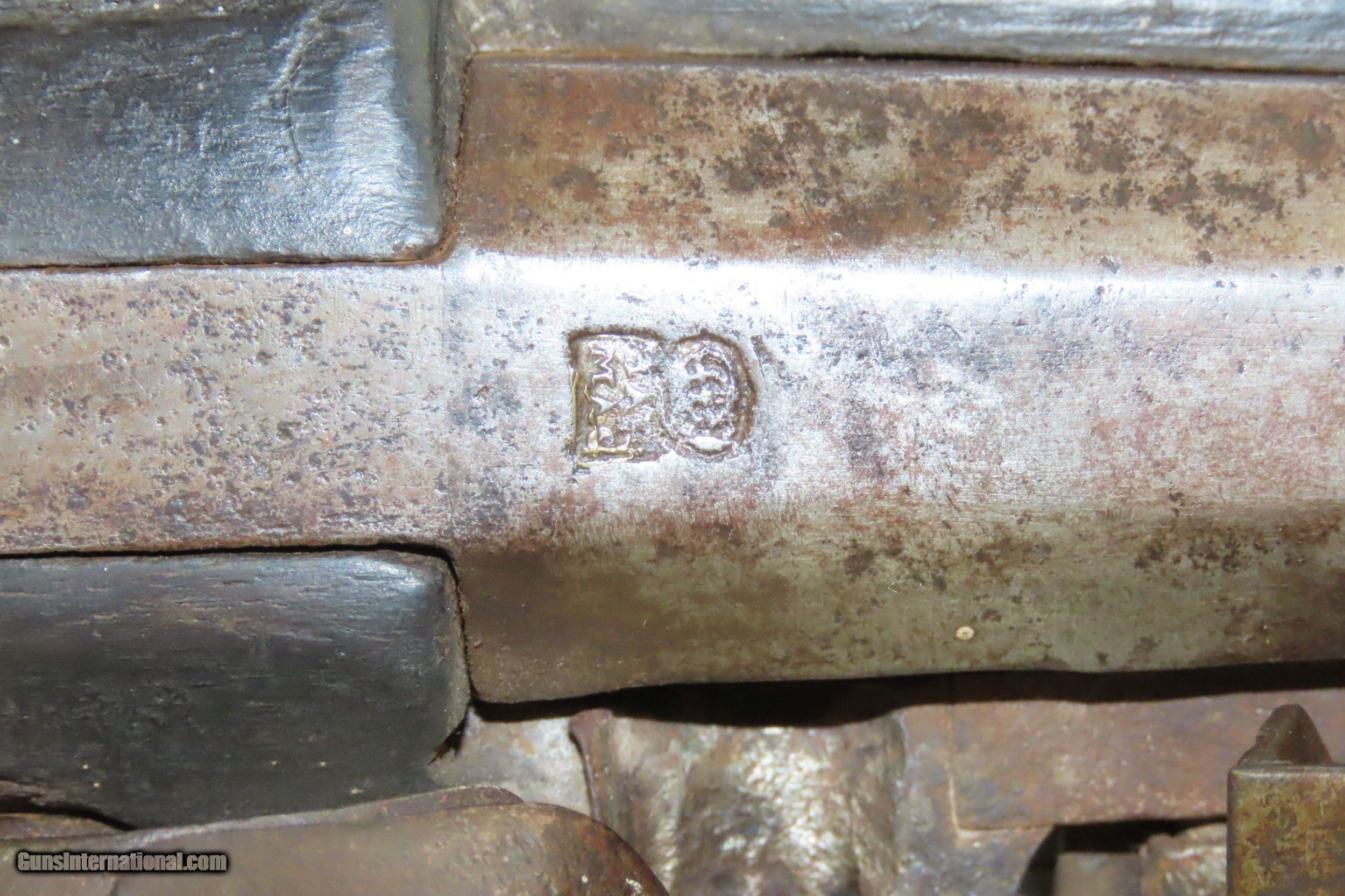 Description: Circa 1700s Antique SPANISH Flintlock BLUNDERBUSS Naval Pirate Exploration Colonial Period Deck Clearing Gun from España Here we present a Spanish Flintlock Blunderbuss, made circa the 18th Century. This piece has a muzzle with a diameter of 2 inches. The breech end of the barrel is deeply stamped with a Spanish maker’s mark that appears to read “MAS/MAJ”. This gun has been added to as needed. The remnants of an old brass trigger guard can be seen along with one of a different pattern. The butt plate is cracked. The barrel band appears a bit ad hoc. Iron rammer. One doesn’t have to use much imagination to see this in the hands of a pirate. The overall condition is rough. Gray patina throughout. The action will hold half- and full-cock but the trigger does not drop the cock. The lock is a bit loose as there is some loss of material around the lock inletting. The stock in front of the lock has a long crack. It has clearly been there and done that. This would be a fantastic piece on display. Own the original! This is a legitimate antique and not a reproduction. Barrel is 22-1/4 inches Muzzle diameter is 2 inches. Overall condition as seen in photos. Very Fast. Very Safe. FREE SHIPPING WORLDWIDE. Delivered directly to your door by express mail! Guaranteed AUTHENTIC & Includes CERTIFICATE OF AUTHENTICITY. ancestryguns $3645 #215326 SOLD Antique: Yes |