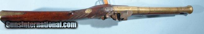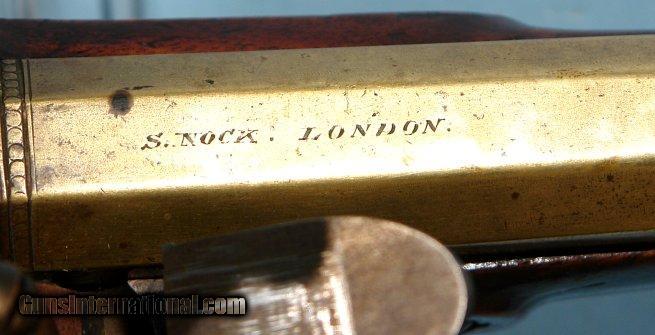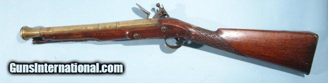 FINE BRITISH GEORGE III FLINTLOCK BRASS BARREL BLUNDERBUSS BY S. NOCK OF LONDON.