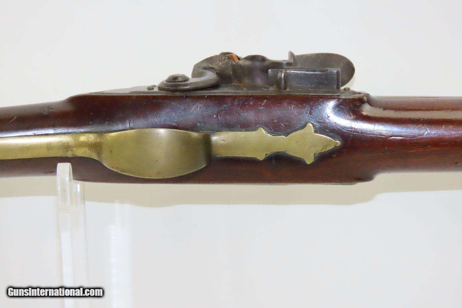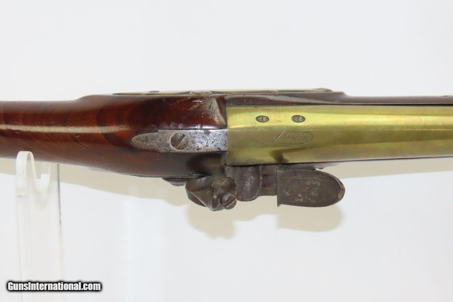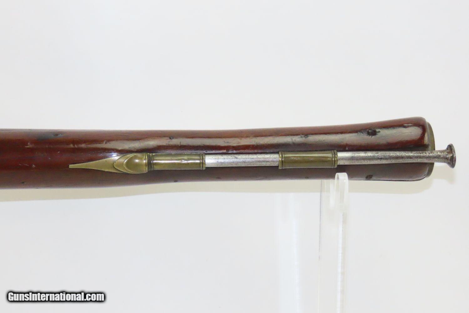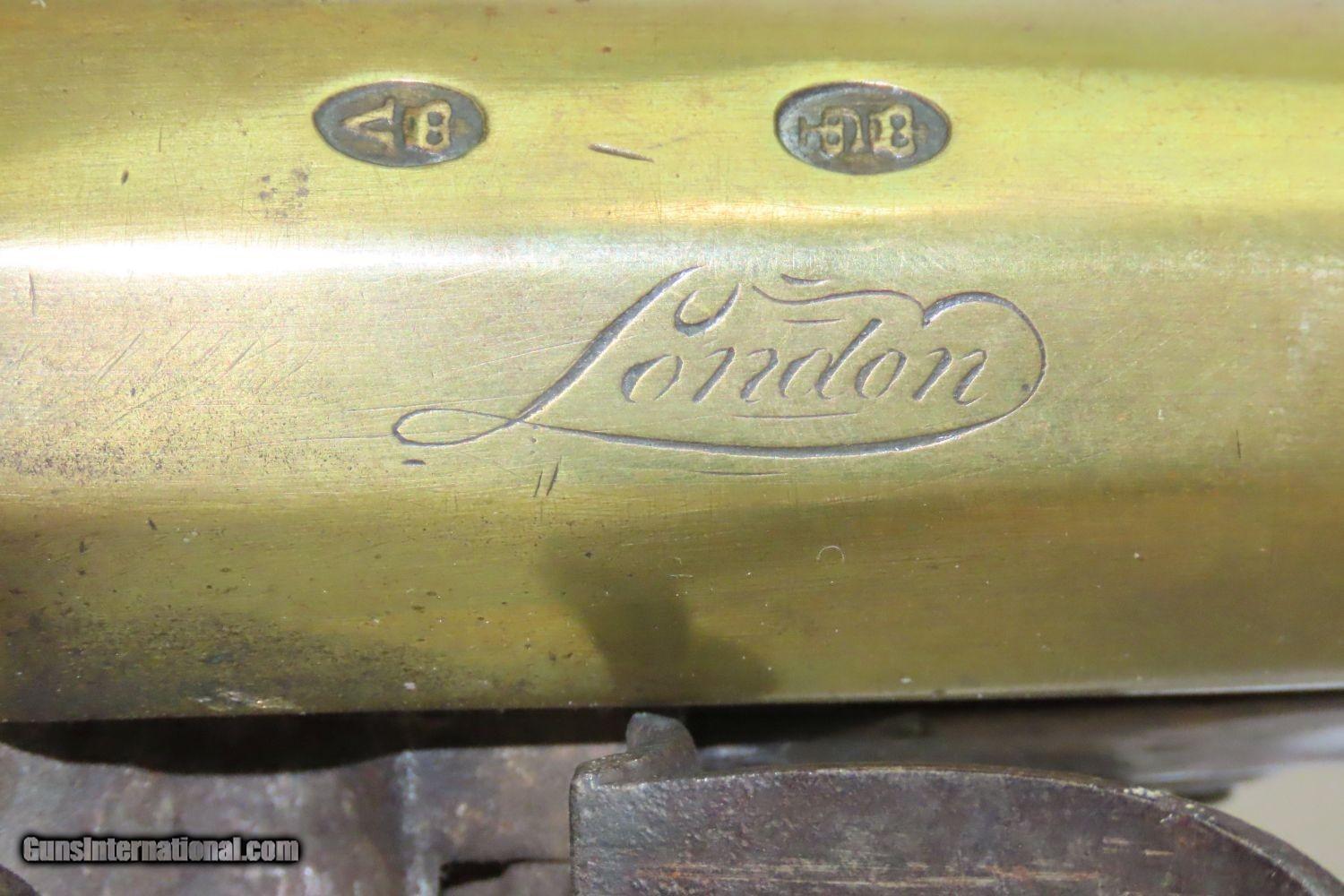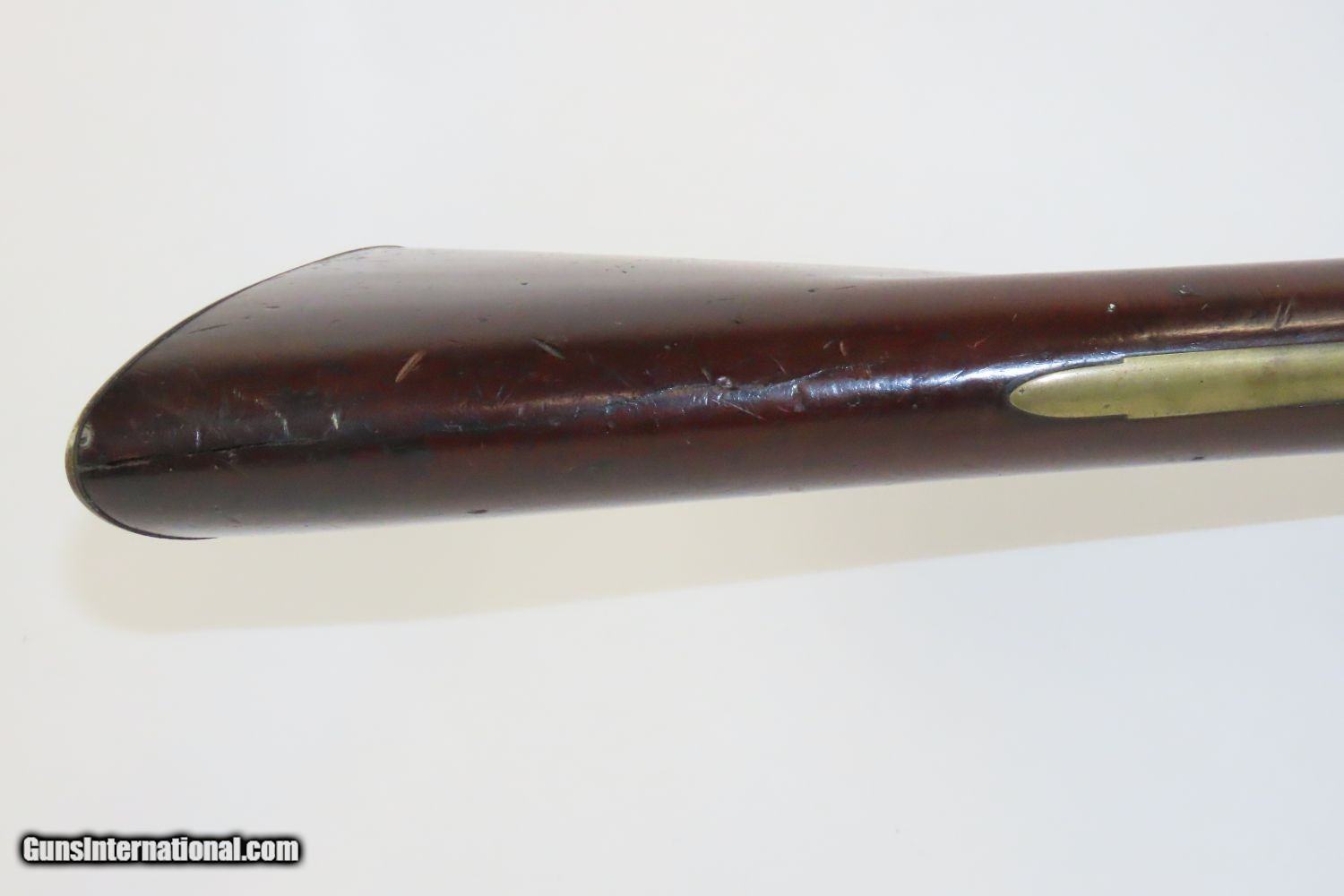 Description: REVOLUTIONARY WAR Era ROBERT WOGDON Made British FLINTLOCK BLUNDERBUSS DESIREABLE 240+ Year Old BRASS BARRELED Close Range Weapon! Here we present an antique Robert Wogdon marked English Brass Barreled Blunderbuss, made circa 1780 in London, England. Robert Wogdon was active circa 1760-1803 and is perhaps best remembered for having made the pistols used in the infamous duel between Aaron Burr and Alexander Hamilton that resulted in the death of the latter. This one features a 15 ¼-inch brass barrel marked “London” on top. The left side bears 1740 style proof marks. The trigger guard, side plate, and butt plate are likewise made of brass. The iron lock is signed “Wogdon”. This piece is of a more formal military style and would have been used in that capacity. The muzzle diameter swells to nearly 2 ¼ inches at the bell. This is a substantial piece of hardware! The overall condition is very good. The action is excellent. The bore is in good shape: smooth with some verdigris. The stock has a short crack along the grain on the left side of the muzzle. This is a wonderful example of a British blunderbuss from the period of the American Revolution! Own the original! This is a legitimate antique and not a reproduction. Barrel is 15-1/4 inches. Overall condition as seen in photos. Very Fast. Very Safe. FREE SHIPPING WORLDWIDE. Delivered directly to your door by express mail! Guaranteed AUTHENTIC & Includes CERTIFICATE OF AUTHENTICITY. ancestryguns $7195 #200921 SOLD Antique: Yes |