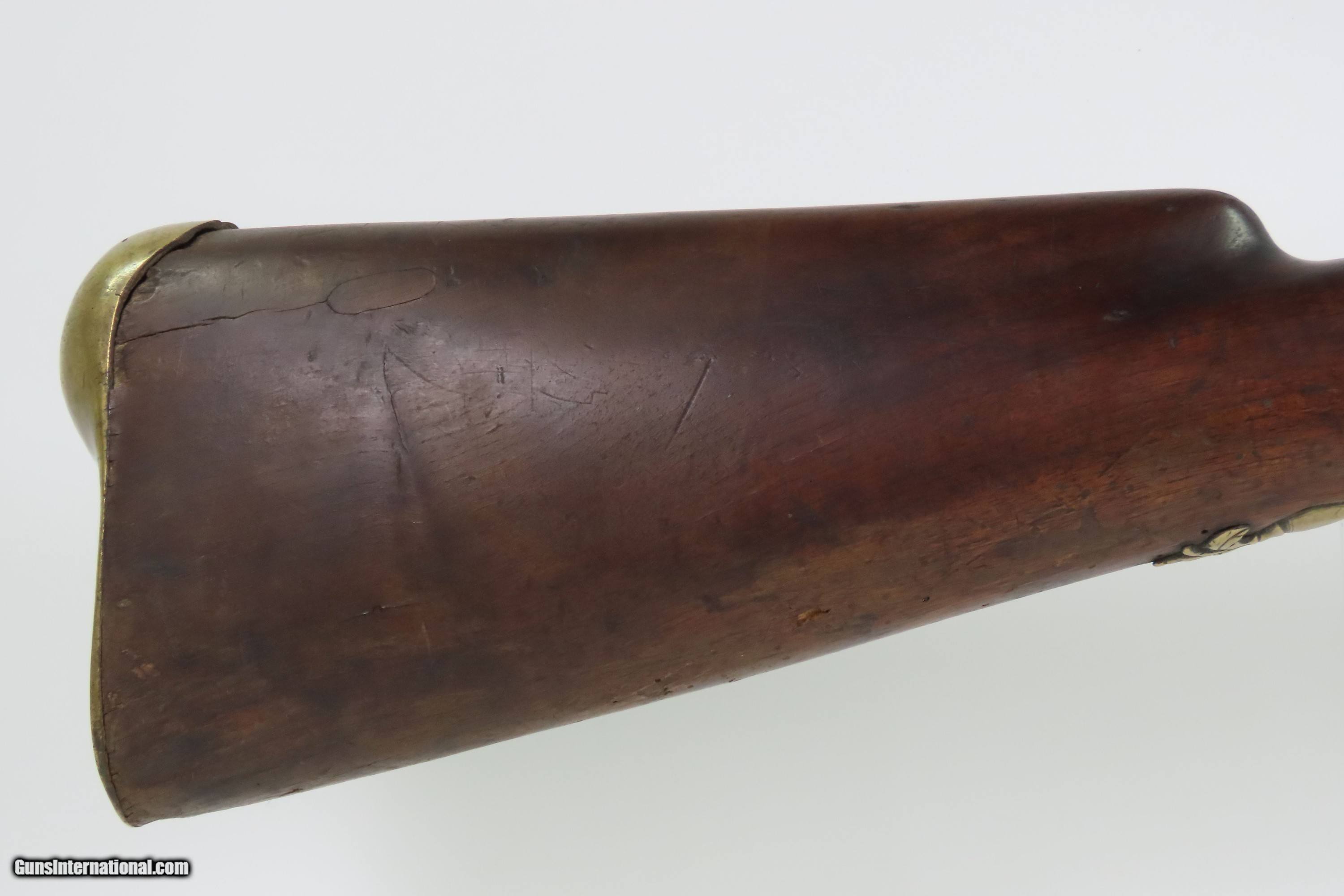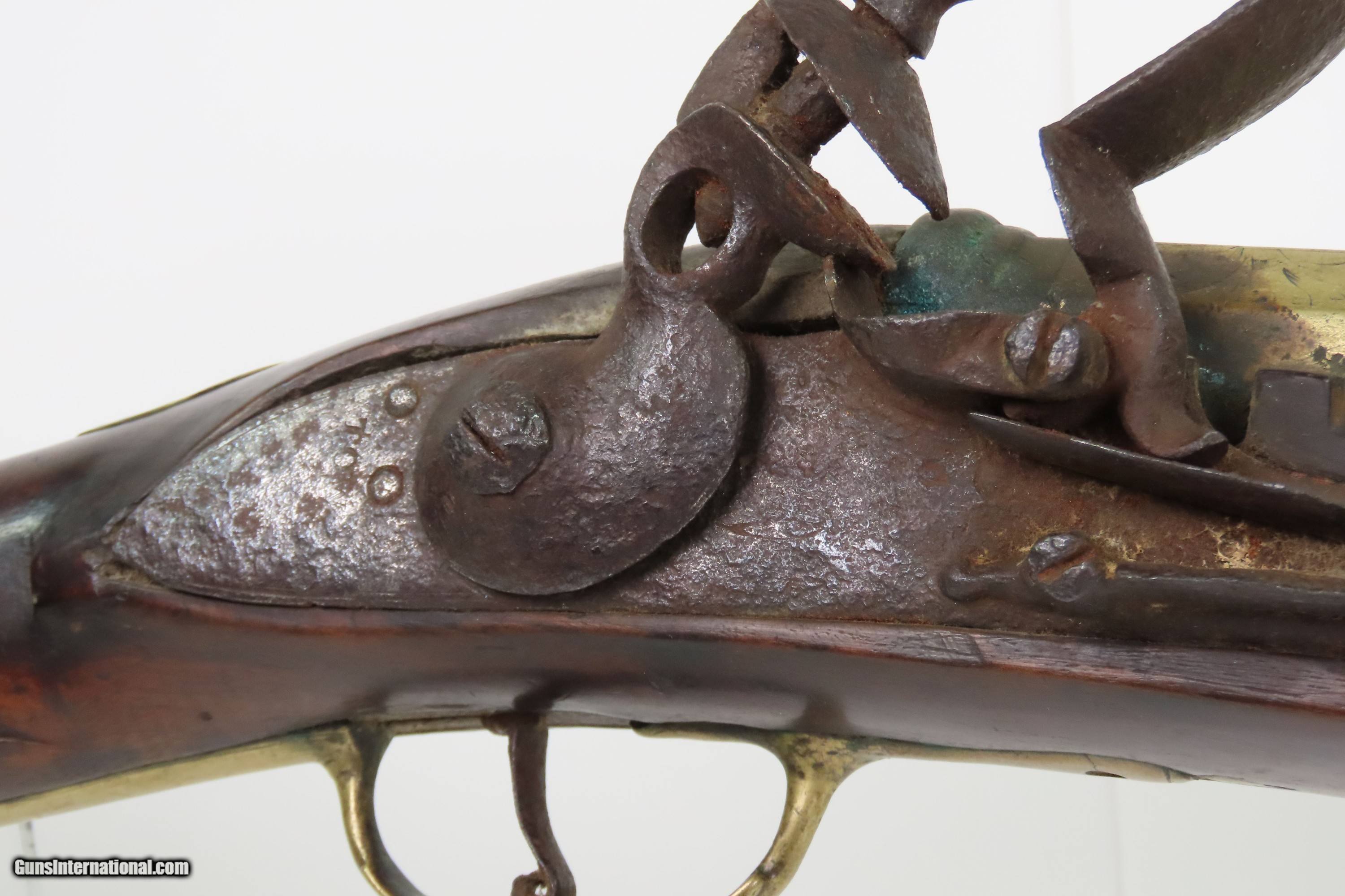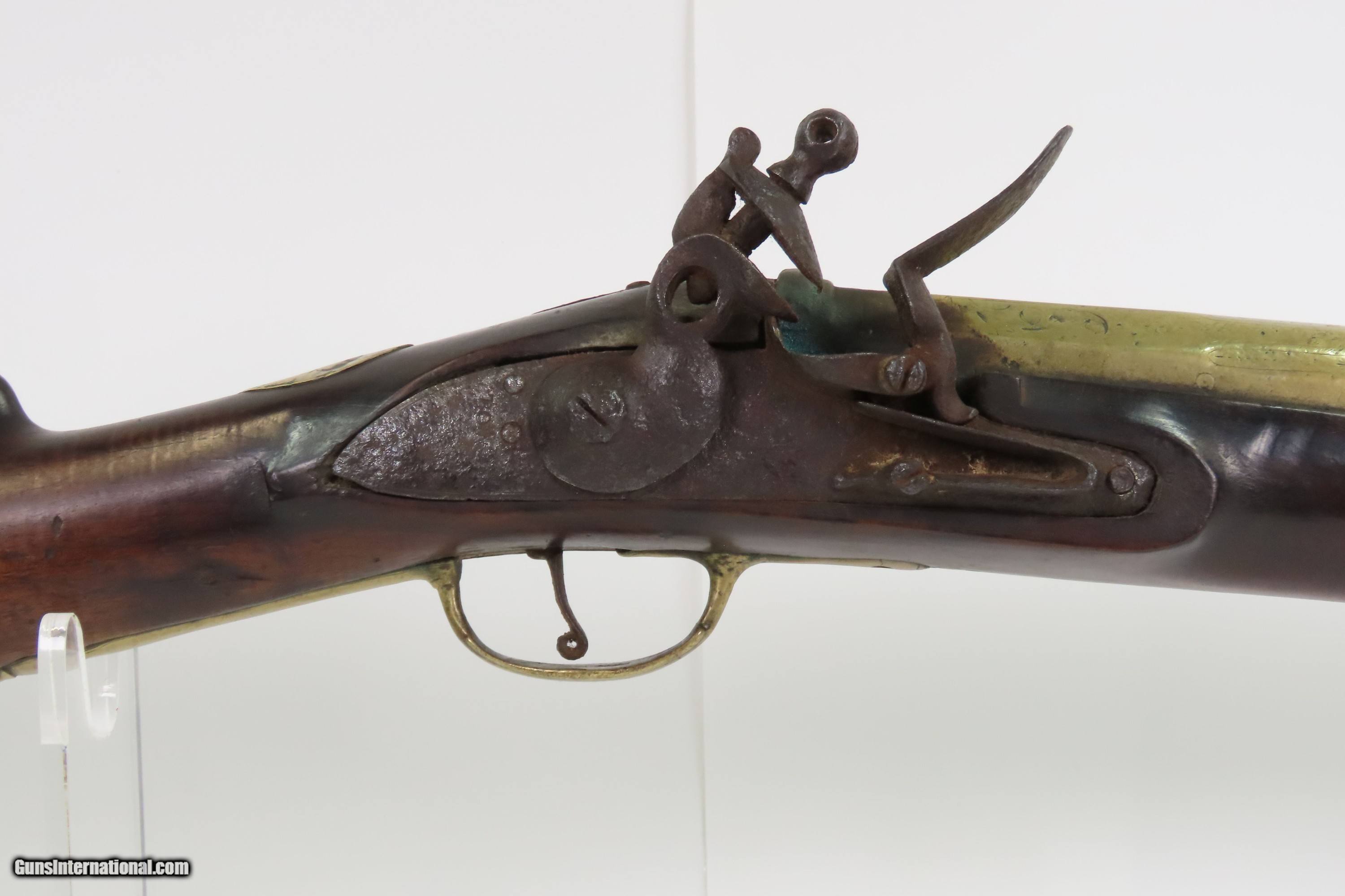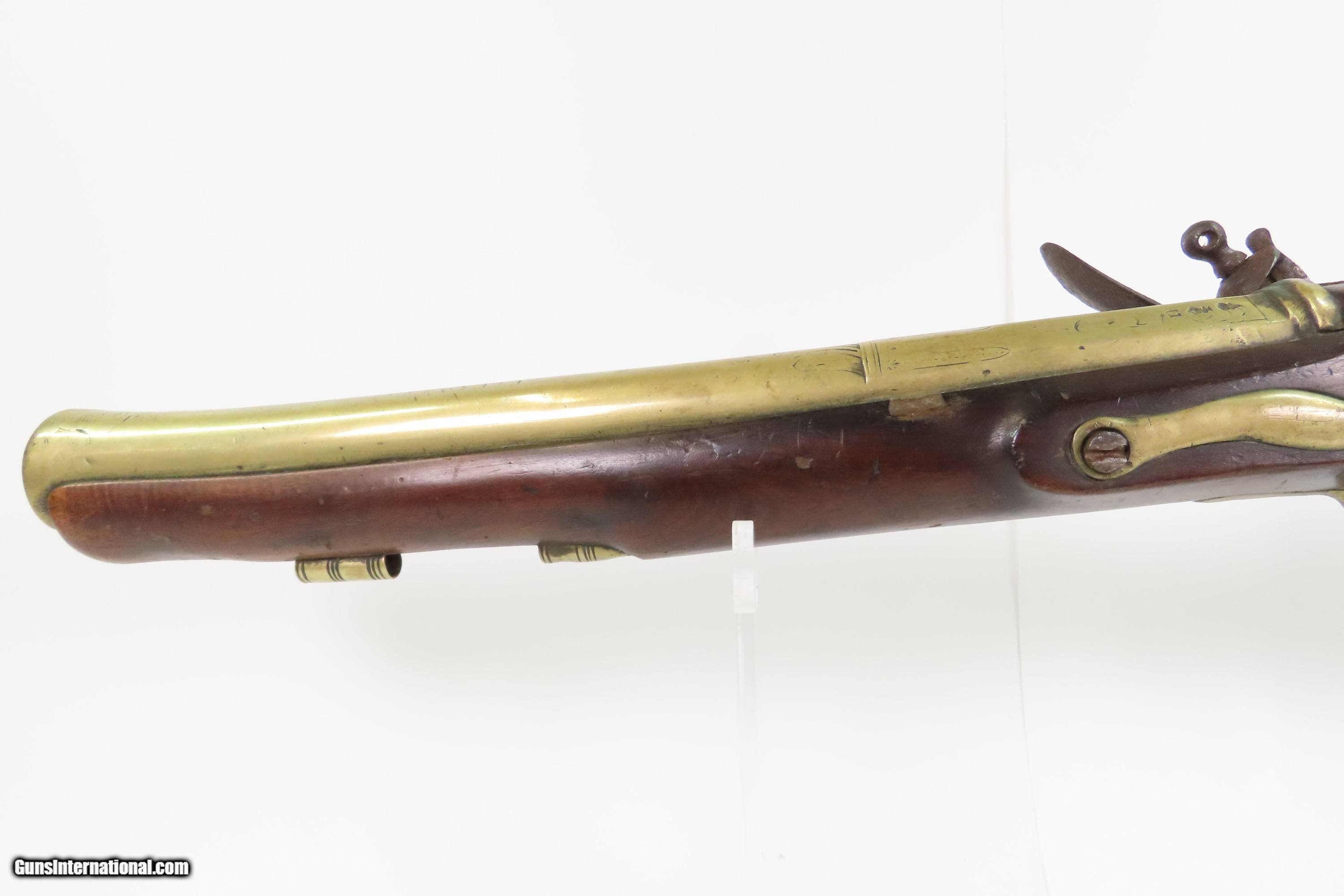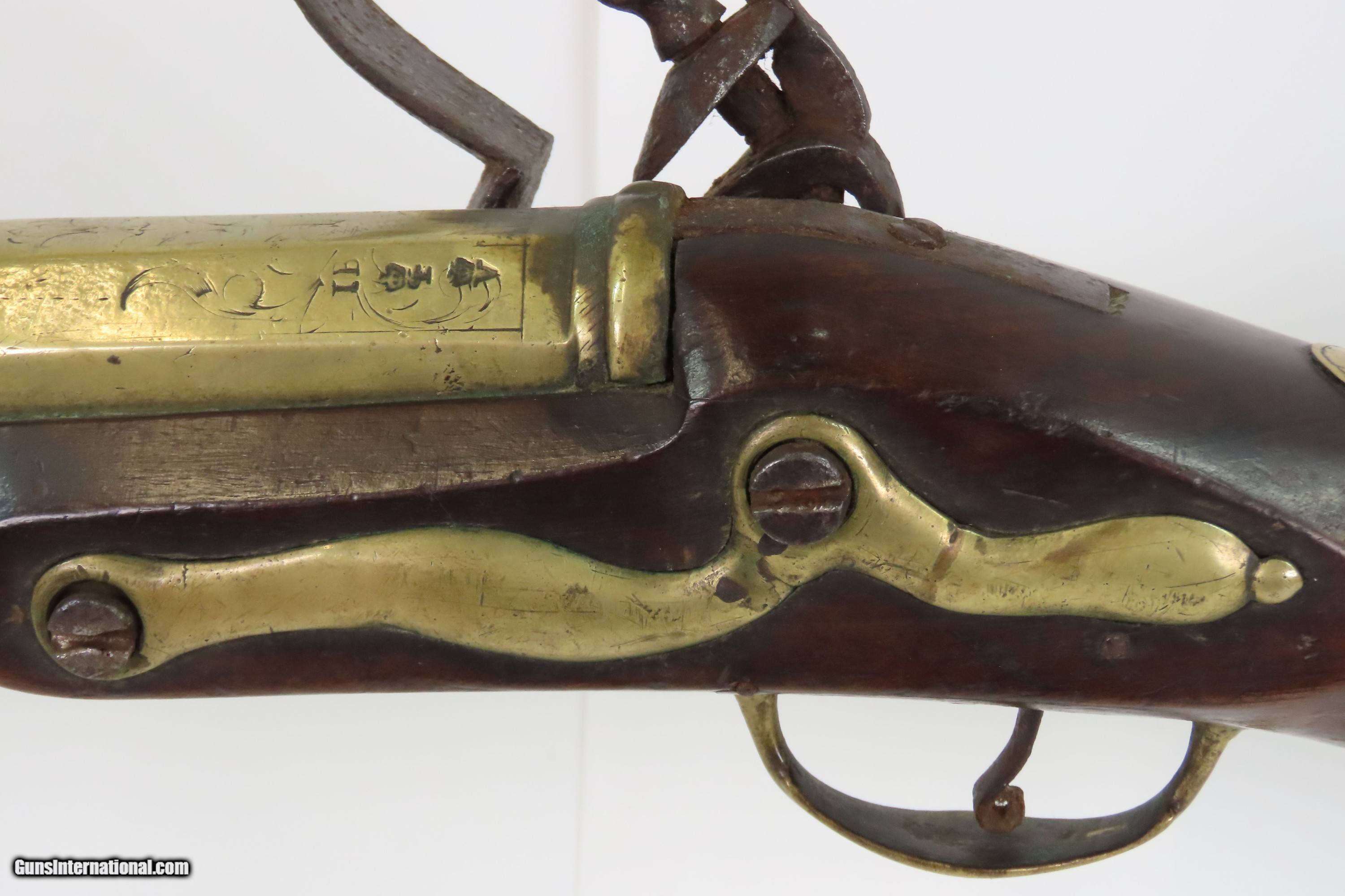 Description: WAR of 1812 Era Antique BRASS BARRELED London Proofed FLINTLOCK BLUNDERBUSS 200+ Year Old WAR of 1812 Close Range Weapon! Here Ancestry Guns presents an antique British Flintlock Blunderbuss, made circa 1790 to 1813 in London, England. The barrel shows London proof marks along with an “IB” maker's mark. The blunderbuss is a firearm with a short, large caliber barrel. They are flared at the muzzle, frequently throughout the entire bore, and used with shot and other projectiles. The blunderbuss is commonly considered to be an early predecessor of the modern day shotgun, with similar military and defensive use. It was effective only at short range, lacking accuracy at long range. A blunderbuss in handgun form was called a Dragon, and it is from this that the term “Dragoon” evolved. The flintlock blunderbuss was the original coach gun, being a short, handy and devastating weapon at close range. It was used in many capacities, not the least of which were for Naval boarding or defending vessels, stagecoach and messenger companies, home defense and more. The flintlock blunderbuss was the original coach gun, being a short, handy and devastating weapon at close range. It was capable of firing up to 20 buckshot in front of 120 grains of black powder, according to Spencer Tucker in “Almanac of American Military History, Volume 1”. This particular example is highly likely to have been used in the War of 1812 on the side that didn’t win! The overall condition is good. The action fully functions. Dark bore, good for its age. A few thin cracks are present on the buttstock around the plate. A sliver is missing from the tip of the right forend and the left side of the buttstock toe. Markings are legible. The ramrod is absent. A blunderbuss such as this is what most people imagine a pirate crew using to commandeer an unsuspecting ship! Own the original! This is a legitimate antique and not a reproduction. Barrel is 15-1/2 inches. Caliber: Bore measures approximately 1” and flares to 1-1/2 inch. Overall condition as seen in photos. Very Fast. Very Safe. FREE SHIPPING WORLDWIDE. Delivered directly to your door by express mail! Guaranteed AUTHENTIC & Includes CERTIFICATE OF AUTHENTICITY. $6000 #259379 Antique: Yes Price: $6,000.00 Buy Now Pay with