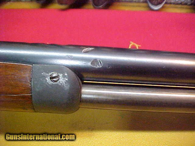Description: #4825 Whitneyville 1879 rifle, RBFMCB 44WCF with a G-VG bore (5-6 on a scale of 10) and smooth long throw action. This is an early production in the C2xx range circa (1882-83) and thus having the serpentine lever. At that point, Whitney Arms still had a little piece of the lever action market, but it was shrinking due to the entering of Marlin into the lever action rifle pool to complete with Winchester. This rifle is in VERY Fine condition overall ….if not for the many deep dings and gouges on the barrel, some of which look to actually be faintly showing up in the bore ….although it’s highly unlikely it would affect the shooting or accuracy. The blue is about 75-80% coverage of a 60% density on the frame, with about the same on the barrel but thinning and fading more to a 40% density. The wood is very good to fine as well, and the markings are fine wuth the exception of the first part of the address line where the dings are very pronounced. Still, this is a REALLY nice Whitney, and if the next owner knows a good metalsmith who can “move metal” with a hammer and drift (I’ve seen a few who could, but all long passed away), this could be an Ex.Fine rifle and worth at least a thousand more than this price. $2795 SOLD Antique: Yes |