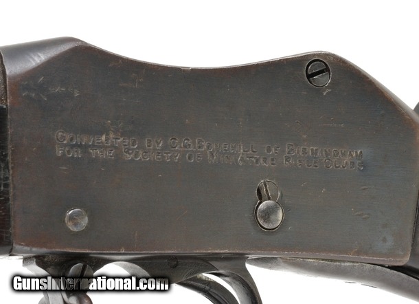 Description: British Martini Henry Conversion .22 caliber rifle. Made in 1870. Converted to .22 by C.G. Bonehill. Bore has strong rifling with minor pits. Rifle has a BSA made rear tang sight. Very good overall condition. A neat .22 conversion Martini Henry. SOLD Antique: Yes |