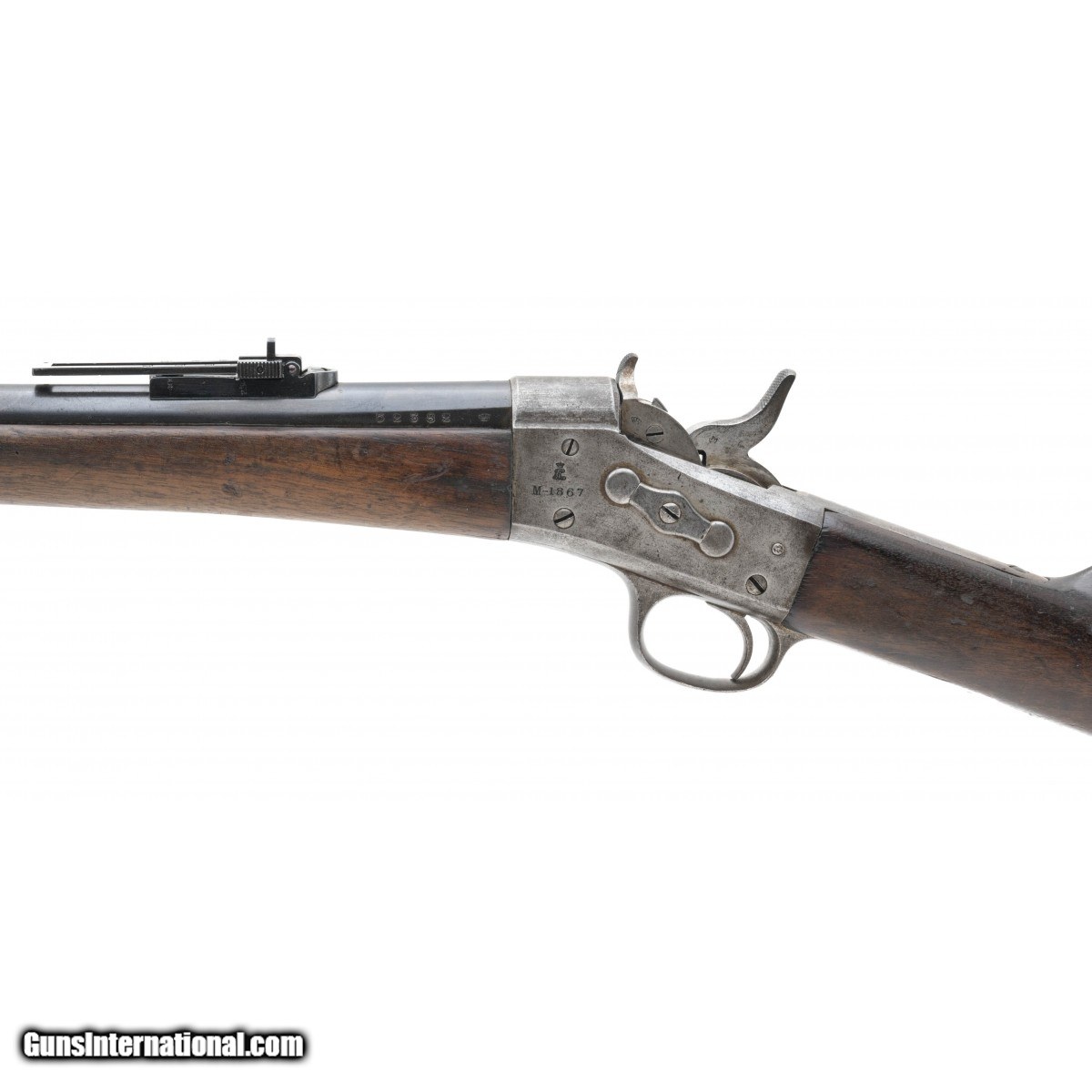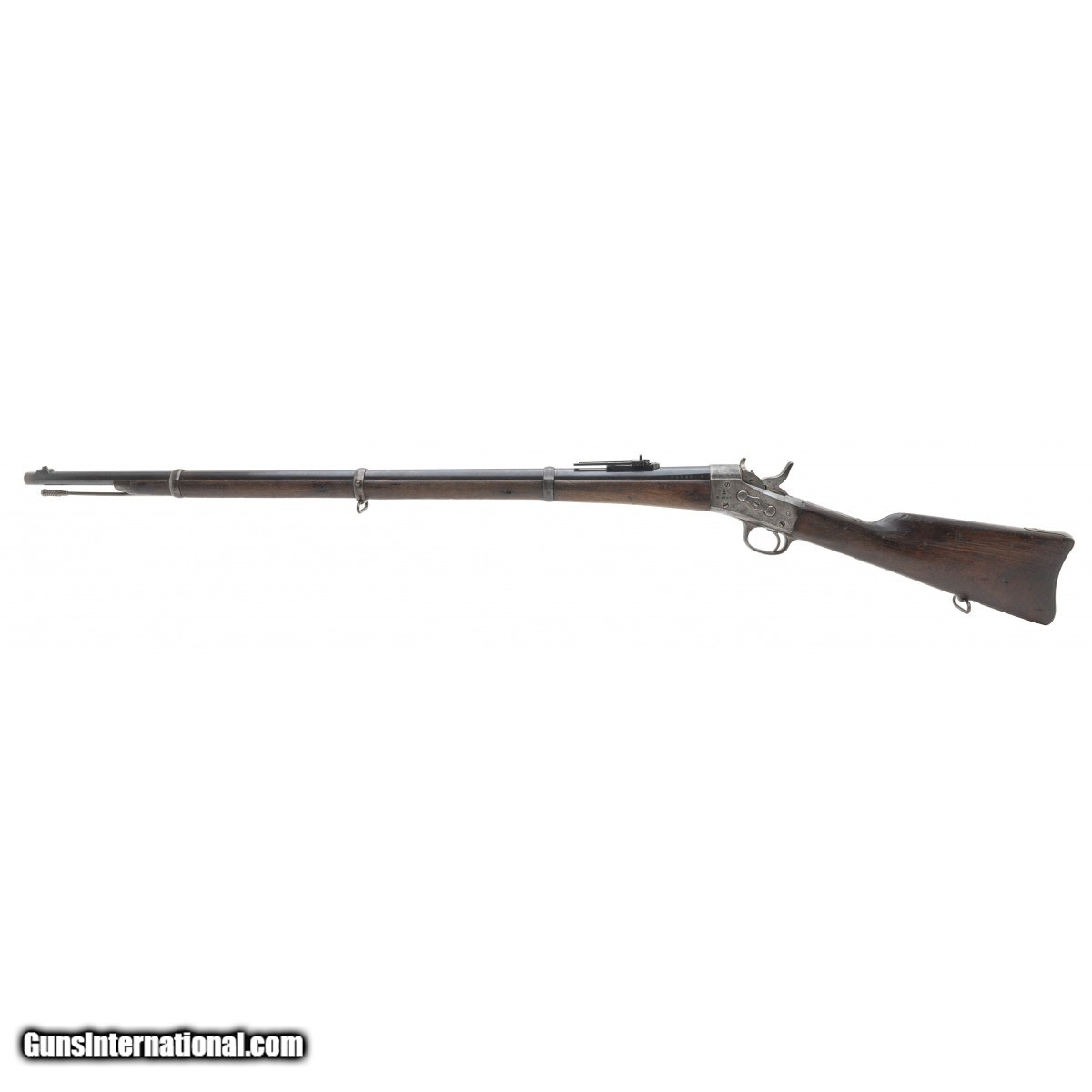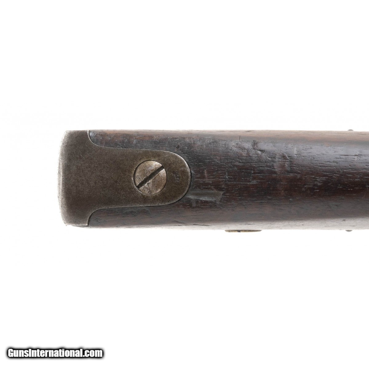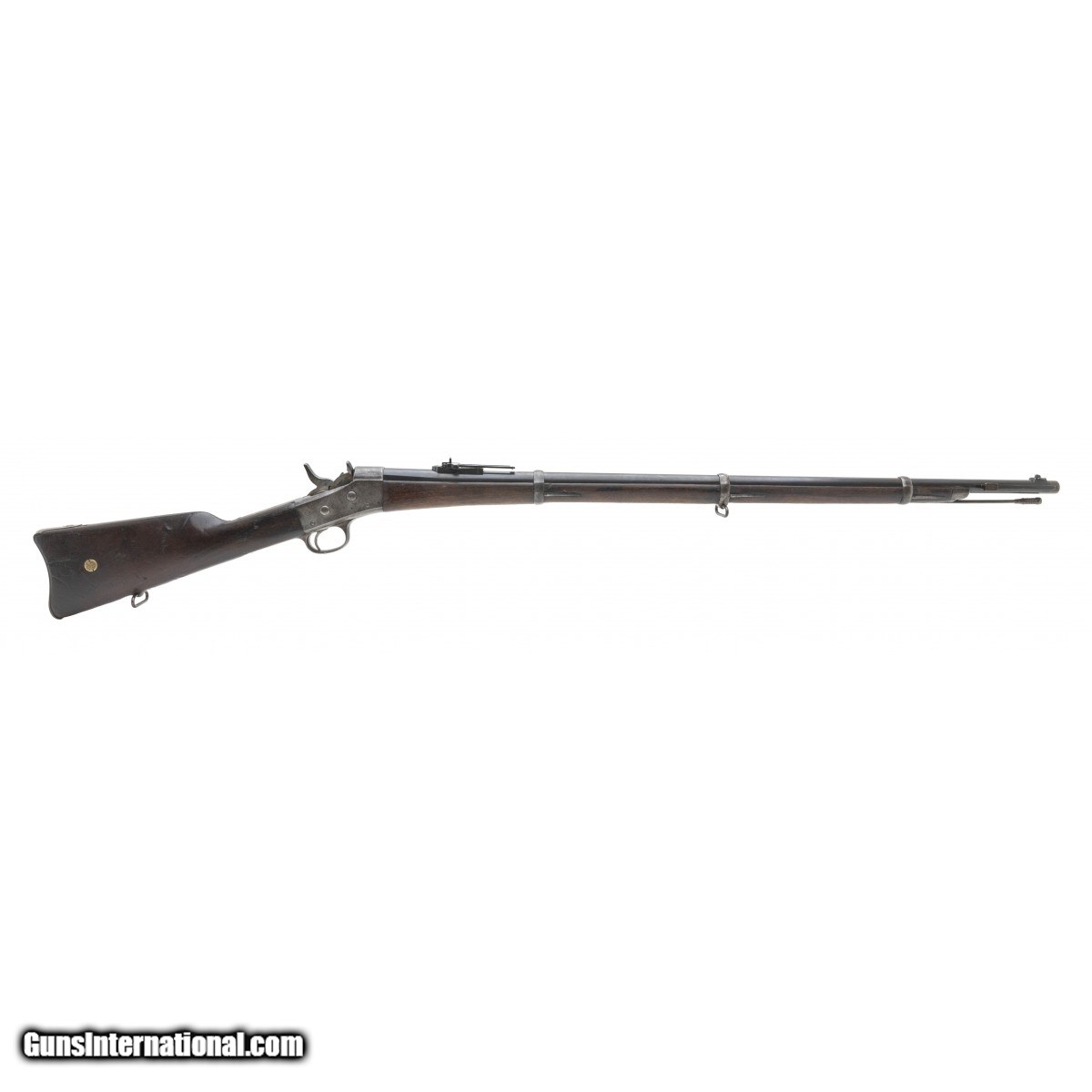 Description: " The 11.7X42R mm centerfire caliber Danish Model 1867 rolling block rifles were manufactured in Denmark under license to Remington. The tang is marked KJOBENHAVN (Copenhagen) and the left side of the receiver has a crown over M-1867. The approx. 35.25"" barrel has an excellent bore with bright, strong rifling. The barrel has approx. 90% blue. It has a lug for a sword bayonet on the right. The case hardened receiver and action are silvered. The buttstock is very good with dssue dents and dings, a matching number to the barrel, and a brass inverntory disc (HAR over 1865) on the right butt. The forearm is very good with issue dents and dings. The ramrod and swivels are present. The action functions correctly. This is a much better than average rifle. SOLD |
