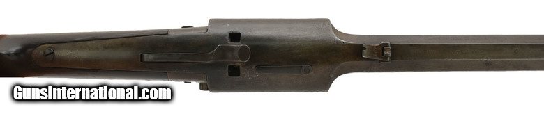 Description: "North & Skinner Revolving .44 caliber rifle. Scarce gun. .44 caliber revolving rifle with a half octagon and half round barrel. This gun has light pitting throughout and a lighter gray patina. Stock is very good and has a patchbox on the left hand side of the buttstock =. Very good revolving rifle. SOLD Antique: Yes |