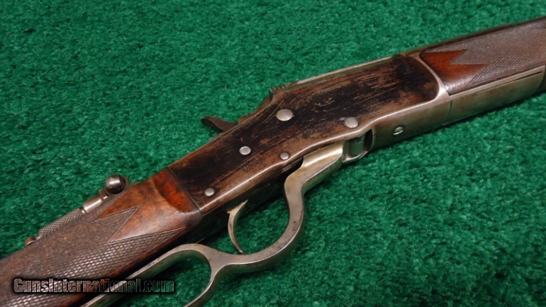 Description: Cal 45-70. This is half round half oct rifle with a 24" bbl. The Bullard was a high quality rifle and this one is a good example. Quite a bit of finish remains with receiver at about 60%+ of a thinning blue. Bbl has about 80% blue with a couple of thinning areas. The mag tube also is VG. This gun is equipped with a Lyman tang sight, a flip down rear sight and standard post front sight. Bullards were noted for their smooth lever actions and this one has a VG+ bore. Nice rifling. No pitting. Forearm is very attractive with nearly full coverage checkering. A few dings and handling marks but VG overall cond. Buttstock is VG cond but does have a chip at the toe. A great gun in a great caliber! Leroy Merz Antique Firearms specializes in antique and vintage Winchesters and other fine American firearms. Since 1965 Mr. Merz has taken part in the world of firearms and has been a contributor to many well known reference books. Just recently we mailed the 125th edition of our privately-published catalog. We have hundreds of additional guns in every price range at our home online. Search for Merz Antiques in google. SOLD Antique: Yes |