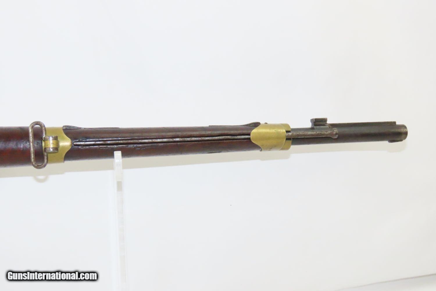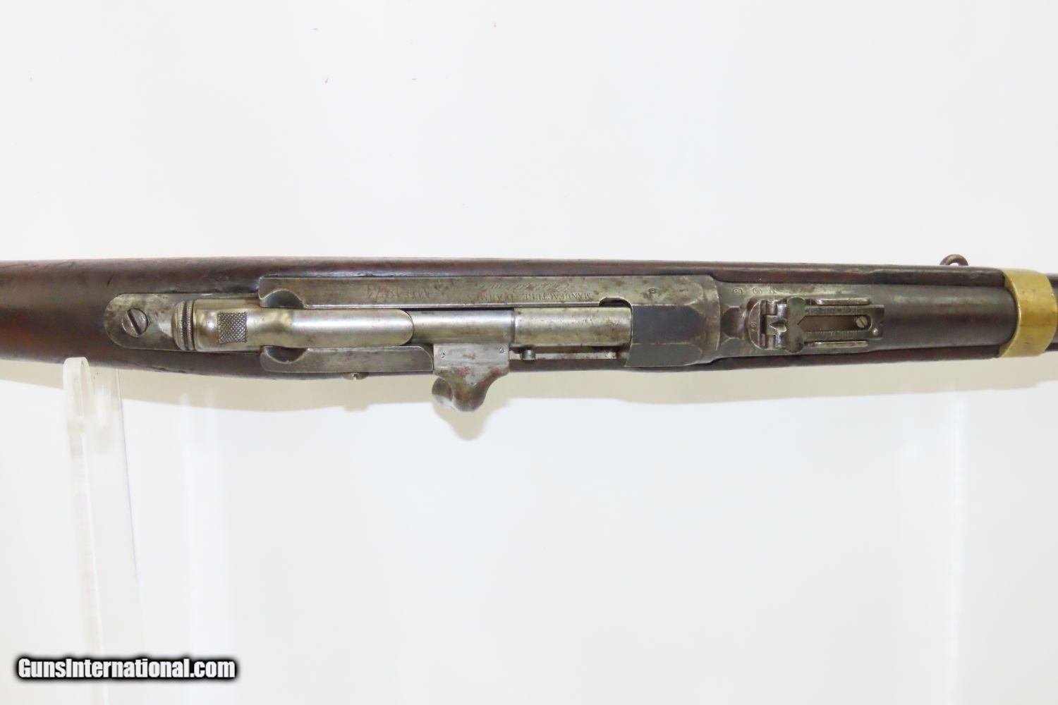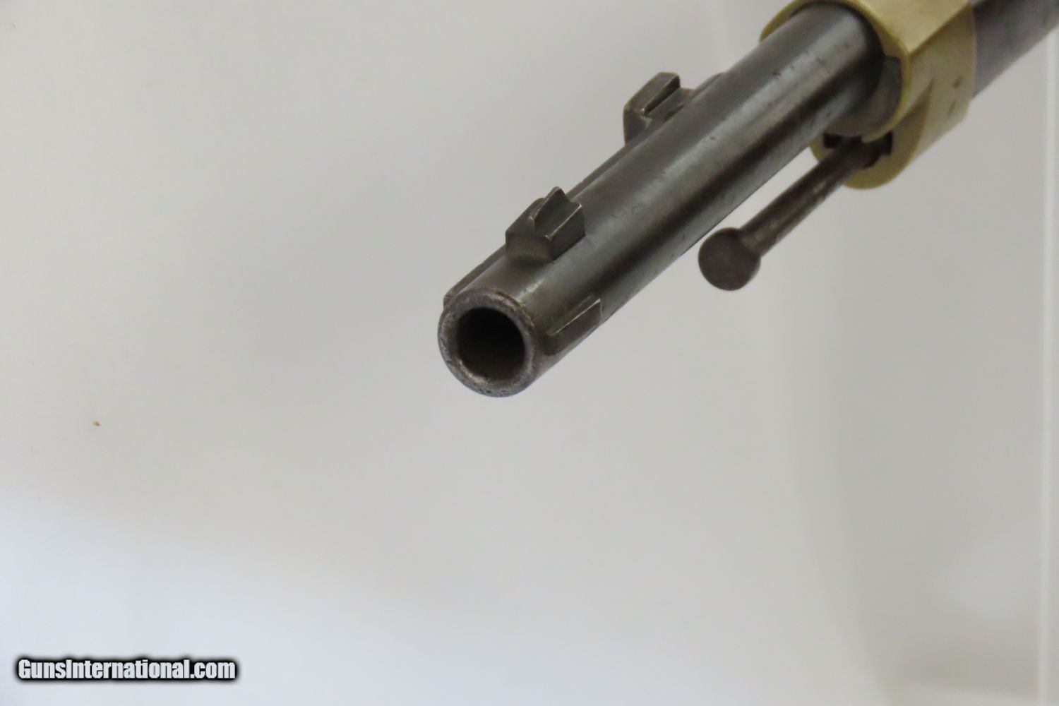 Description: Antique FRENCH CHATELLERAULT Gras Model 1874/80 11mm Caliber Carbine French Proofed MILITARY Carbine Here we present an antique French Chatellerault Arsenal Gras Model 1874/80 Carbine, made circa 1880 at the armory in Chatellerault, France. The Gras Modèle 1874 M80 was a French service rifle of the 19th century. The Gras used by the French Army was an adaptation to metallic cartridge of the Chassepot breech-loading rifle by Colonel Basile Gras. This rifle is chambered in 11mm and used black powder centerfire cartridges. It was a robust and hard-hitting single shot weapon. It was replaced by the Lebel rifle in 1886, the first rifle to use smokeless gunpowder. In the meantime, about 400,000 Gras rifles had been manufactured. The metallic-cartridge Gras was manufactured in response to the development of the metallic cartridge designed by Colonel Boxer in 1866 (Boxer cartridge), and the British 1870 Martini-Henry rifle. Those were soon emulated by the Germans with the 1871 Mauser. The received is clearly marked MANUFACTURE D'ARMES Châtellerault Mle 1874 over M80 on the receiver. The rifle has a clear issue date stamped into the barrel of C 1880. Most fittings bear the correct government proof marks, though some are worn. The overall condition is good. Strong action. The bore is bright and reflective with sharp rifling. Solid stock with expected wear. Numbers match except for the bolt. “1880” dated on the right barrel flat. Here is an excellent piece of French history for the collection. Own the original! This is a legitimate antique and not a reproduction. Barrel is 20 inches. Caliber: 11mm Overall condition as seen in photos. Very Fast. Very Safe. FREE SHIPPING WORLDWIDE. Delivered directly to your door by express mail! Guaranteed AUTHENTIC & Includes CERTIFICATE OF AUTHENTICITY. ancestryguns $1245 #210708 SOLD Antique: Yes |