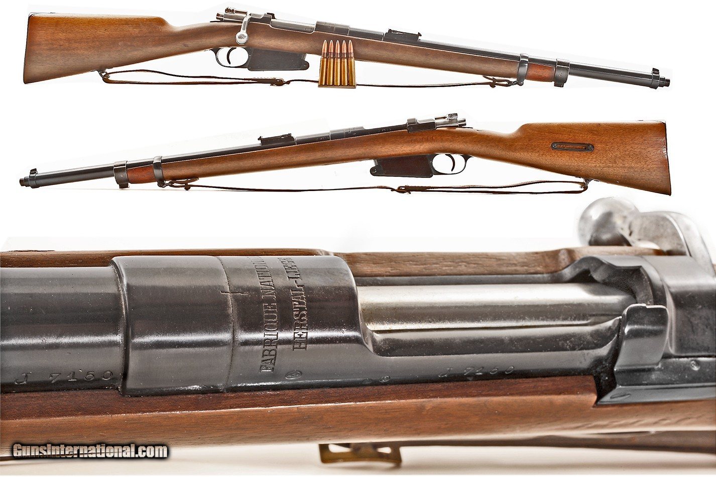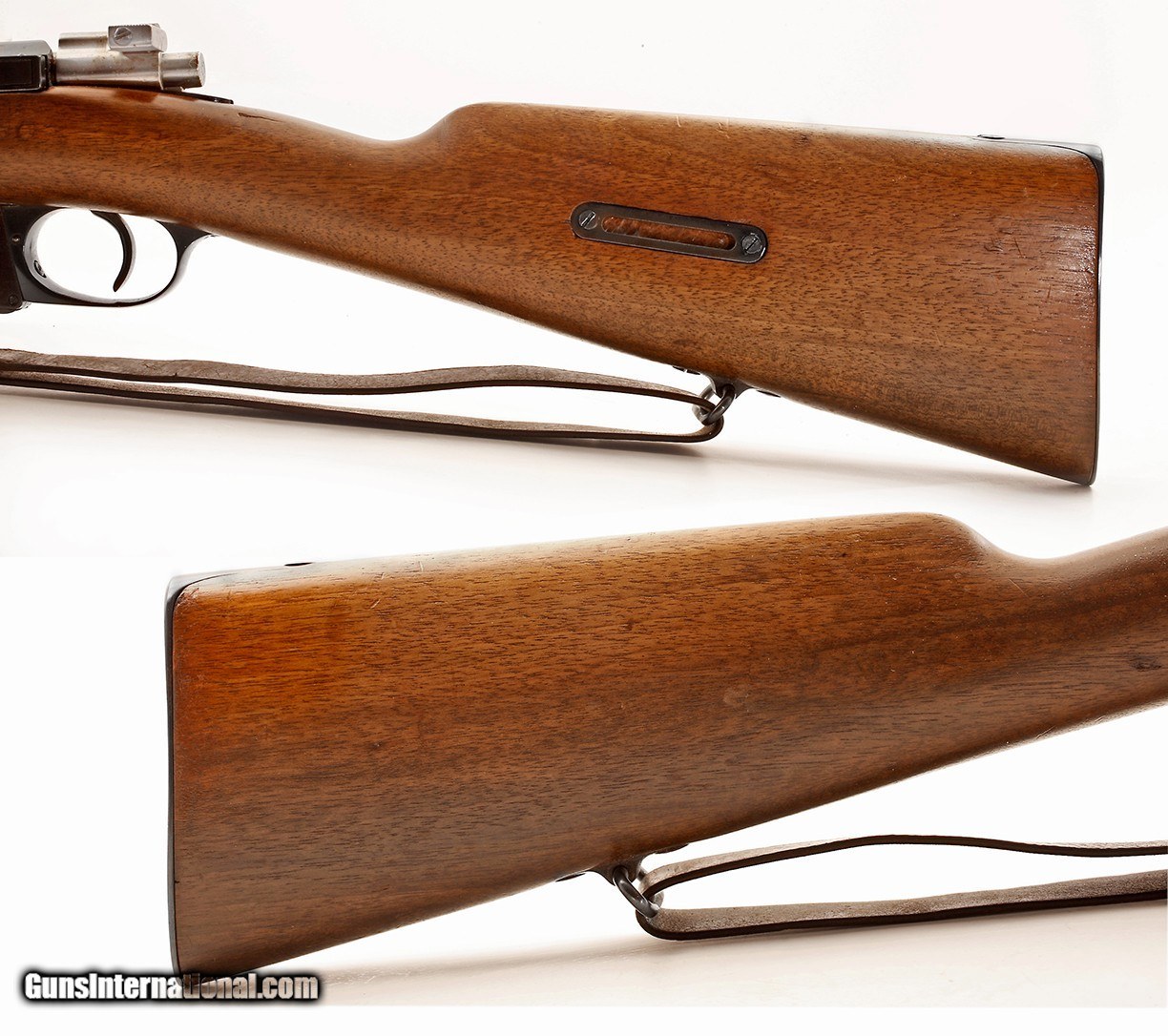 Description: I'm selling my collection. An Antique Belgian Mauser Model 1889 Rare Short Rifle made by "FN" the Fabrique Nationale Herstal National War Weapons Factory. Paul Mauser agreed to have the rifles produced in Belgium and sold the manufacturing license to the Belgian government. The government gave FN the license while retaining the rights to manufacture the model in state arsenals. The task of producing the contract was immense: buildings had to be erected, a workforce had to be hired and equipment had to be purchased. No expense was spared and only the most modern machinery was acquired. Factory construction was still ongoing when rifle production began, and the first rifles were completed on Dec. 31, 1891. The Model 1889 Mauser rifle effectively gave birth to the arms giant Fabrique Nationale. The FN produced 150,000 of the Model 1889 which served with success in many conflicts 1889 1960s. 22" shrouded (sleeved) floating barrel for accuracy with a very good bore with sharp rifling. The blue finish & the wood rate 85%. Chambered for the excellent 7.65 x 53 rimless Mauser. 5 round magasine. I haven't shot it. What don't read in the description may be seen on the pictures. It was well kept and preserved. The old cartridges showed on the pictures are not sor sale. Please don't ask for extra pictures. $765 + $75 insured shipping to your door if you are over 21, payable by cashier check, P.M.O or credit card with the usual charging fee. Please check out my other antique guns which are already set at a low price. Thank you. SOLD Antique: Yes Rifle Caliber: 7.65x53mm Argentine |