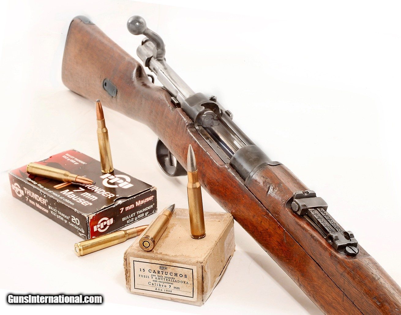Description: I'm selling my collection. Here is an Antique Chileno Short (rare) Mauser Model 1895. Antique no FFL required, produced in 1896. It’s chambered for the accurate 7x57mm Mauser caliber. It was manufactured by the prestigious Arsenal Imperial Factory "Manufactura Loewe of Berlin" before 1898, with all the military approval markings and cartouches on the wood. Found in good condition: bore is good with deep sharp rifling. This rifle is in a good working condition. Serial numbers are not matching it comes with the original cleaning rod. The wood of the stock few scratches from storage rack, the cartouches in the wood are sharp and well defined. The original factory blue finish rates 75% turning patina. The Chilean crown is on the top of barrel. The action is smooth & firmly crisp. All is visible on the pictures. Those are fun to shoot and very accurate with its 21" barrel. The ammunitions showed on the picture are NOT for sale. What is not mentioned in the description can be seen on the pictures. I haven't shot this one. I described it to the best of my knowledge. Please don't ask for extra pictures. Buyer is responsible for knowing all laws pertaining to this transaction. $765 + $75 insured shipping to your door, payable by cashier check, P.M.O or credit card. Please have look on my other antique pieces. Thank you. SOLD Antique: Yes Rifle Caliber: 7x57mm Mauser |