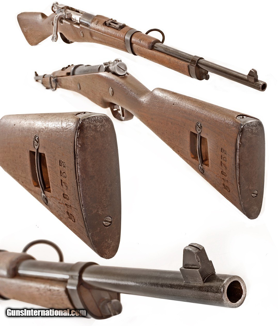 Description: I'm selling my collection. Here is a Rare French Berthier Carbine Model 1890 manufactured by Châtellerault one of the government state arsenal factory. It's an Antique NO FFL it was manufactured in 1891-92 in approximatively less than 200,000. It’s chambered in 8mmx 50R Lebel the best, efficient & first smokless caliber best ballistic at the time. 18.1/2" barrel with an excellent& shinning bore with shatp rifling. All these Berthier Model 1890 were for Cavalry Model 1890 Berthier which had no need of a bayonet lug (Mounted troop had a full size saber). Then in 1892 came out the Berthier Artillery Carbine Model 1892, so most of the 1890 were issued to the Arttillery and the Infantry modified by adding a bayonet lug like the M1892. You could buy separetly the unique & rare bayonet without the scabbard for $115 showed on one of the picture. With all the military approval markings. Serial number are matching on the receiver the bolt and the wood, different onthe barrel as it. was factory re-barreled at a later time. Scarcely found these Berthier Carbine Model 1890 as an Antique. The original factory finish rates 80% with rare pin-prick erosion. The action is firm and smooth. No import mark. Those short and light carbines were favored by the infantery, rangers, reconnaisance chasseurs à pied, going from trenches, leaping over craters and holes, being more practical, easier to carry than the long and heavy Lebel 86 or Berthier 1907-15. It's a real collector piece of history in antique pre-1898 as it was produced in 1897 as is the 106 years ago the battle of Verdun which lasted 10 months and made 700,000 victims, 163,000 French & 143,000 Germans and 410,000 wounded on both sides. The approximative total of the WWI militaries and civilians togather were 9,000,000 killed & 200,000 wounded. I described it to the best of my knowledge. Ammunitions and accessories showed on one of the picture are not for sale. What is not written on the description would be on the pictures. Please don't ask for extra pictures. Buyer is responsible for knowing all laws pertaining to this transaction. Please don't ask for extra pictures. $965+ $85 insured shipping to your home address, payable by cashier check, P.M.O or credit card with the usual charging fee. Please check out my other guns which are already set at a low price. Thank you. SOLD Antique: Yes Rifle Caliber: 8mm Lebel |