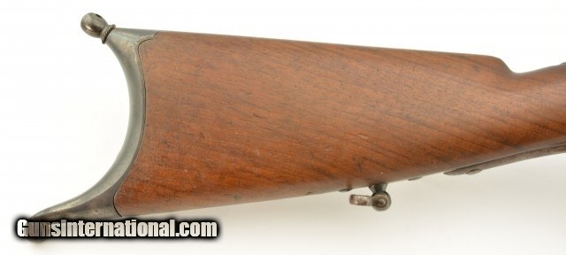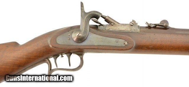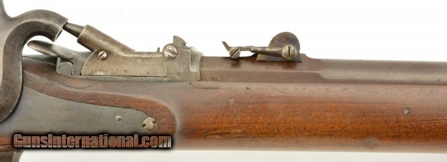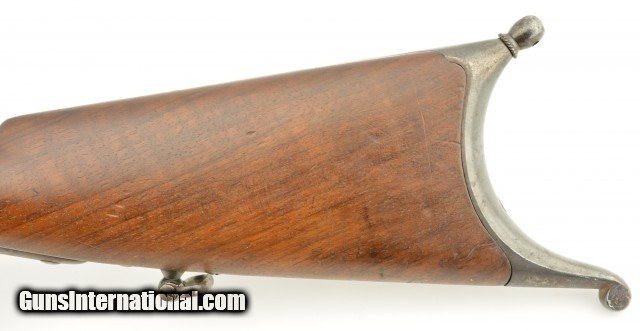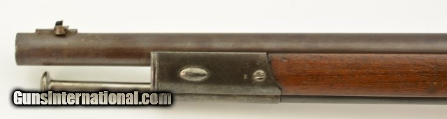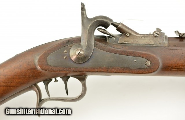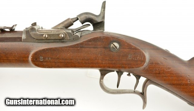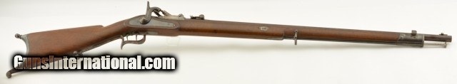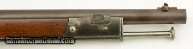 Description: Serial #1793, .41 Swiss RF, 30 1/2" barrel with a very good, lightly freckled, unrifled bore. This is a SIG-manufactured rifle that has an obscured, but still legible Canton Vaud marking on the barrel breech. The metal retains 60-70% of the original browned finish along the barrel, with some gray fading at the muzzle, as well as numerous small handling marks towards the breech. Traces of blue remain on the breech-block, with the balance turned to a mottled gray and plum-brown patina. The hammer and unmarked lock have some original blue remaining, and smooth plum-brown on the remainder. The lock and double-set triggers are fully functional, however the barrel was bored smooth at some point after the rifle left military inventory, and is now a .44/.45 caliber smoothbore (the .41 Swiss RF chambering has not been altered). The wedge-fastened walnut stock has numerous small handling marks and blemishes throughout, as well as some vise marks and small scratches and scuffs on either side of the lock. The stock furniture has a mottled plum-brown patina, while the button-headed ramrod is armory bright. Additionally, there is a single, crescent-shaped wood repair next to the breech-block on the right side of the stock. This is a very nice example of a modified Milbank-Amsler Stutzer, and would make a great addition to any collection. Antique SOLD |