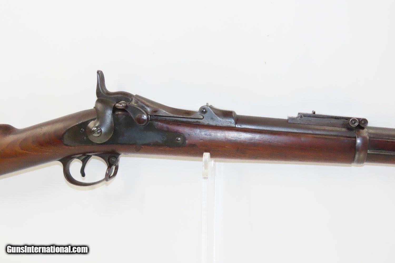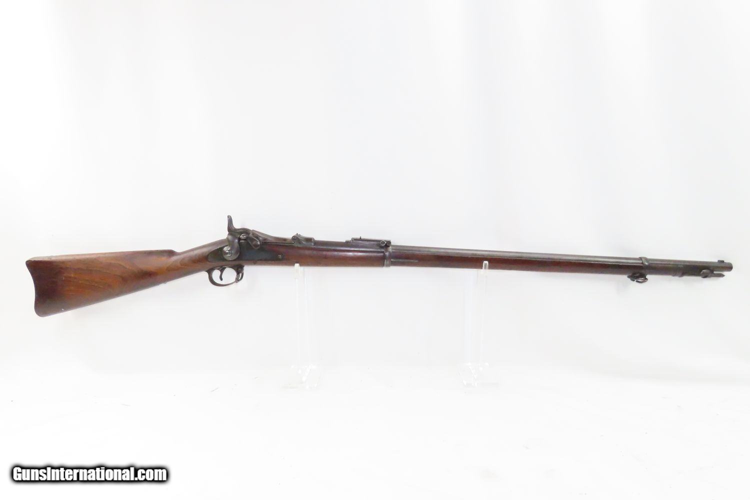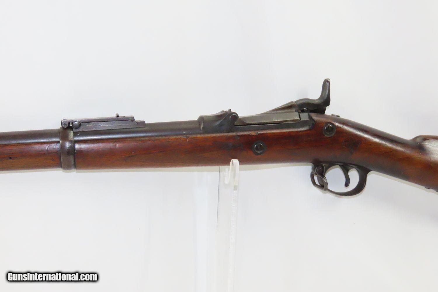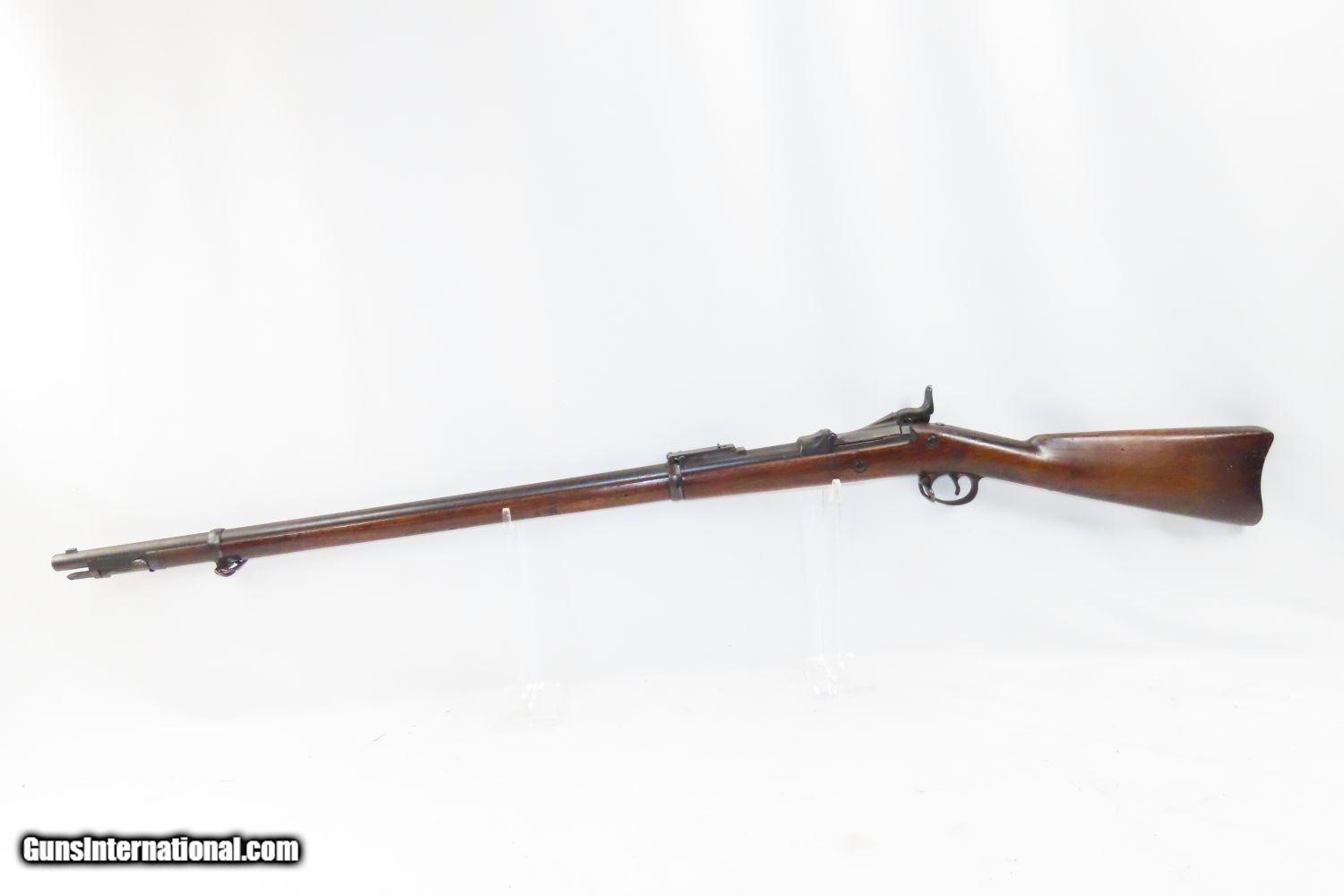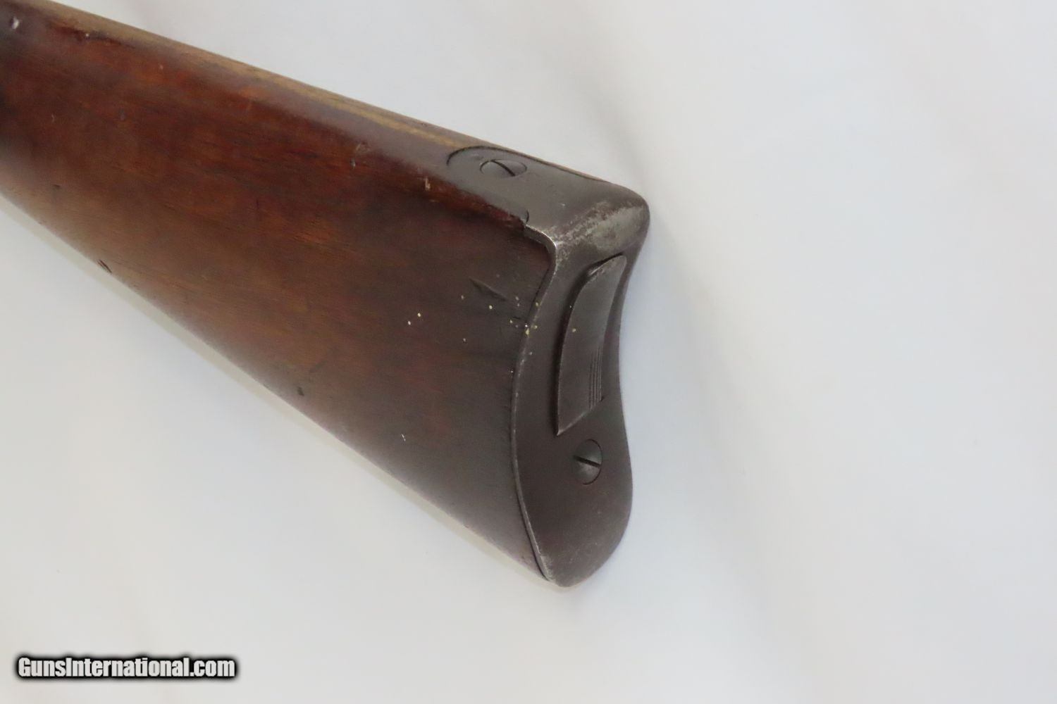 Description: Antique U.S. SPRINGFIELD Model 1888 “TRAPDOOR” Rifle with RAMROD BAYONET Indian Wars, Spanish American-War Here we present an antique U.S. Springfield Model 1888 Trapdoor Rifle in .45-70 GOVT, made circa 1892 in Springfield, Massachusetts. These were the last of the trapdoor rifles that were in use since the end of the American Civil War. It also marked the end of the black powder-era, single shot, big-bore, hammer-fired rifles in U.S. service. The U.S. government would adopt the Krag-Jorgensen in .30-40 Krag, a smokeless, small-bore, bolt action repeater. However, when the U.S. went to war with Spain in the Spanish-American War in Cuba, many, if not a majority, of the state militia troops were still using the latest models of trapdoor rifle. The breech block is marked “US MODEL 1884”, though the Model 1888 is its own distinct variant. The lock is marked with a federal eagle and “U.S. SPRINGFIELD”. Many state militias purchased these and used them long after they were out of use with the federal military. The left stock is clearly marked SWP/1892, indicating that this rifle was inspected by Steven W. Porter, Master Armorer and Ordnance Inspector at the Springfield Armory. The overall condition is very good. Excellent action. The bore is bright with sharp rifling. Very good walnut stock with average wear and a “1892” dated cartouche for S.W. Porter. Original finish/patina. This one includes the cleaning supplies in the trap located in the butt stock. Own the original! This is a legitimate antique and not a reproduction. Barrel is 32-5/8 inches. Caliber: .45-70 GOVT Overall condition as seen in photos. Very Fast. Very Safe. FREE SHIPPING WORLDWIDE. Delivered directly to your door by express mail! Guaranteed AUTHENTIC & Includes CERTIFICATE OF AUTHENTICITY. ancestryguns $1765 #215072 SOLD Antique: Yes |