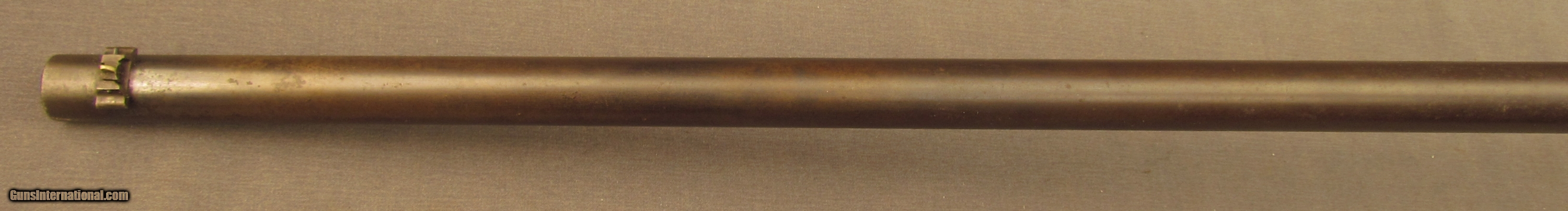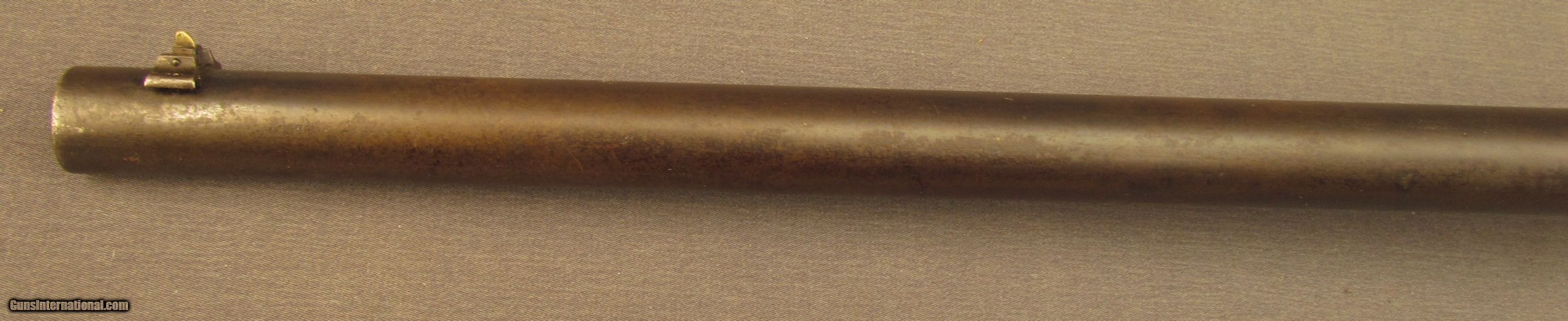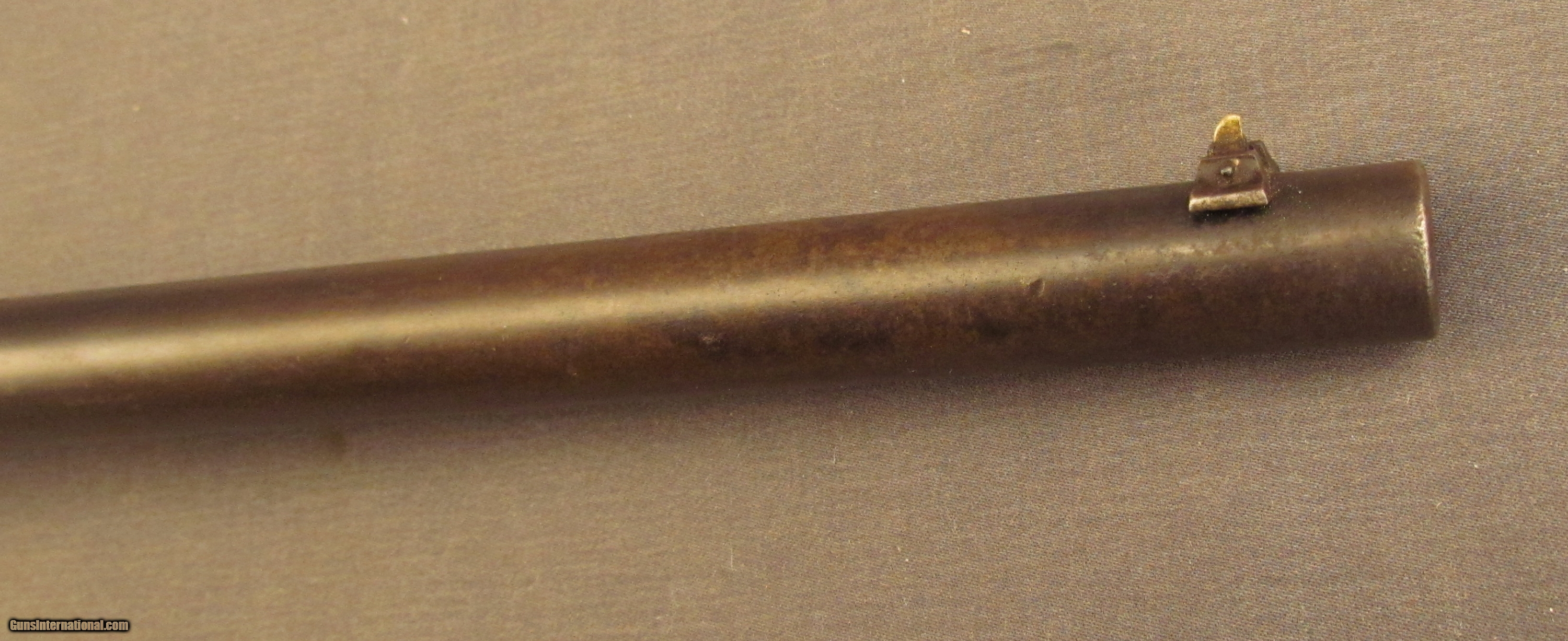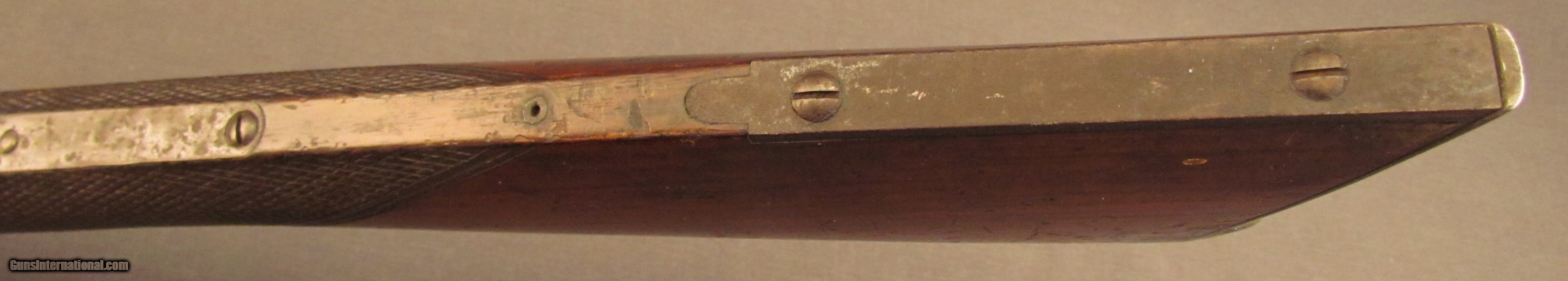 Description: Serial #1190, .44 RF, 24” barrel with a fine, bright bore that has some minor freckling within the grooves at the muzzle. This is a fairly scarce American rifle, less than 2,000 were ever made, and uses an underlever action operating a sliding breechblock. The metal has an overall dark plum-brown patina with scattered spots of mild surface freckling throughout and some traces of original blue on the frame. The checkered walnut stock is in fine shape with numerous small handling marks and minor surface blemishes scattered about the lightly flaked original varnish finish. The fragile action functions but the gun will not cock and fire. the rifle rates very good plus-fine condition overall. Antique SOLD Antique: Yes Manufacturer: Whitney Model: Thunderbolt Serial Number: 1190 Caliber Info: .44 cal Gauge Info: .44 cal |