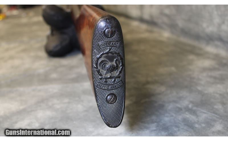 Description: Bullard Repeating Arms Co. Small Frame 38 caliber made between 1893-1890 in very good condition. The Bullard Repeating Arms Company attempted to compete for sales against the likes of Winchester, Marlin, and Whitney. The fierce competition stymied their sales and profits and thus halted the manufacture of these formidable lever actions after just a few years, despite their smooth and fast actions and quality craftsmanship. Serial number 1734 .38 Rimless Smokeless SOLD Antique: Yes Metal Condition: Very Good Wood Condition: Verry Good Bore Condition: Bright & Shiny Barrels: 28.0 Butt Pad: Original Hard Plastic Item Location: Auburn Hills, MI |