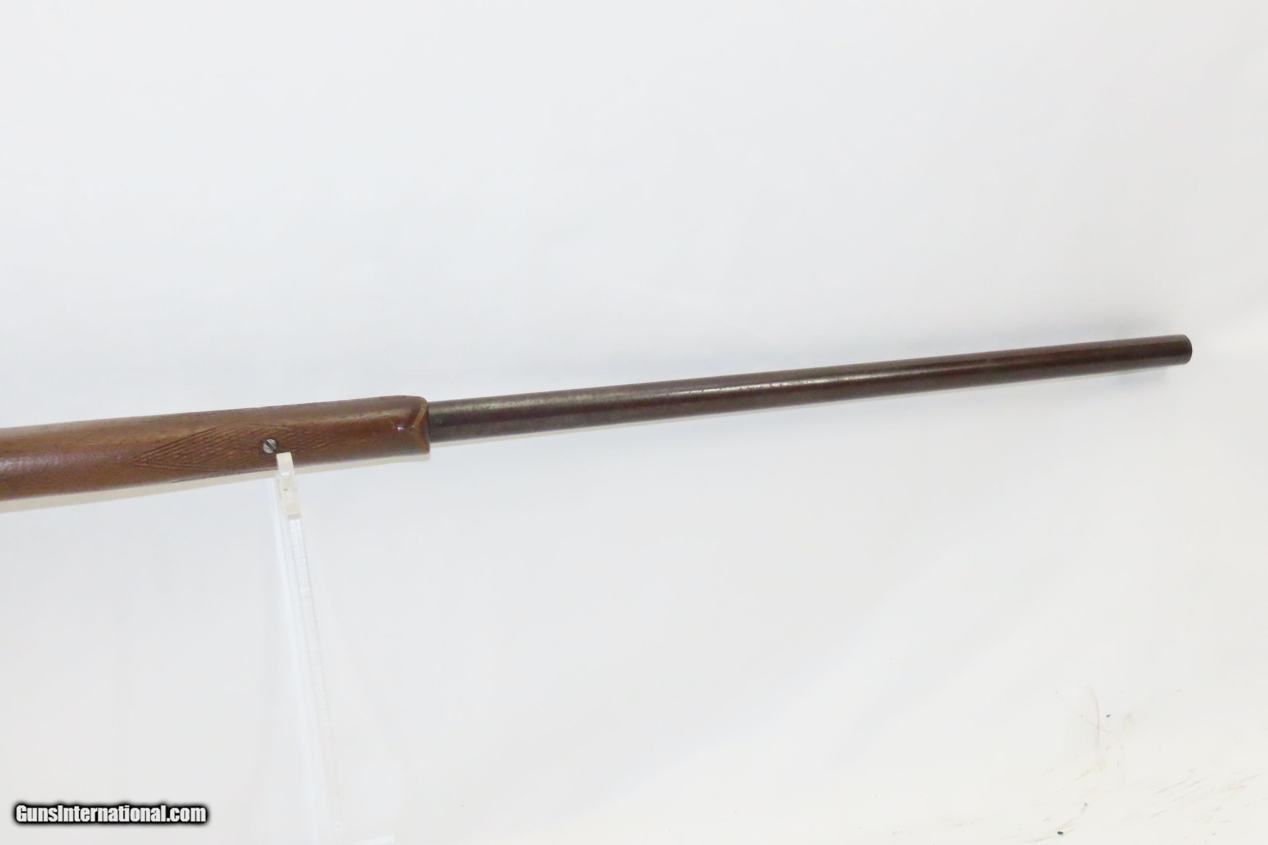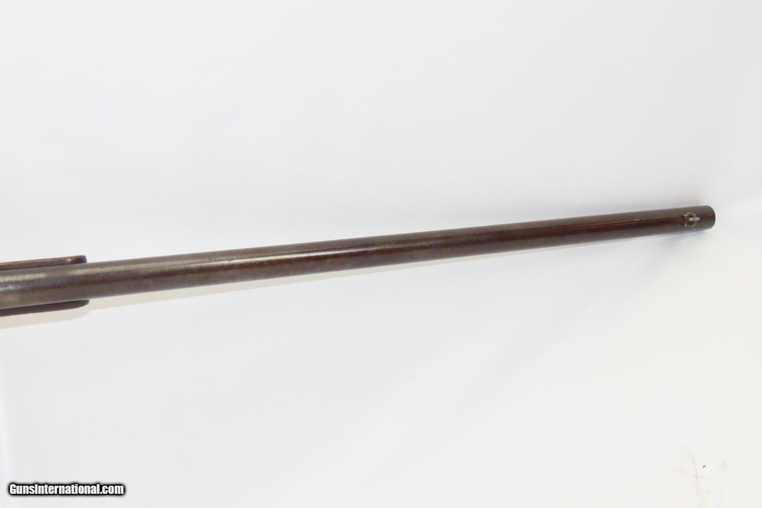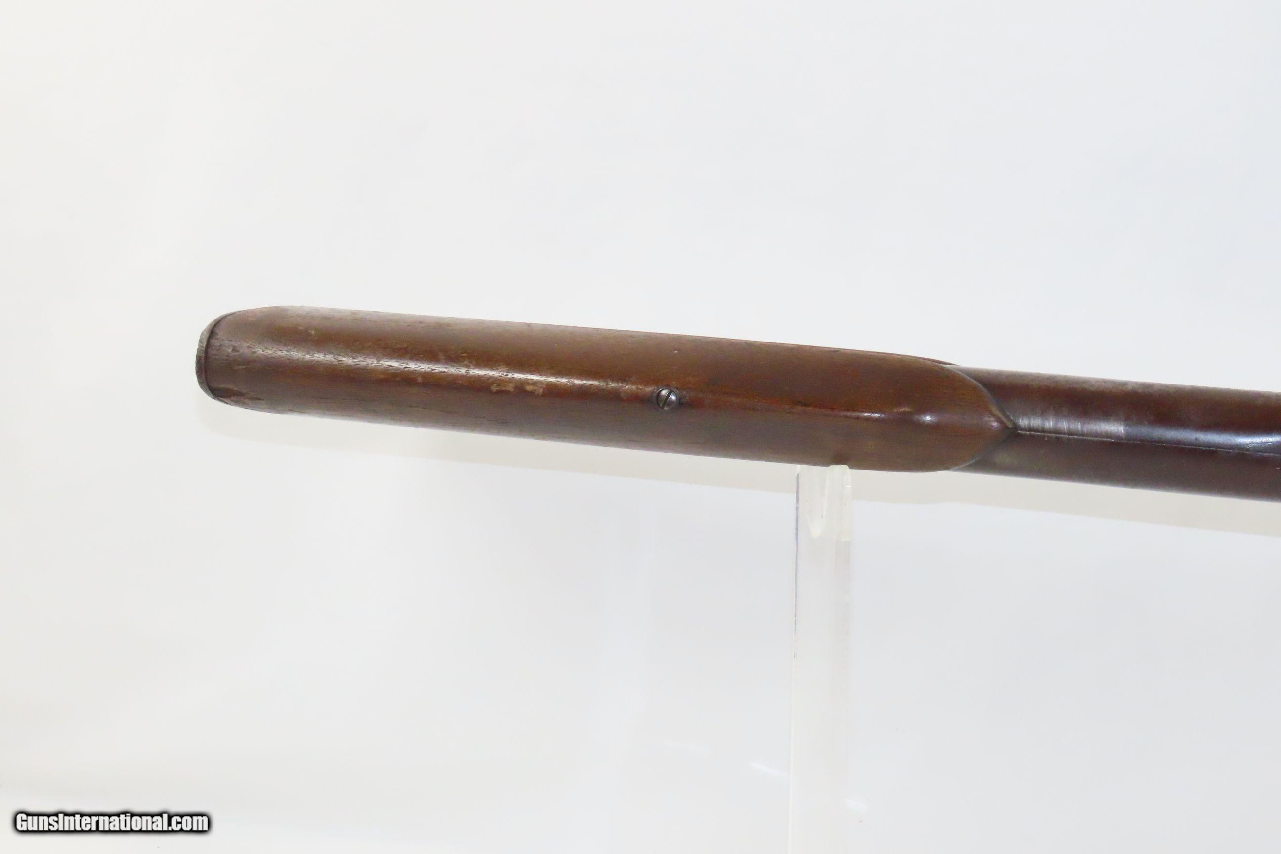 Description: c1870s MAINE EVANS NEW MODEL Rifle .44 High Capacity Rotary Tube Magazine 1 of 3,000 SCARCE 28-Round Repeater Here we present an antique Evans New Model Rifle made by Mechanics Falls, Maine. Frequently referred to as “one of the most novel repeating rifles of the 19th century”, this .44 caliber centerfire carbine was manufactured between 1873 and 1879, with a total of 12,200 Evans rifles and carbines made, with 3,000 being the “Sporting” model. The New Model rifle and carbine, which is not serialized, utilized a revolving type magazine with a full capacity of 28, .44 caliber metallic rounds loaded through the butt of the 30” long round barrel. The hammer is mounted on the underside of the frame, just ahead of the breech lever and was manually cocked. The frame is rounded at the top and has no cut outs on the side. The forend fits square to the receiver front while the dust cover sits over the loading aperture. The forend is secured to the barrel via a single barrel band sling swivel. Another swivel is on the bottom of the stock at the heel. The Evans repeating rifle enjoys the distinction of being the only mass produced firearm ever attempted in the state of Maine. It also holds the greatest capacity of any repeating rifle ever produced and marketed in the United States. The overall condition is very good. Plum patina throughout. The markings are clear. The walnut stock shows use and remains solid. The bore is in great shape with nice rifling. The action is excellent. Own the original! This is a legitimate antique and not a reproduction. Barrel is 30 inches. Caliber: .44 Evans Overall condition as seen in photos. Very Fast. Very Safe. FREE SHIPPING WORLDWIDE. Delivered directly to your door by express mail! Guaranteed AUTHENTIC & Includes CERTIFICATE OF AUTHENTICITY. ancestryguns $2850 #228109 SOLD Antique: Yes |