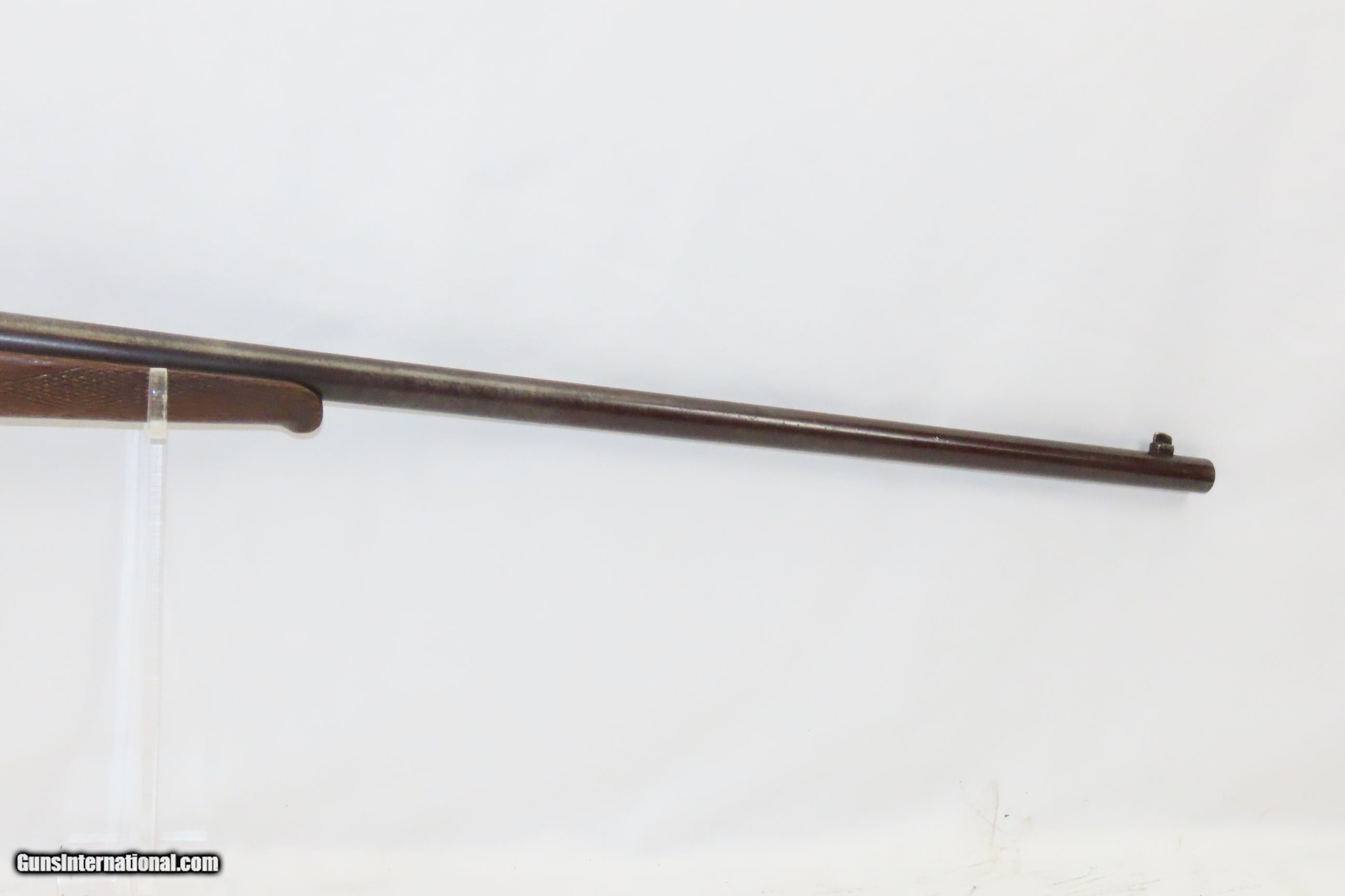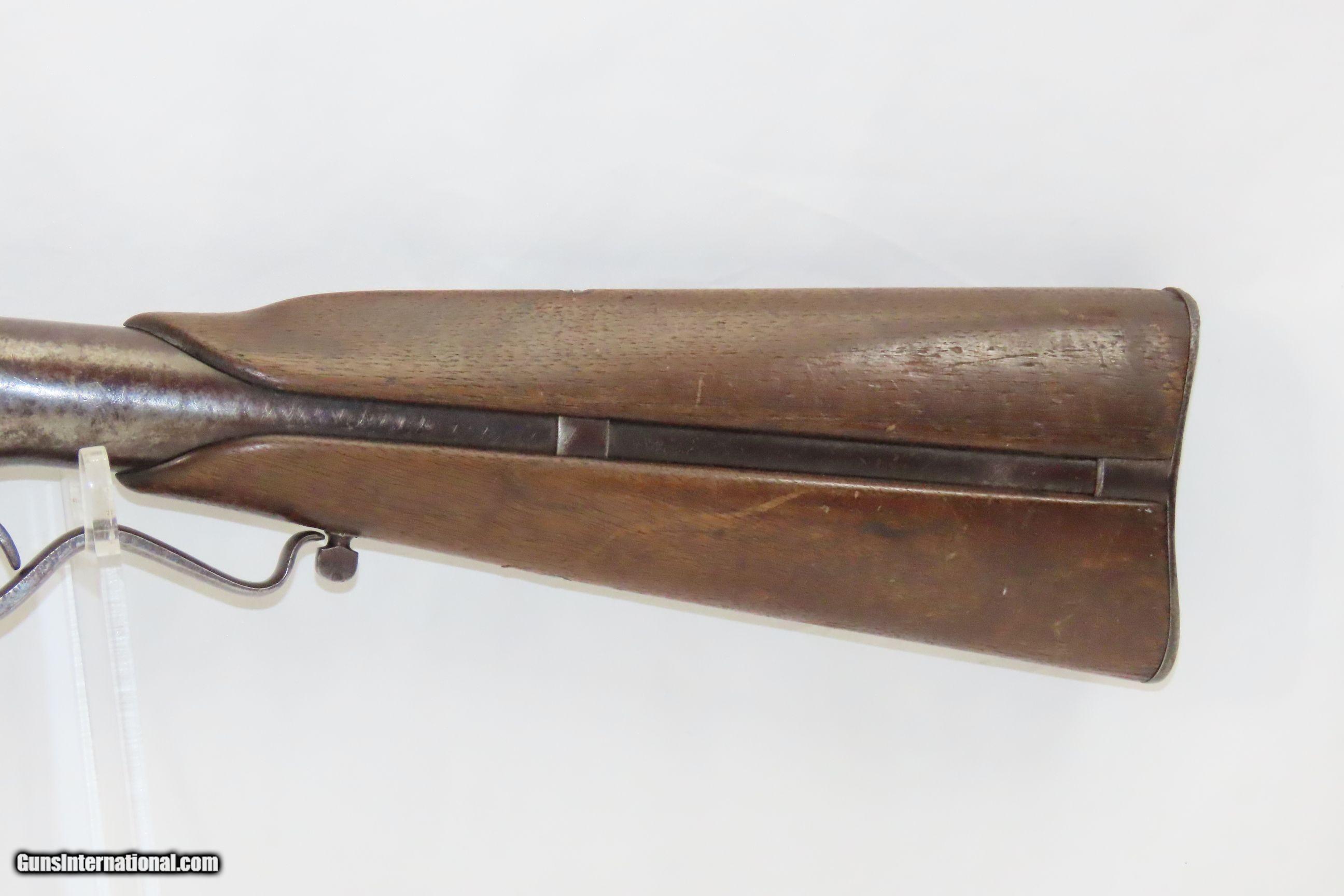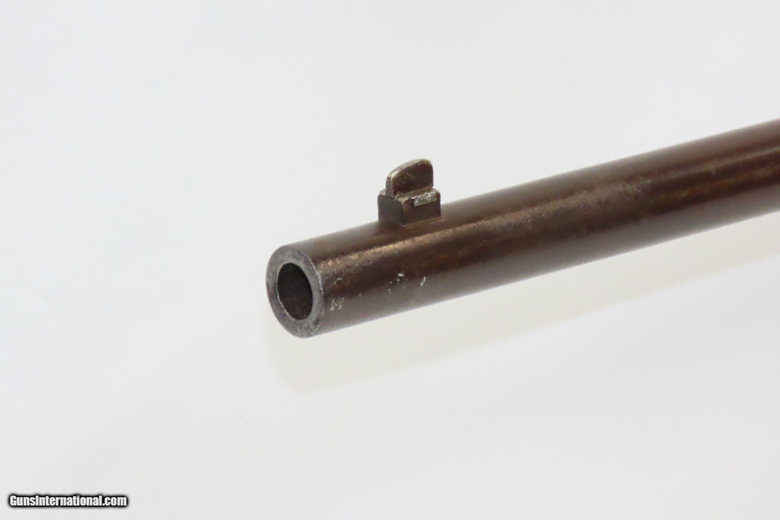 Description: c1870s MAINE EVANS NEW MODEL Rifle .44 High Capacity Rotary Tube Magazine 1 of 3,000 SCARCE 28-Round Repeater Here we present an antique Evans New Model Rifle made by Mechanics Falls, Maine. Frequently referred to as “one of the most novel repeating rifles of the 19th century”, this .44 caliber centerfire carbine was manufactured between 1873 and 1879, with a total of 12,200 Evans rifles and carbines made, with 3,000 being the “Sporting” model. The New Model rifle and carbine, which is not serialized, utilized a revolving type magazine with a full capacity of 28, .44 caliber metallic rounds loaded through the butt of the 30” long round barrel. The hammer is mounted on the underside of the frame, just ahead of the breech lever and was manually cocked. The frame is rounded at the top and has no cut outs on the side. The forend fits square to the receiver front while the dust cover sits over the loading aperture. The forend is secured to the barrel via a single barrel band sling swivel. Another swivel is on the bottom of the stock at the heel. The Evans repeating rifle enjoys the distinction of being the only mass produced firearm ever attempted in the state of Maine. It also holds the greatest capacity of any repeating rifle ever produced and marketed in the United States. The overall condition is very good. Plum patina throughout. The markings are clear. The walnut stock shows use and remains solid. The bore is in great shape with nice rifling. The action is excellent. Own the original! This is a legitimate antique and not a reproduction. Barrel is 30 inches. Caliber: .44 Evans Overall condition as seen in photos. Very Fast. Very Safe. FREE SHIPPING WORLDWIDE. Delivered directly to your door by express mail! Guaranteed AUTHENTIC & Includes CERTIFICATE OF AUTHENTICITY. ancestryguns $2850 #228109 SOLD Antique: Yes |