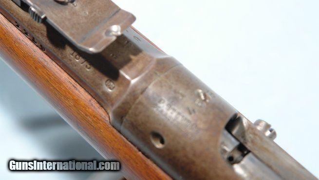 Description: DUTCH BEAUMONT VITALI MODEL 1871 OR M187/88 MILITARY RIFLE. 11.3X51R caliber. Serial #469 and all matching receiver along with “2259” on barrel and buttplate. Barrel marked 1873 above barrel number. Has “P. Stephens/Maastricht” on receiver. Crisp proofs on barrel around rear sight. 32 1/2” round barrel. This one is a very good speciman with patina beginning to turn dark. Stock all original with almost no dings and most of the crisp proofmarks. Faint round Maastricht cartouche on right stock. Matching barrel bands. Cleaning rod a replacement. Excellent unturned screws overall. Mirror finish bore with crisp rifling unheard of for black powder era rifle. Very good overall. Make a nice shooter. Tight lock-up. SOLD Antique: Yes |