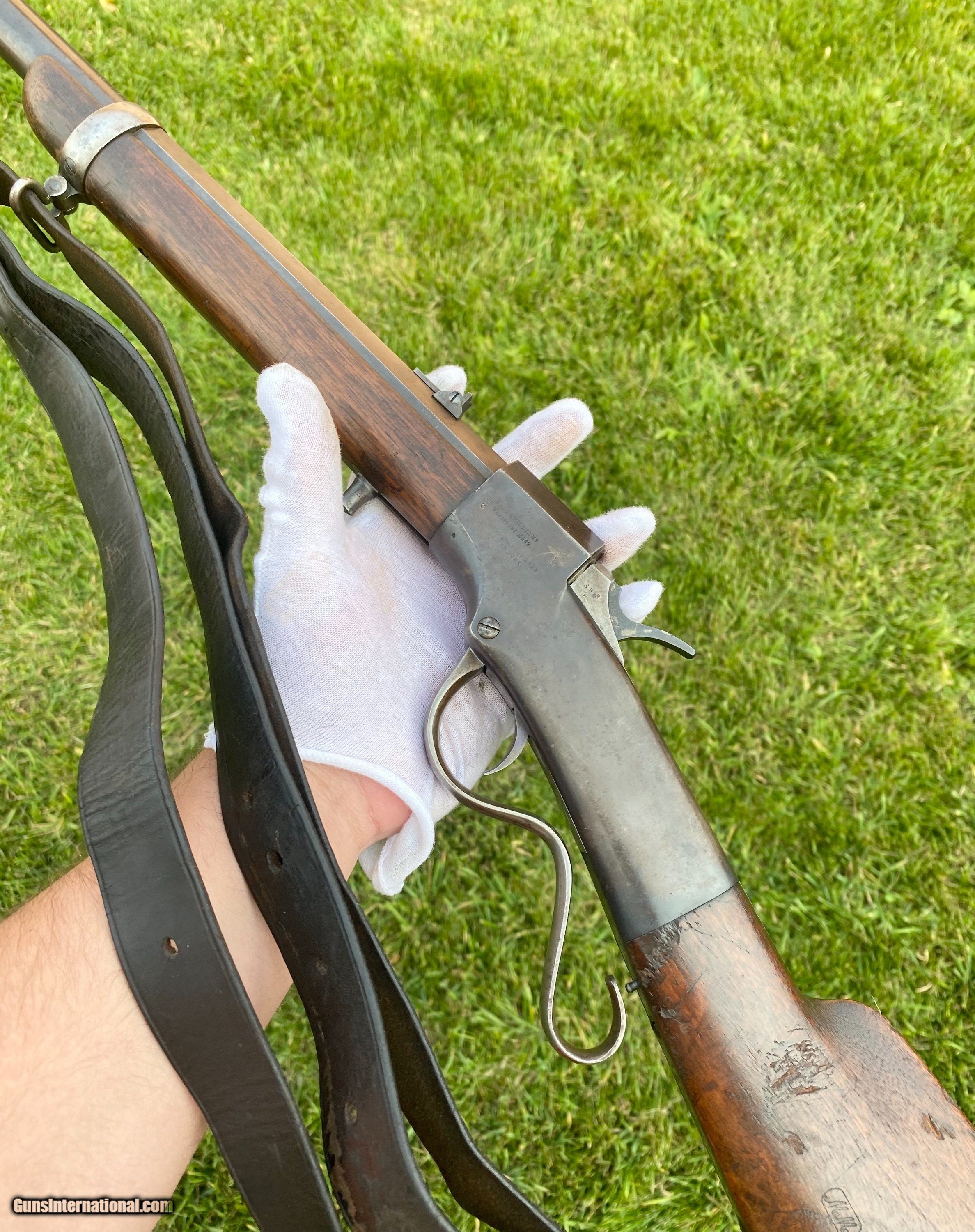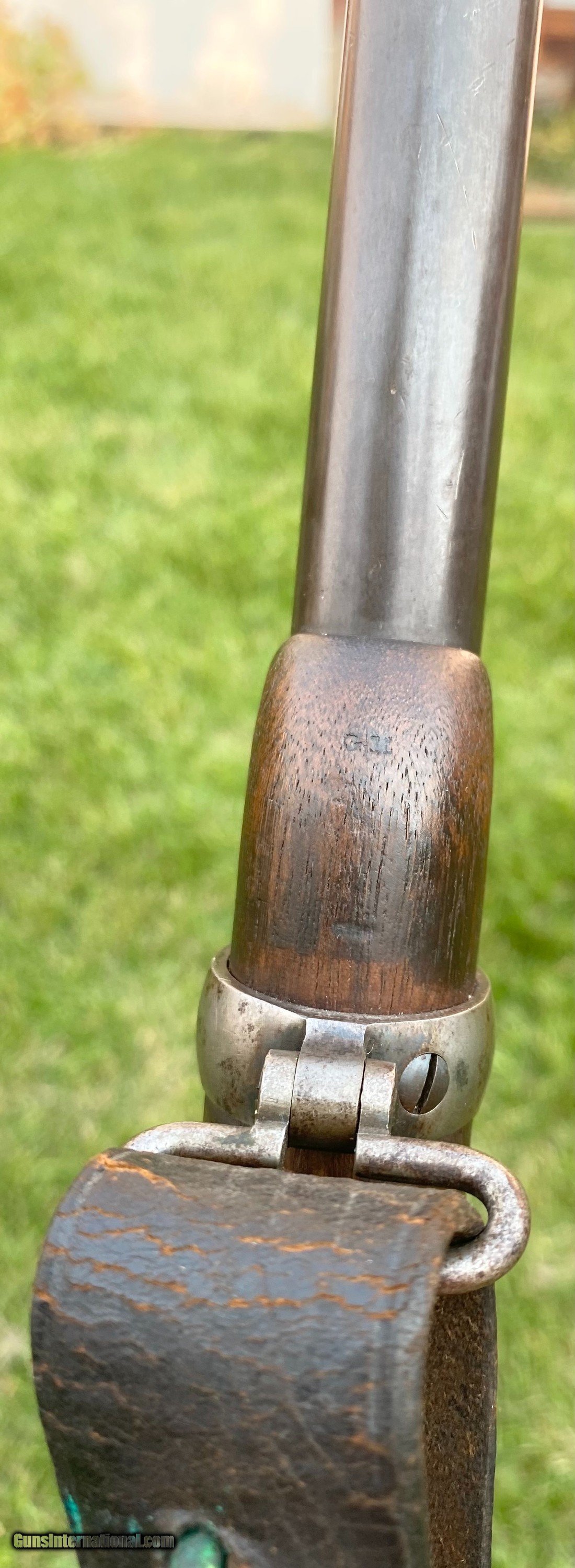Description: This is an outstanding example of a scarce Martially Inspected Ballard Carbine. This is a very crisp gun overall, the frame shows about half of the original blue finish while the barrel shows about the same amount of finish. The buttstock shows handling marks but is very crisp and shows an excellent cartouche. The forearm is likewise excellent. All inspector marks are visible and easily discernible. The bore is excellent. The sling is an original and to the period authentic Watervliet Arsenal marked example. Mechanically excellent. This is an extremely scarce example of a rare Civil War contract carbine that many collections are void of. Shipping is $40 plus actual insurance cost. Insurance amount can be chosen by the buyer. Thanks! Asking $4,000.00 SOLD Antique: Yes |