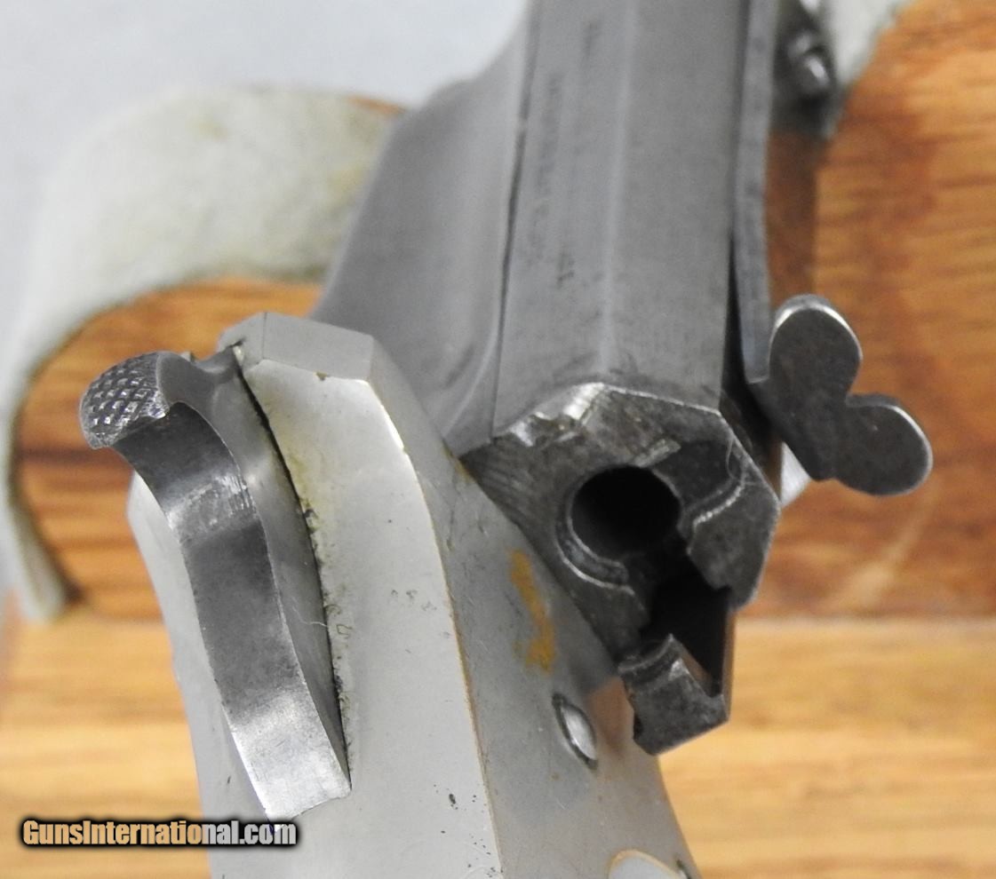 Description: This is a neat Frank Wesson 22 rimfire pocket rifle with matching serial number 516. It has a 10” barrel with crisp mechanical function and a very good bore. It is numbered on the barrel bottom; butt of the pistol and on the tip of the stock. It retains 80% nickel and this is a very neat pocket rifle. I would consider trades for pre 1899 ANTIQUE PISTOLS and rifles on any of my items.. WHAT DO YOU HAVE TO TRADE? Ask about our 30-90 day lay-away program. We accept Bank Check, Money order, Personal checks or wire transfer. SOLD Antique: Yes Manufacturer: Frank Wesson Model: 516 |