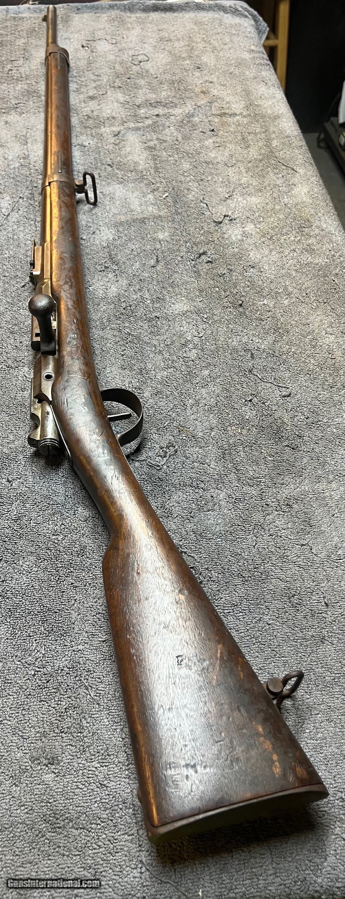 Description: French Gras 11mm rifle needle fire? Chassepot? bore is clean and shiny rifling is good see pics for condition $550 shipped SOLD Antique: Yes Rifle Caliber: 11x59mmR Gras |