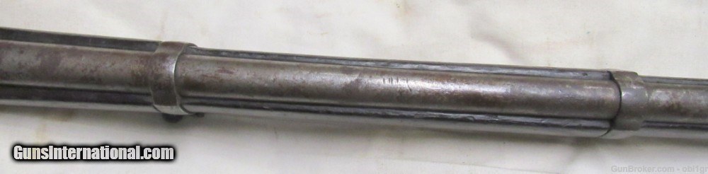 Description: This is a very hard gun to find. It is a French Mle. 1884 Gras-Kropatschek 11mm rifle. Retains an even patina overall showing wear. Markings are clear. Dated 1884. The bolt functions as it should. The cartridge lifter does not automatically go down, there seems to be a lever of some kind, perhaps a single shot adjustment. Whatever it is, we're not sure that it's working right. There are some foreign markings on the right side of the barrel ahead of the rear sight (pictured). Wood shows wear with dings and handling marks as well as some damage towards the buttplate with some wood loss. Wood is solid. The bolt body and barrel numbers are matching, the bolt face is not matching. Missing the cleaning rod from the left side of the stock. Bore has strong sharp rifling with light pitting. Serial number is A4708 SOLD Antique: Yes Rifle Caliber: 11x59mmR Gras |