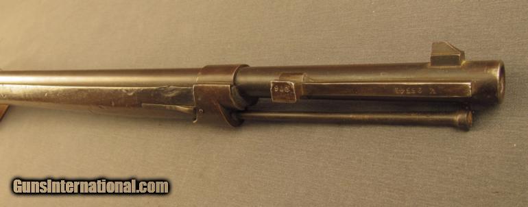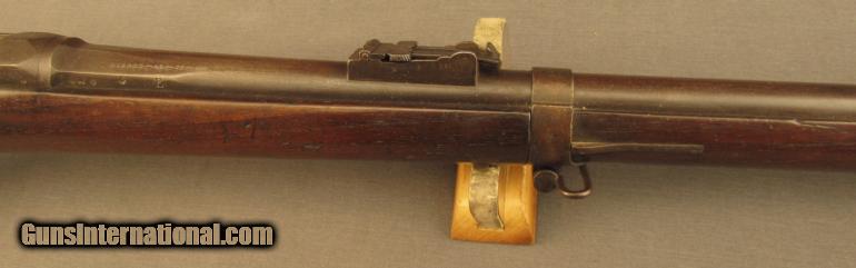 Description: Serial #V25341, 11mm CF (.43-77-380) 32" barrel with a very good, bright bore that has minor freckling within the grooves. This is a post Franco-Prussian War conversion of the 1866 Chassepot to metallic cartridge which was contracted to Kynoch in Britain. The guns were heavily modified and marked with some original blue remaining but the balance now turned to a mild brown and gray patina with scattered small areas of mild brown freckling and pale gray along the bearing surfaces of the matching numbered bolt. The stock has numerous minor handling marks and small surface blemishes in the original military oil finish along with a few miniscule chips missing from the edges of the ramrod channel. The origin and purpose of these rifles are a bit confused since they were almost immediately superseded by the Model 1874 Gras in French service and were instead offered for sale to countries and groups that did not have the manufacturing base to make modern small arms. This is a fine and mechanically tight example of one of these interesting and very well made rifles and would make a great addition to any collection. Antique SOLD Antique: Yes Manufacturer: French Model: Chassepot Serial Number: V25341 Caliber Info: 11mm Gauge Info: 11mm |