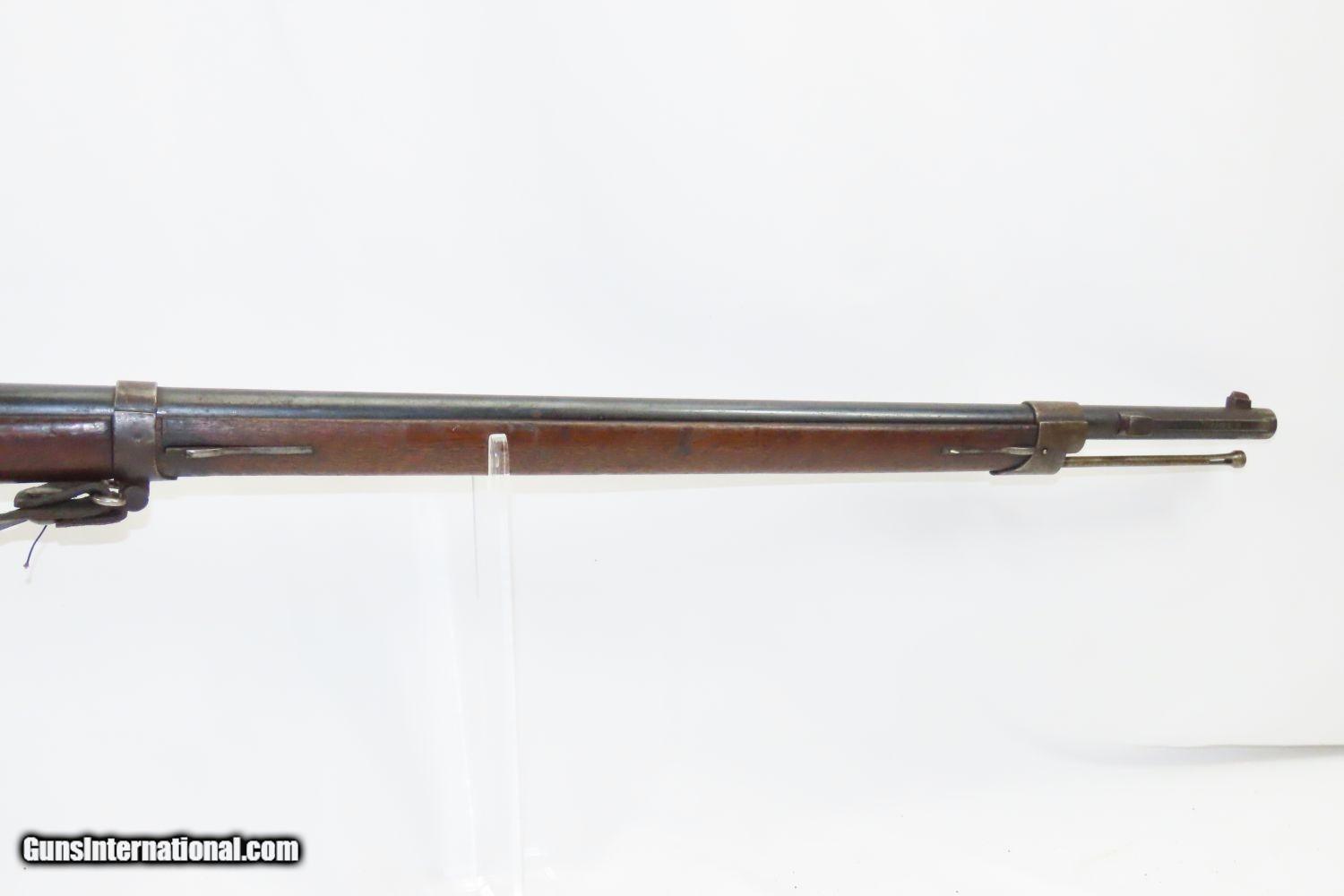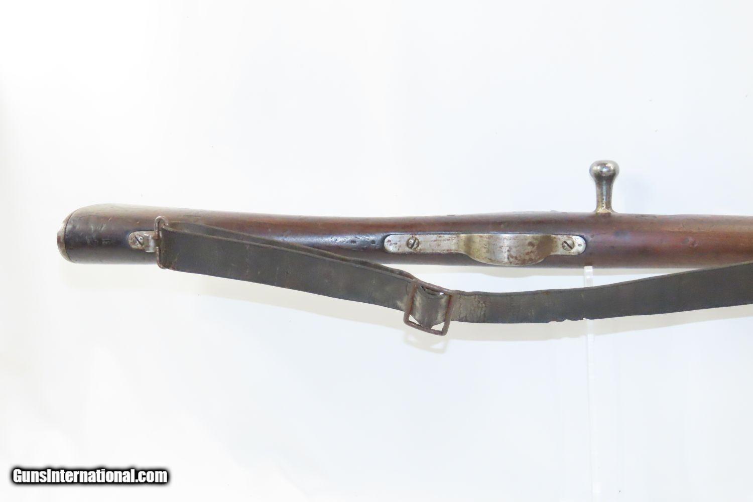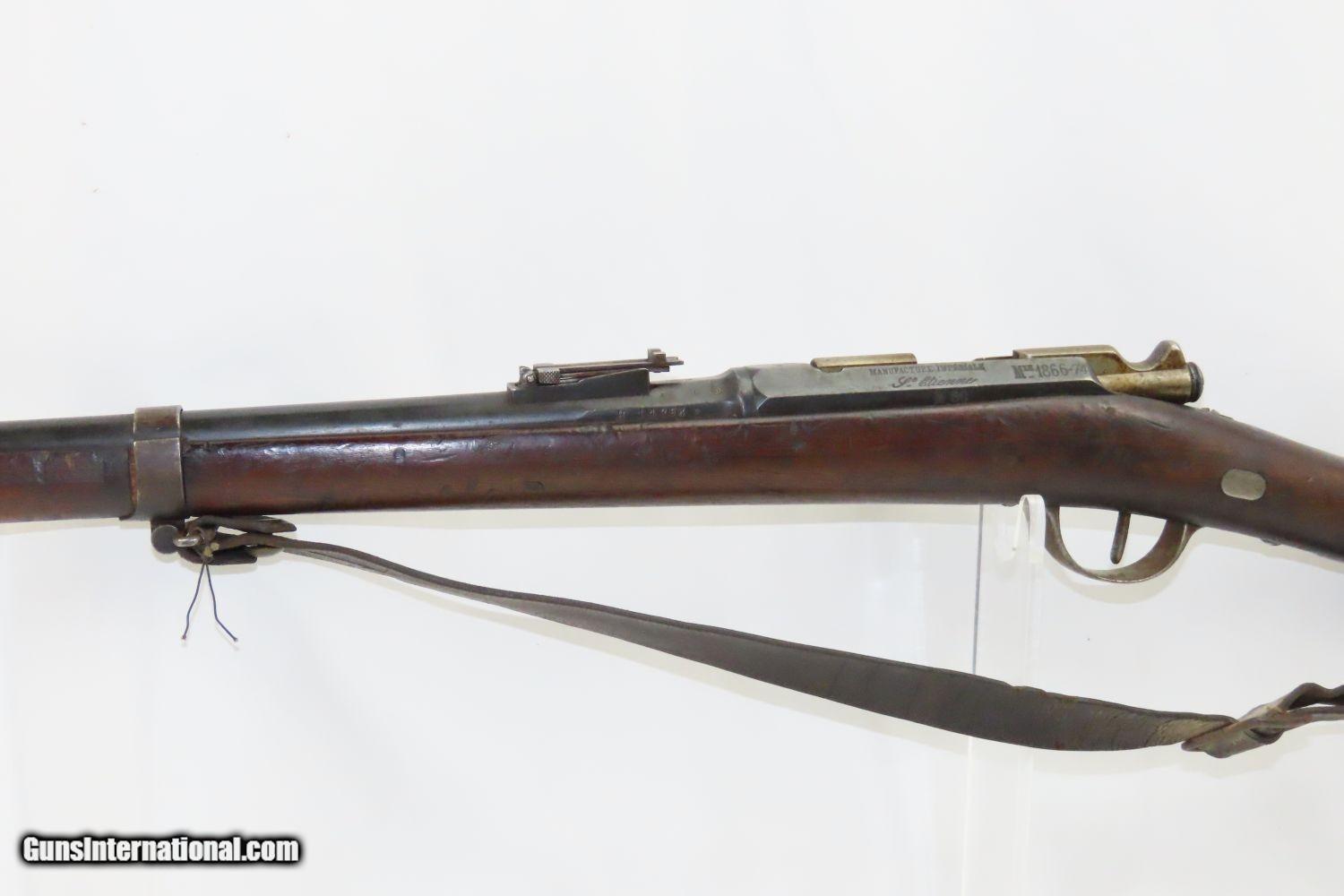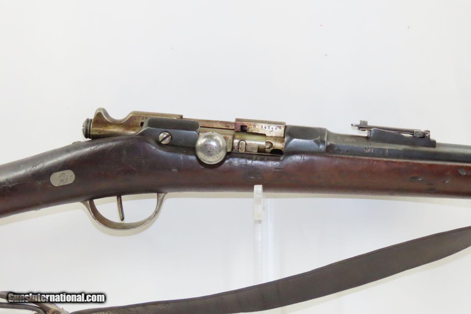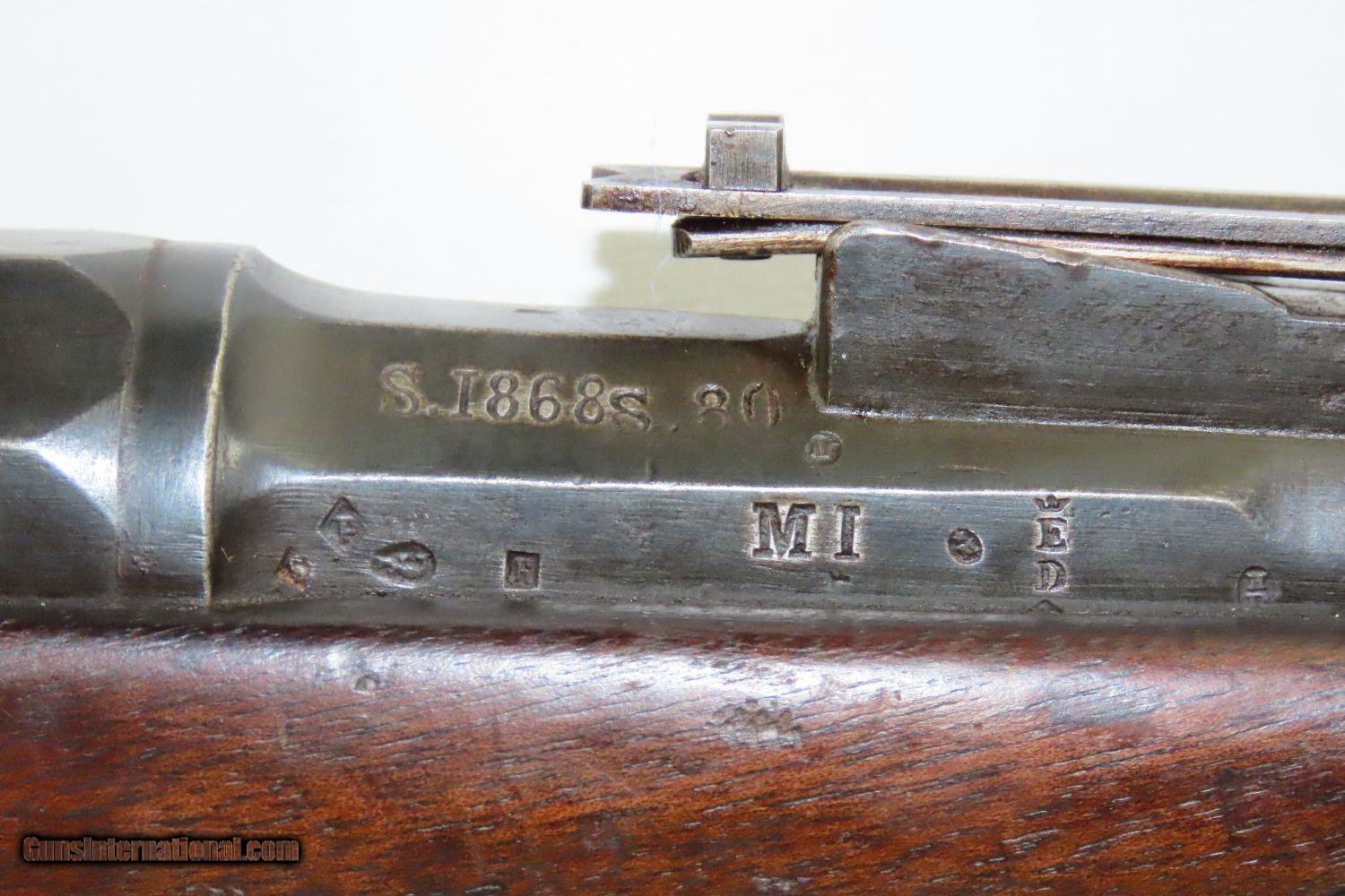 Description: GRAS CONVERSION French ST. ETIENNE Model 1866/74 11X59mm Bolt Action RIFLE Updated Model 1866 to Chamber Metallic Cartridge Here we present an antique Model 1866-74 Chassepot Bolt Action Rifle, made circa 1868 at the arsenal in St. Etienne, then updated to accept metallic cartridges instead of paper. This rifle gets its name from the inventor, Antoine Alphonse Chassepot. His third iteration, featuring the needle fire system similar to that of the Prussian Dreyse, was adopted by the French military, and subsequently used in the Franco-Prussian War. This was the very beginning of the bolt action rifle era, and soon virtually every military the world over would be armed with long arms along these lines. The Mauser brothers were on the cusp of making their appearance internationally as this small arms race between France and Germany heated up. The Prussians, the victors of the nearly year-long conflict, would go on to replace their needle-fire, bolt action rifle, the Dreyse, with the Model 1871/84. The French would update the Model 1866 to accept metallic cartridges and also adopt the new Gras in 1874. This would continue through the Great War and beyond. This rifle is marked “Mle 1866”, clearly a mark original to the gun, then a much more distinct “-74”, indicating that this rifle was updated with the Gras Conversion for accepting metallic cartridges. The left side of the receiver is marked “M. 80”. The right side of the barrel is marked “S.1880” very likely the date that this rifle saw updates or arsenal work. The overall condition is very good. Strong action. The bore is in very nice shape. The stock is solid with an expected amount of wear. The numbers match. Sharp markings throughout. A great piece of history from France! Own the original! This is a legitimate antique and not a reproduction. Barrel is 32-1/4 inches. Caliber: 11x59mm Overall condition as seen in photos. Very Fast. Very Safe. FREE SHIPPING WORLDWIDE. Delivered directly to your door by express mail! Guaranteed AUTHENTIC & Includes CERTIFICATE OF AUTHENTICITY. ancestryguns $1665 #210401 SOLD Antique: Yes |