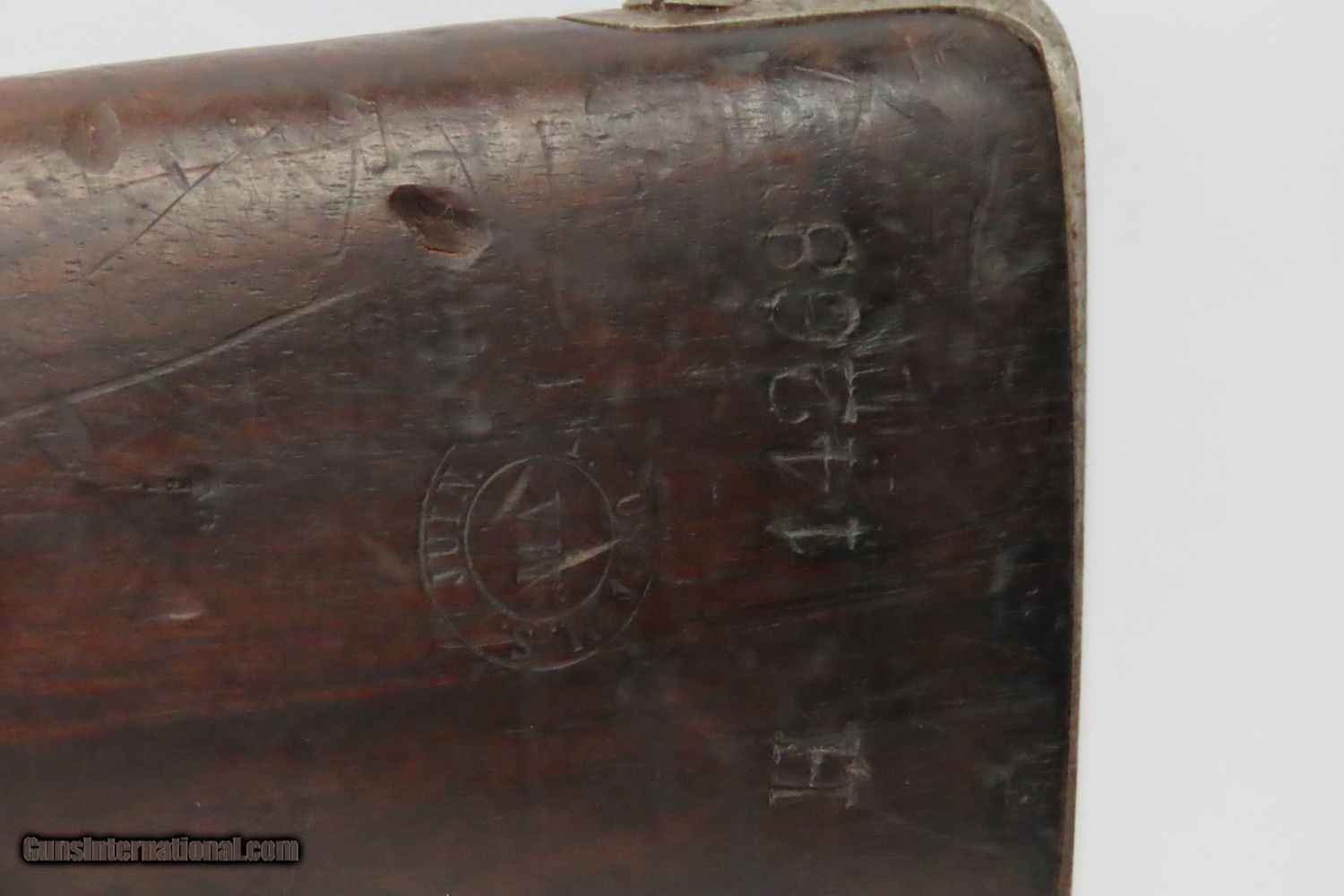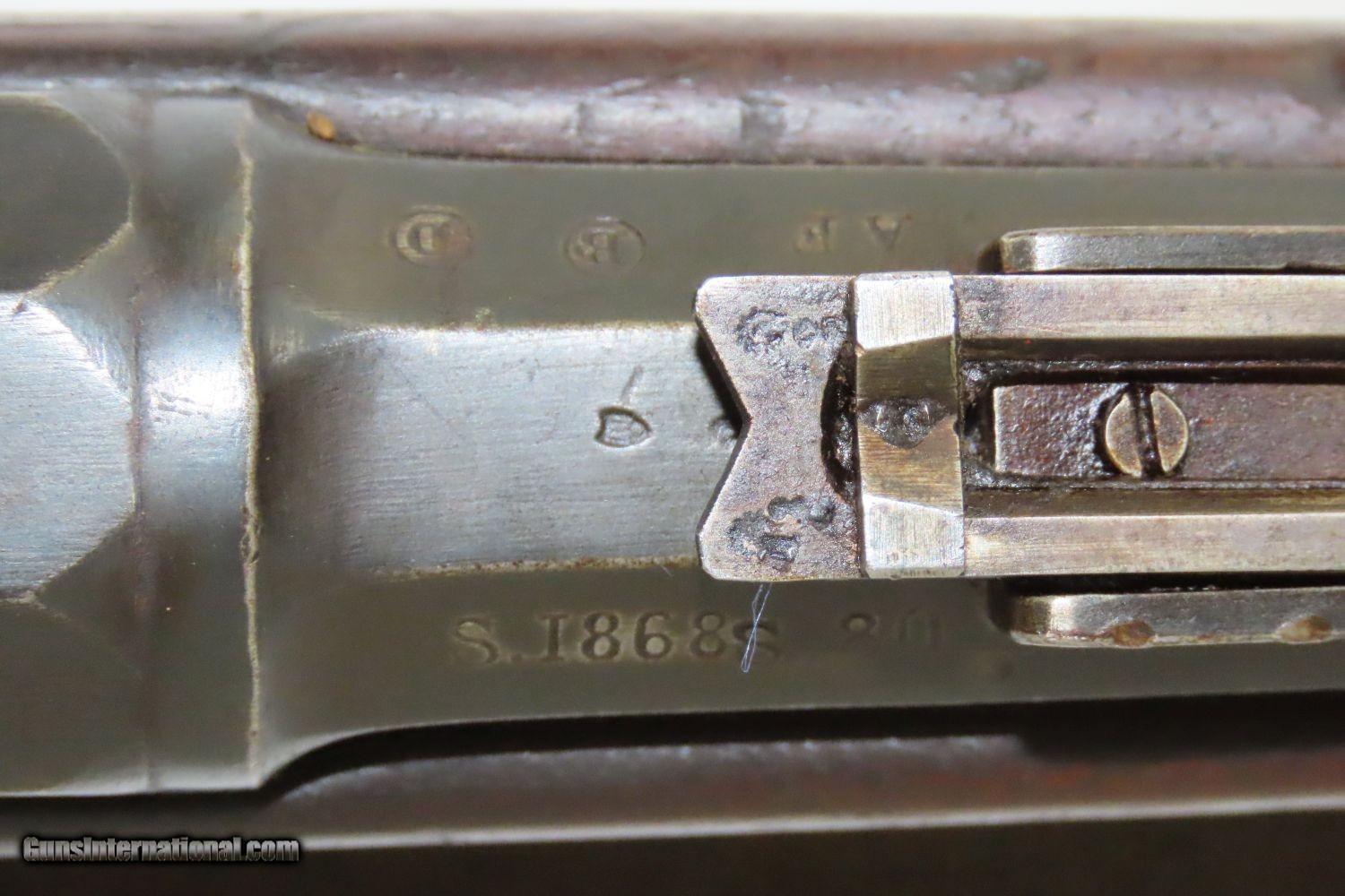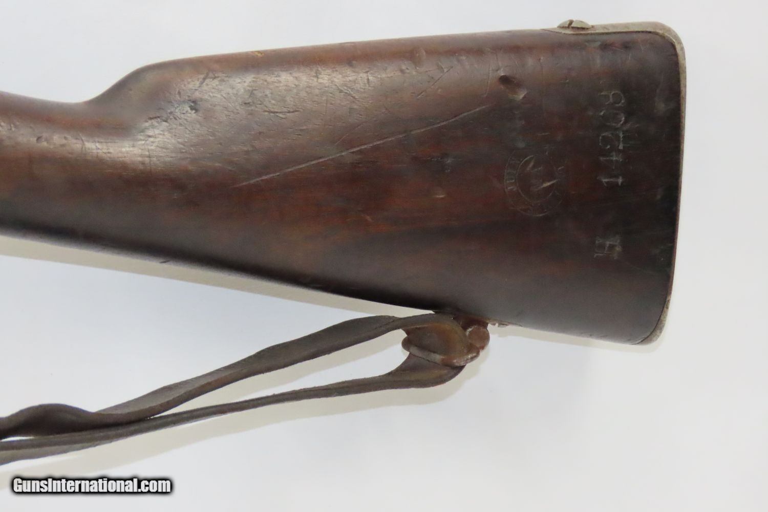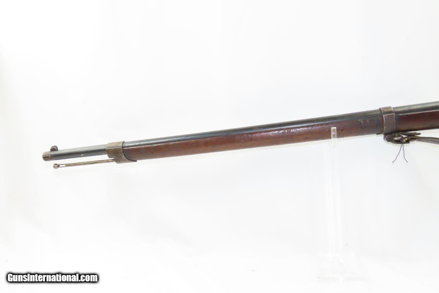 Description: GRAS CONVERSION French ST. ETIENNE Model 1866/74 11X59mm Bolt Action RIFLE Updated Model 1866 to Chamber Metallic Cartridge Here we present an antique Model 1866-74 Chassepot Bolt Action Rifle, made circa 1868 at the arsenal in St. Etienne, then updated to accept metallic cartridges instead of paper. This rifle gets its name from the inventor, Antoine Alphonse Chassepot. His third iteration, featuring the needle fire system similar to that of the Prussian Dreyse, was adopted by the French military, and subsequently used in the Franco-Prussian War. This was the very beginning of the bolt action rifle era, and soon virtually every military the world over would be armed with long arms along these lines. The Mauser brothers were on the cusp of making their appearance internationally as this small arms race between France and Germany heated up. The Prussians, the victors of the nearly year-long conflict, would go on to replace their needle-fire, bolt action rifle, the Dreyse, with the Model 1871/84. The French would update the Model 1866 to accept metallic cartridges and also adopt the new Gras in 1874. This would continue through the Great War and beyond. This rifle is marked “Mle 1866”, clearly a mark original to the gun, then a much more distinct “-74”, indicating that this rifle was updated with the Gras Conversion for accepting metallic cartridges. The left side of the receiver is marked “M. 80”. The right side of the barrel is marked “S.1880” very likely the date that this rifle saw updates or arsenal work. The overall condition is very good. Strong action. The bore is in very nice shape. The stock is solid with an expected amount of wear. The numbers match. Sharp markings throughout. A great piece of history from France! Own the original! This is a legitimate antique and not a reproduction. Barrel is 32-1/4 inches. Caliber: 11x59mm Overall condition as seen in photos. Very Fast. Very Safe. FREE SHIPPING WORLDWIDE. Delivered directly to your door by express mail! Guaranteed AUTHENTIC & Includes CERTIFICATE OF AUTHENTICITY. ancestryguns $1665 #210401 SOLD Antique: Yes |